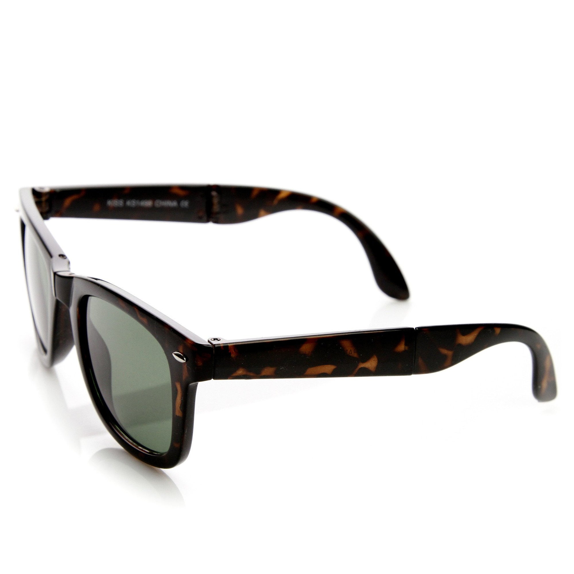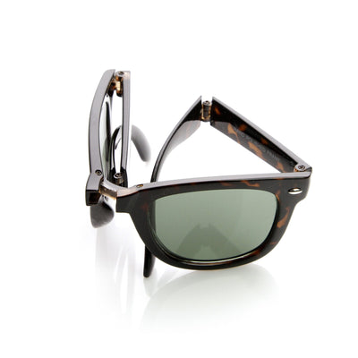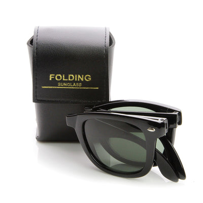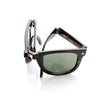 Classic horned rim sunglasses that are fully functional and can fold-up making them practical, portable and compact. Every pair will also include a faux leather pocket sunglasses case with purchase. Made with a plastic based frame, pinned hinges and UV protected polycarbonate lenses.