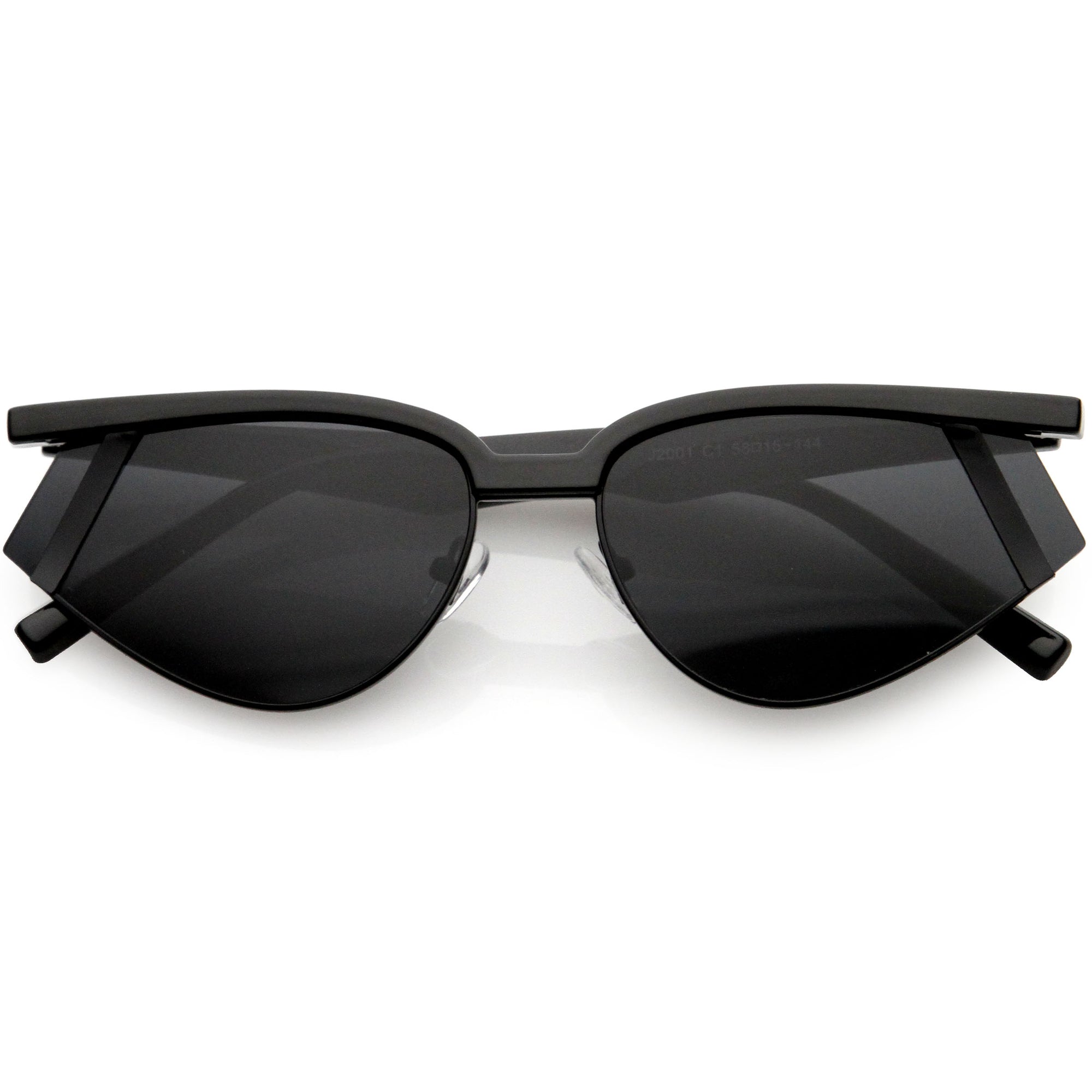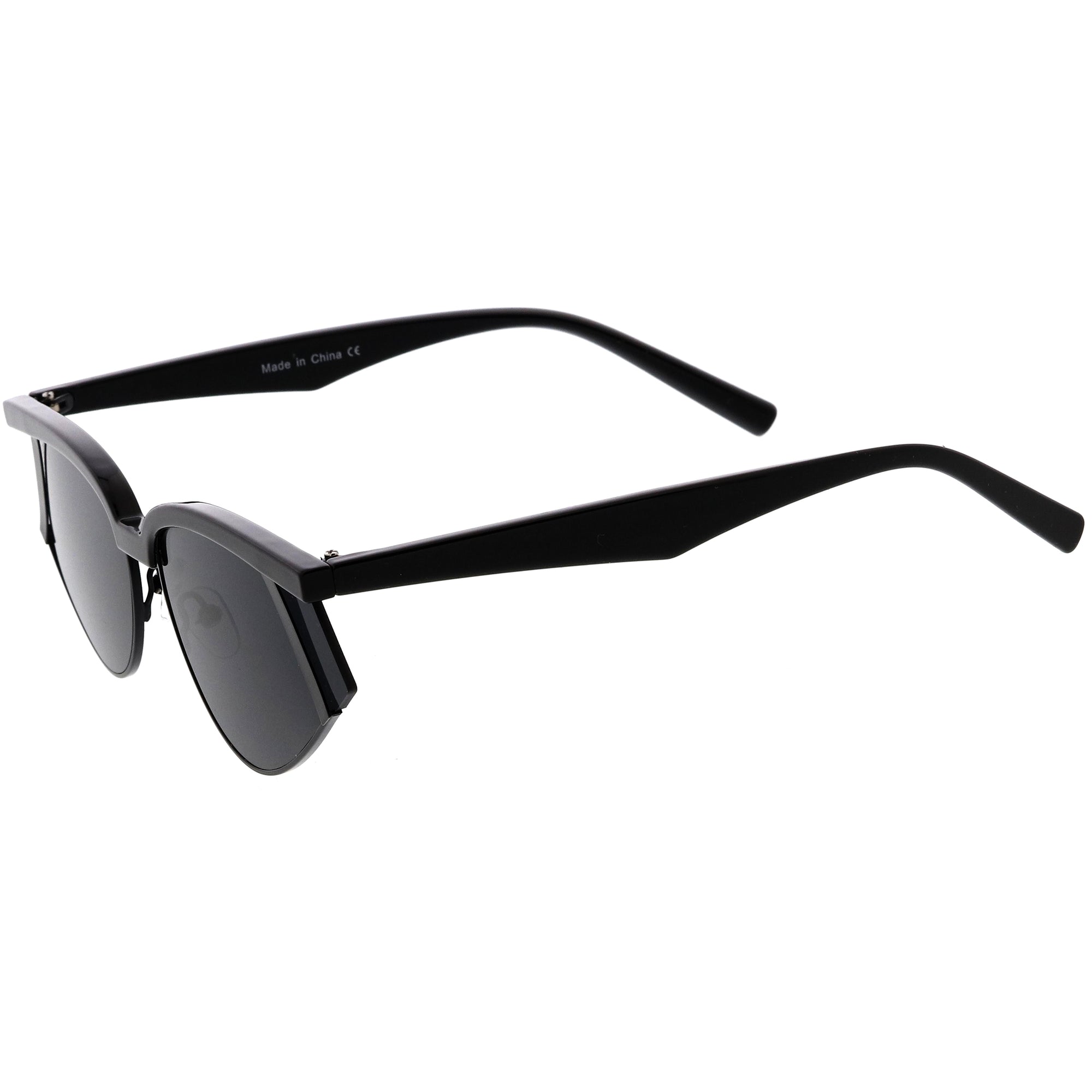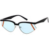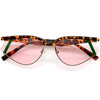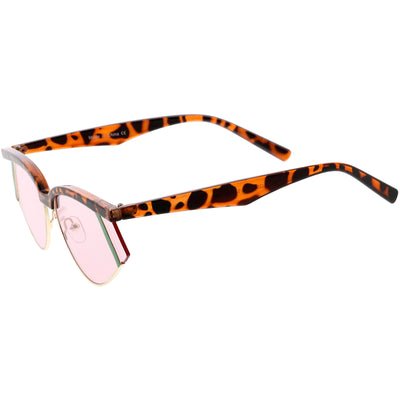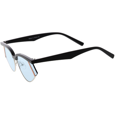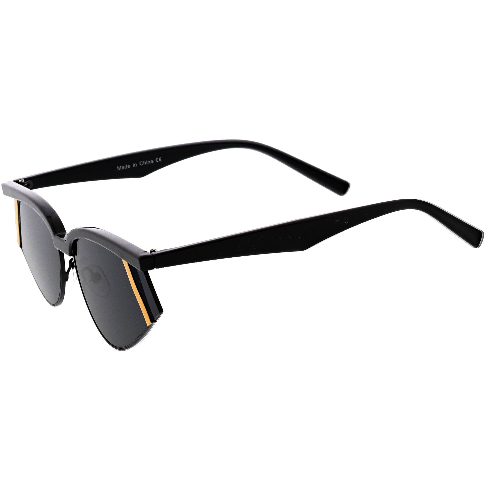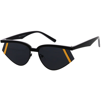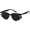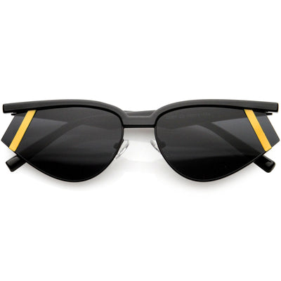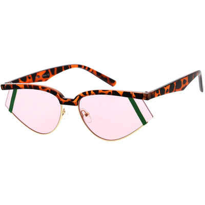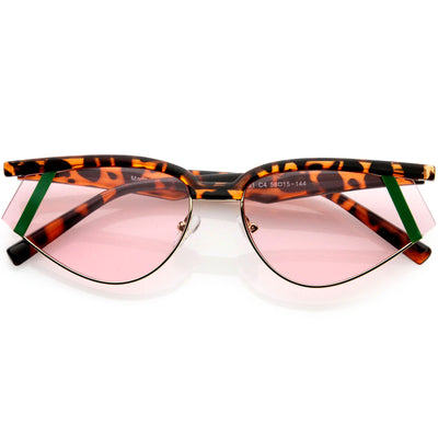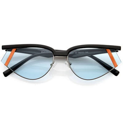 Detailed with a playfully fun pop of color at the gemetric lens corner, these lightweight semi-rimless browline frames offer a modern updated look to the classic cat eye shouette. Add these angular oval sihouetted frames to your everyday wardrobe for streetwear credit and envy. Part of our Luxe Gradient Lens Collection, these sunglasses are made with a plastic frame and 100% UV protected lenses.