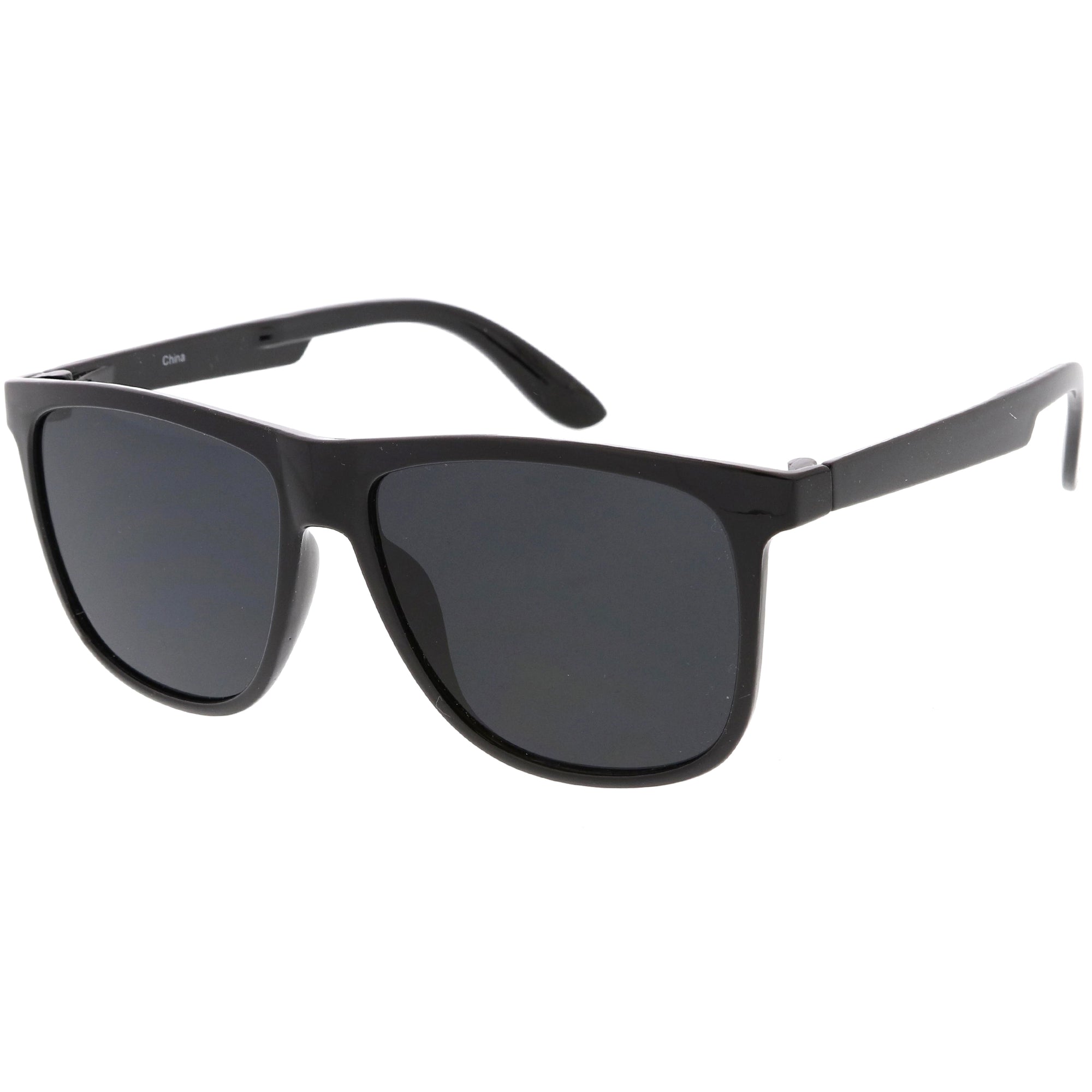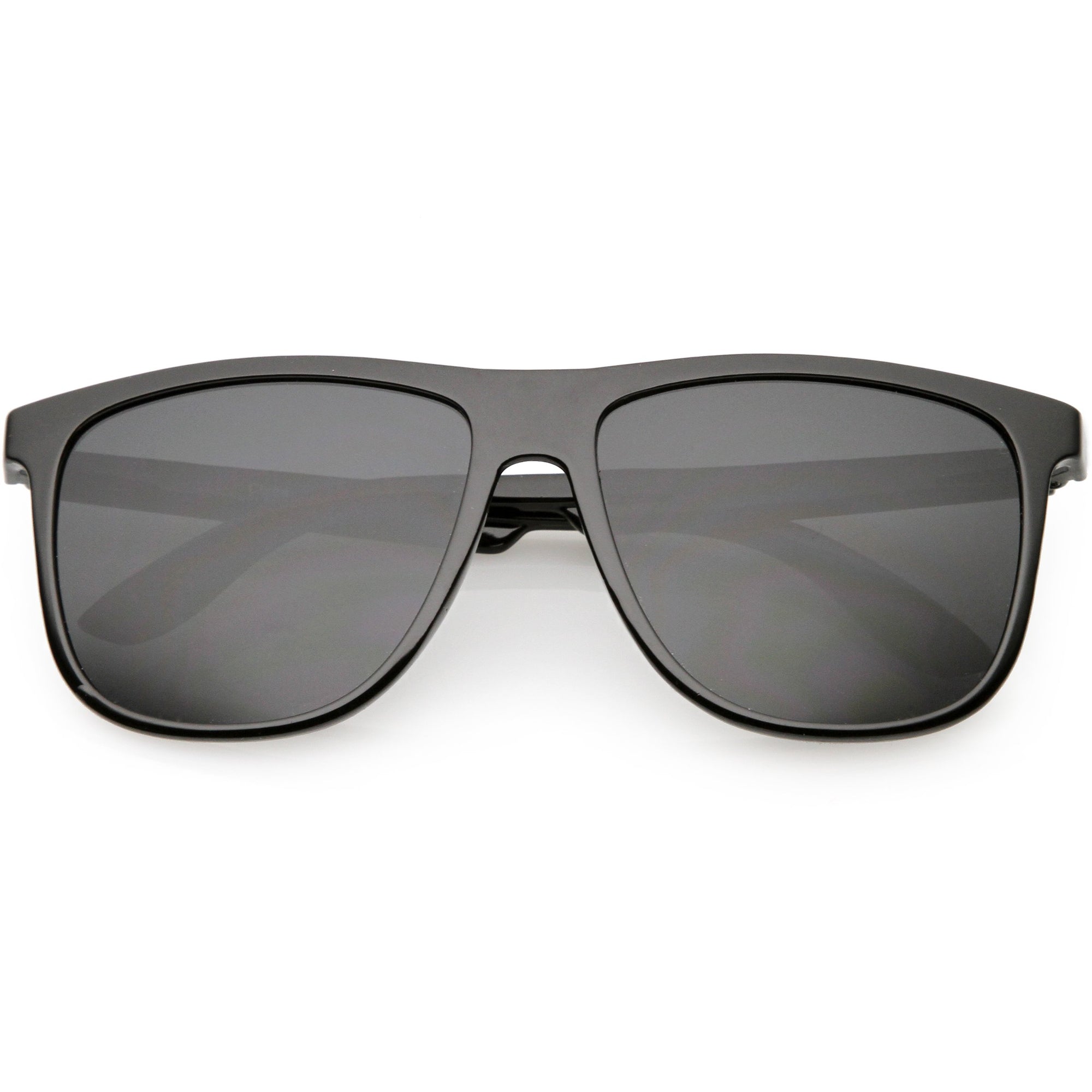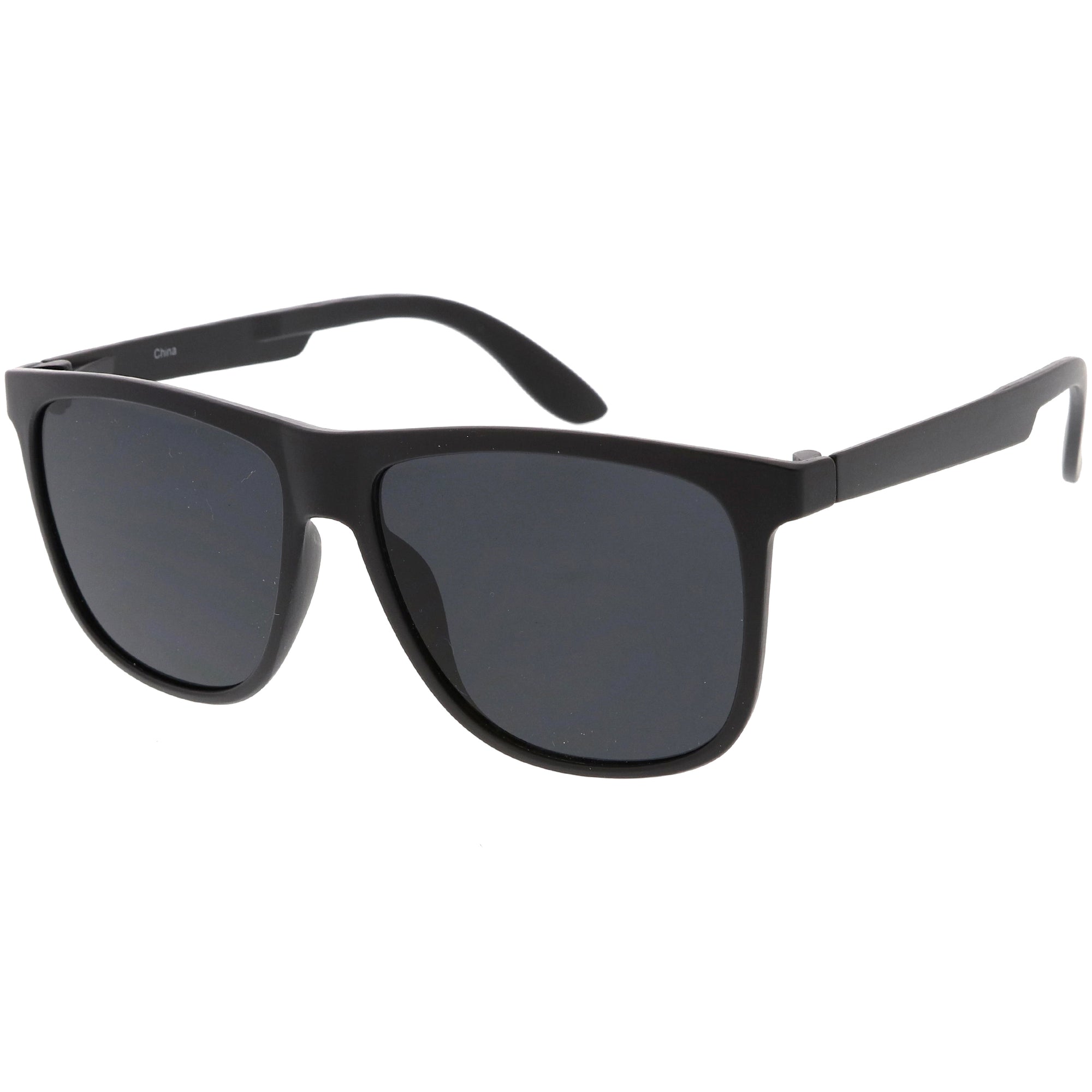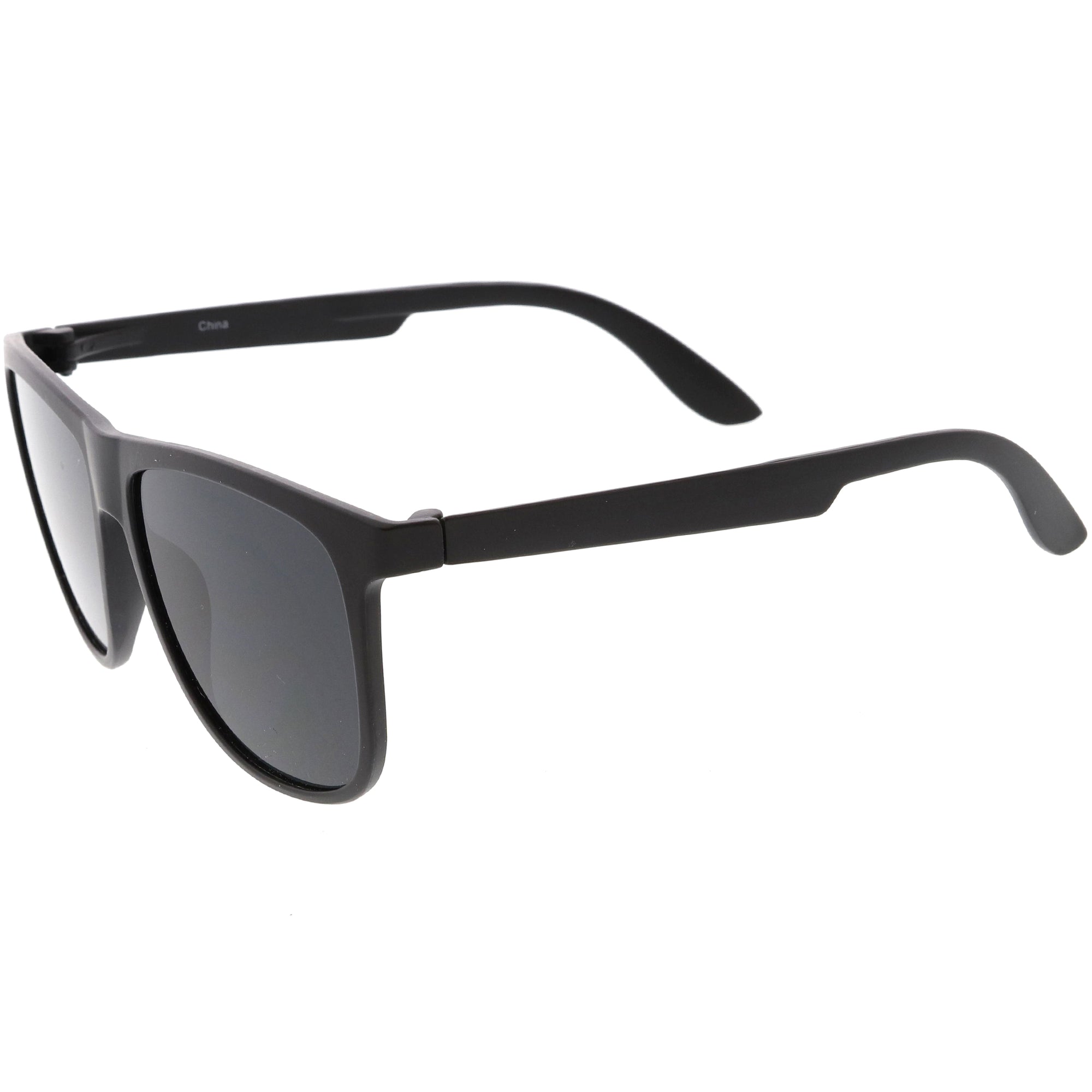 A modern take on classic horn rimmed sunglasses, these men's horn rimmed sunglasses are designed with a subtle curve at the brow and slim arms for a sleek effect. Complete with square flat lenses in neutral hues, these lightweight and versatile horn rimmed sunglasses are a great style for everyday wear. Made with a plastic based frame, triple barrel hinges, and 100% UV protected lenses.