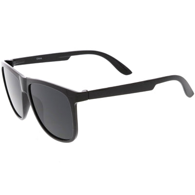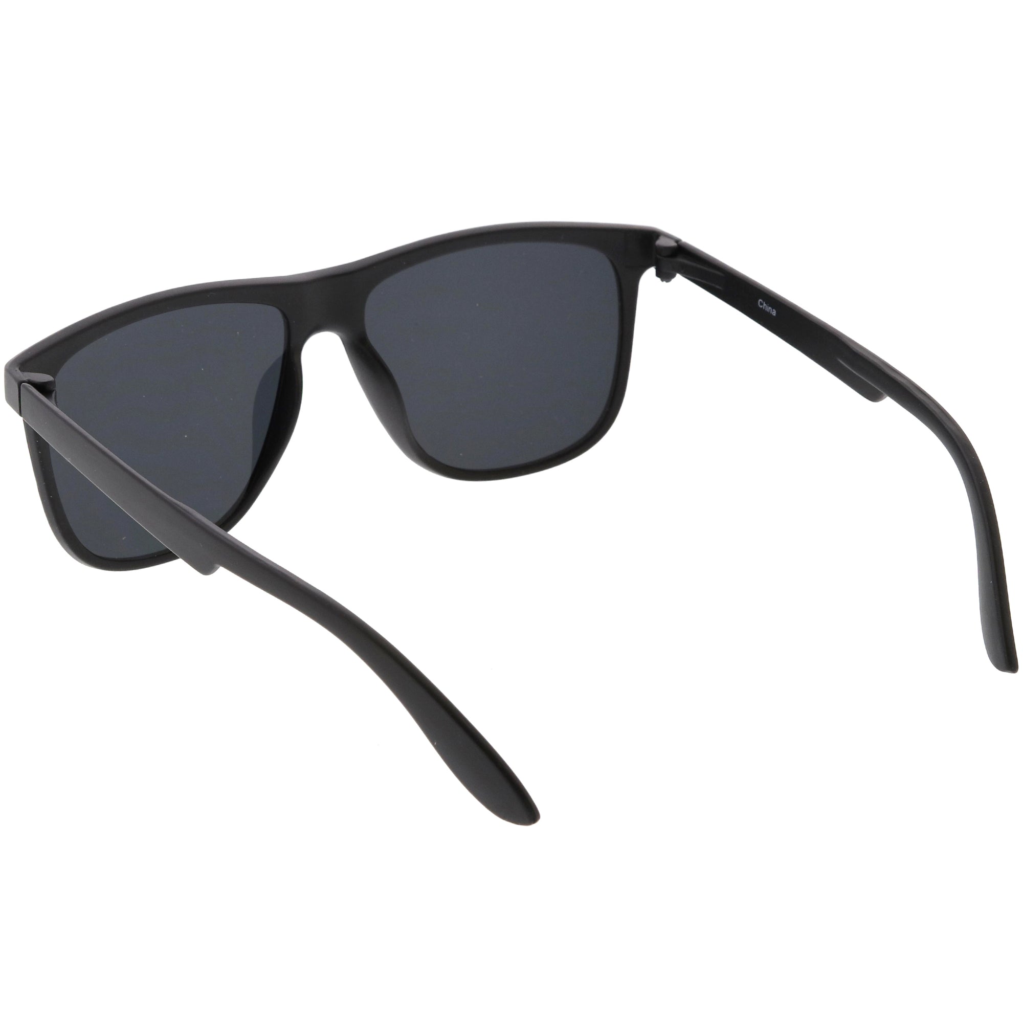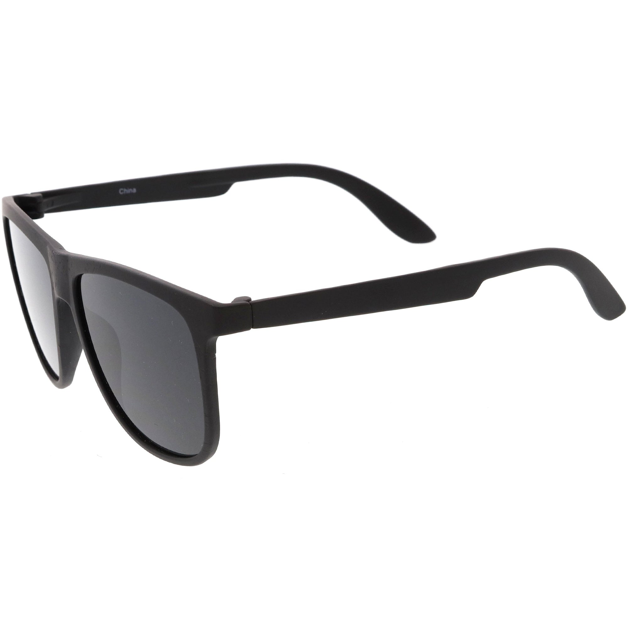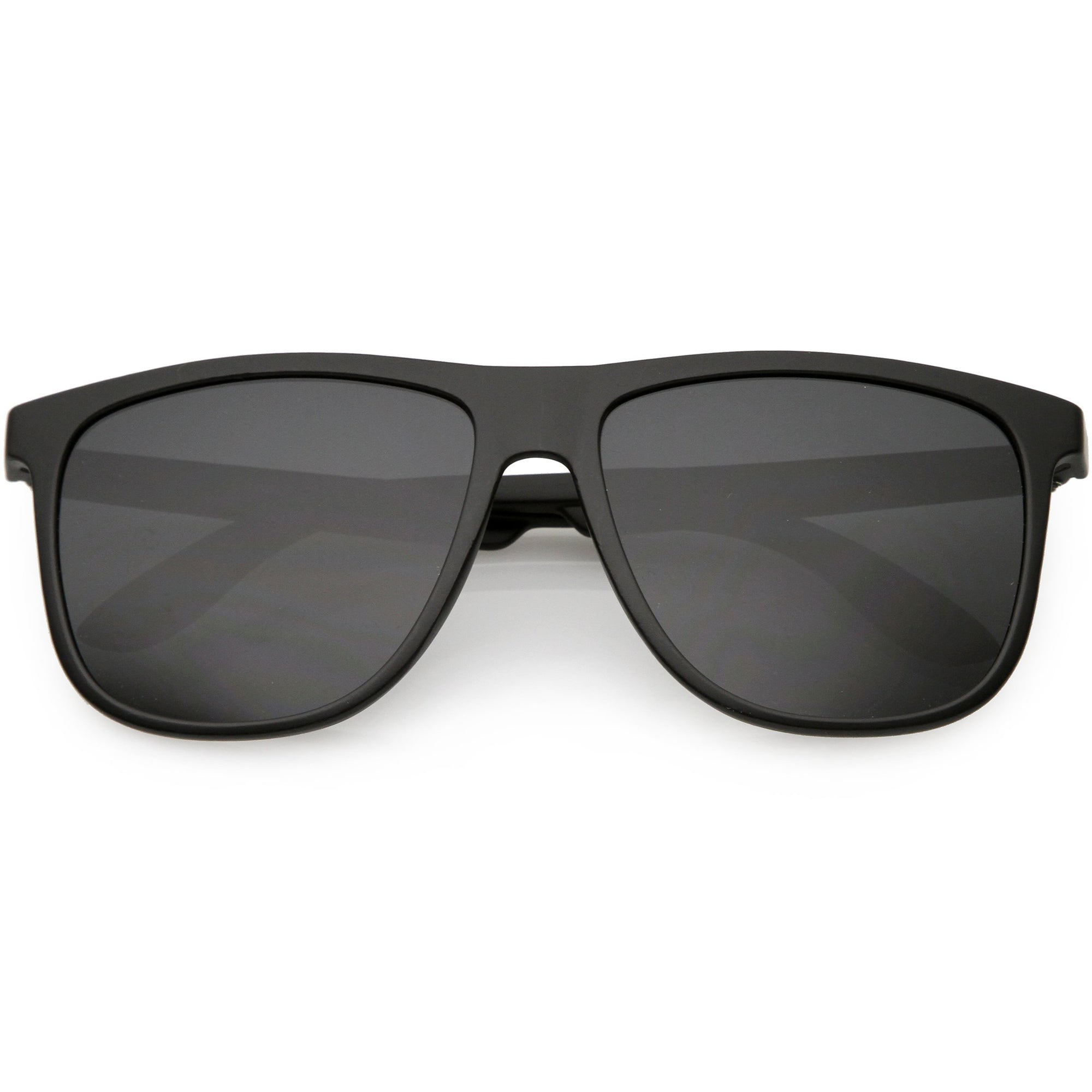 A modern take on classic horn rimmed sunglasses, these men's horn rimmed sunglasses are designed with a subtle curve at the brow and slim arms for a sleek effect. Complete with square flat lenses in neutral hues, these lightweight and versatile horn rimmed sunglasses are a great style for everyday wear. Made with a plastic based frame, triple barrel hinges, and 100% UV protected lenses.