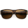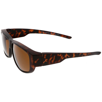 Bold and sleek, these horn rimmed sunglasses are designed with a thick frame and wide arms for a stand out effect. Complete with rectangle shaped polarized lenses and a subtle flat top design, these oversized sunglasses are the perfect combination of style and function. Made with a plastic based frame, double barrel hinges, and 100% UV protected polarized lenses.