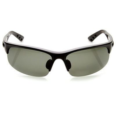 Modern sports half jacket design gives an unobstructed 180 degree view while offering versatility with a light weight construction and a hard polarized lens. These shades feature an acetate based frame, silicone nose grips, silicone temple grips, pin hinges, and premium hard coated UV protected polarized lenses. Light weight and comfortable, these will be great for light sports and a variety of outdoor activities.