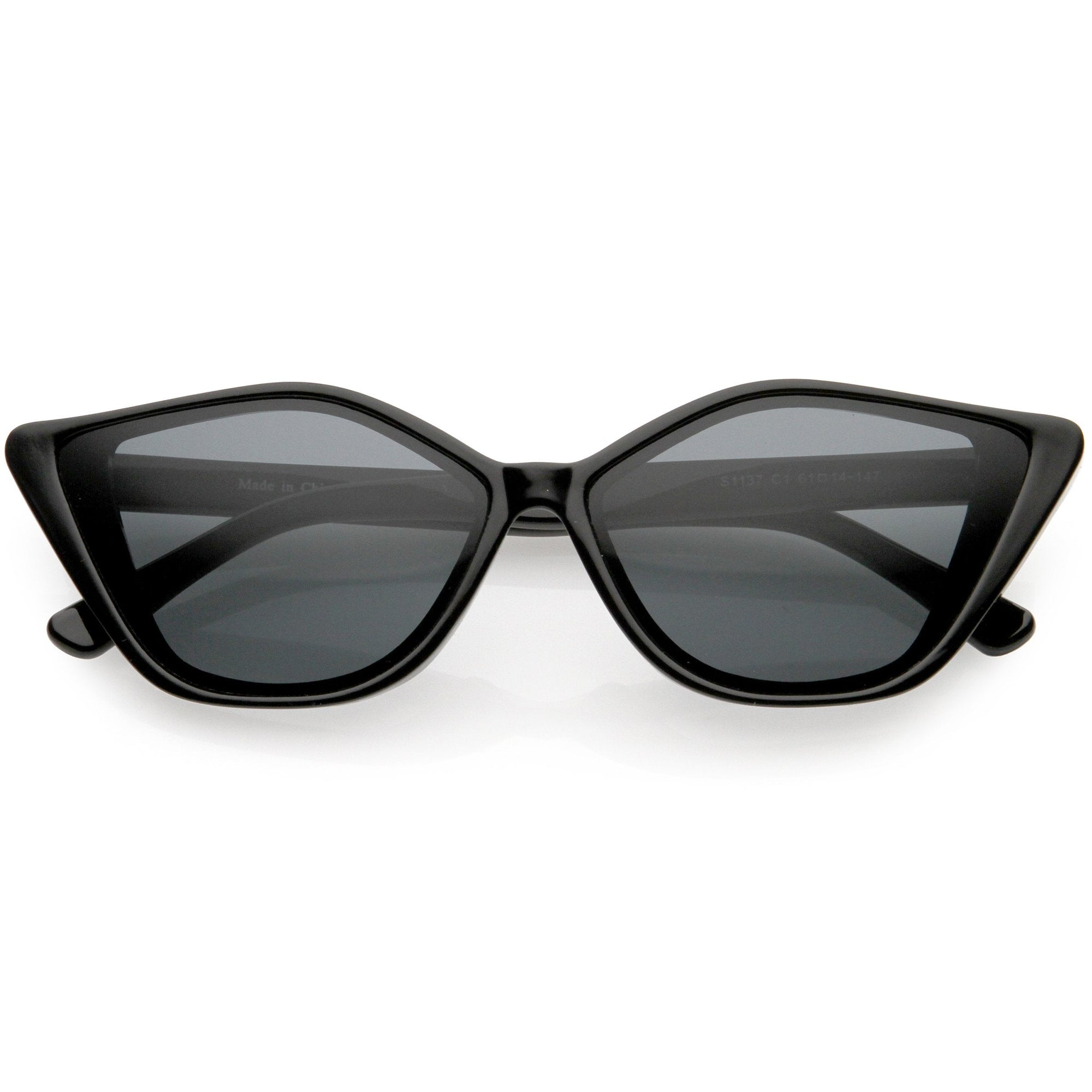 • Sleek angular style for a fashion forward look. Look no further than our modern sleek angular style cat eye sunglasses. For a more fashion forward look, our thin bezel flat lens are lightweight and suitable for anyone on-the-go. Made with a plastic based frame, metal hinges, and 100% UV protected lenses.
