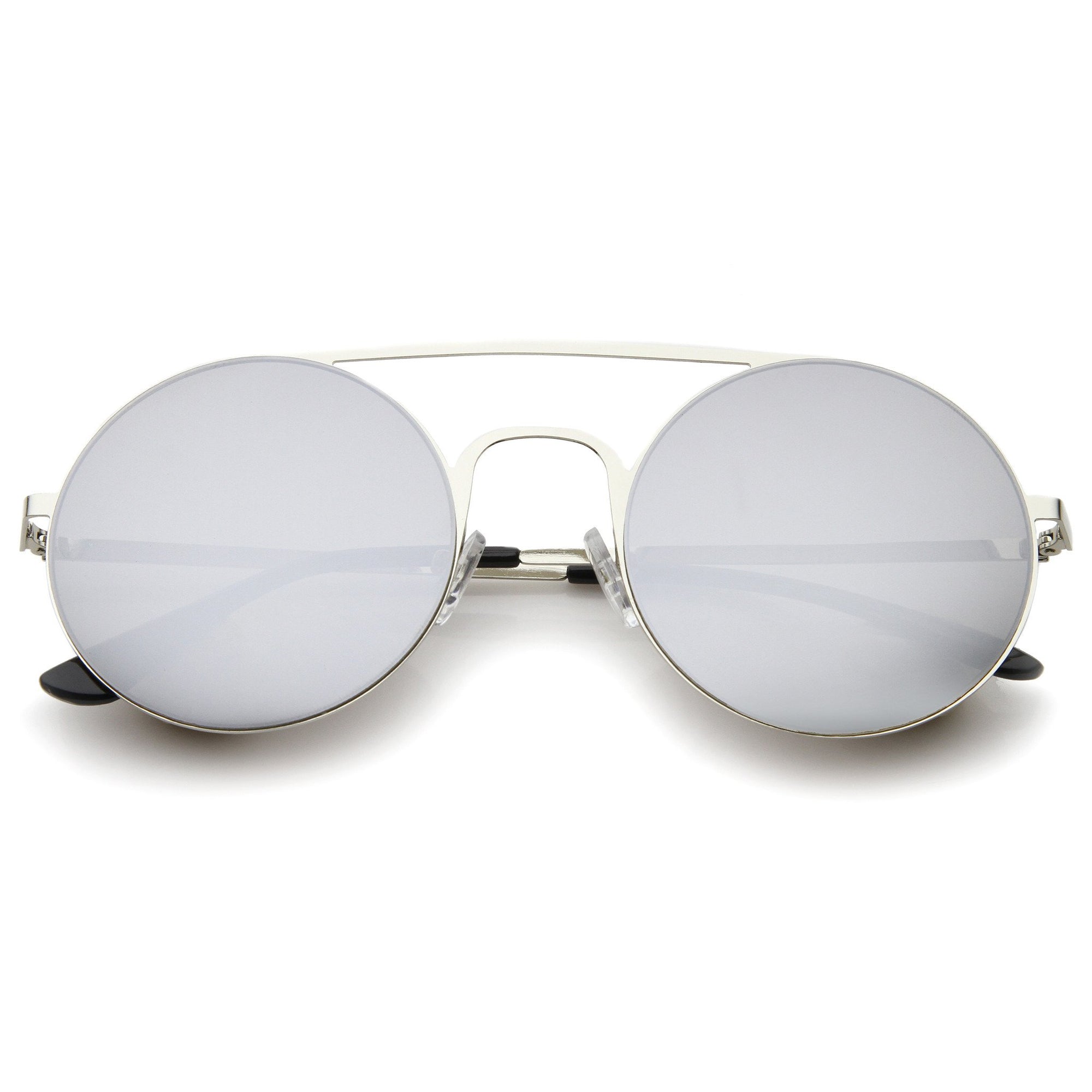 Modern Slim Round Mirrored Flat Lens Sunglasses A505