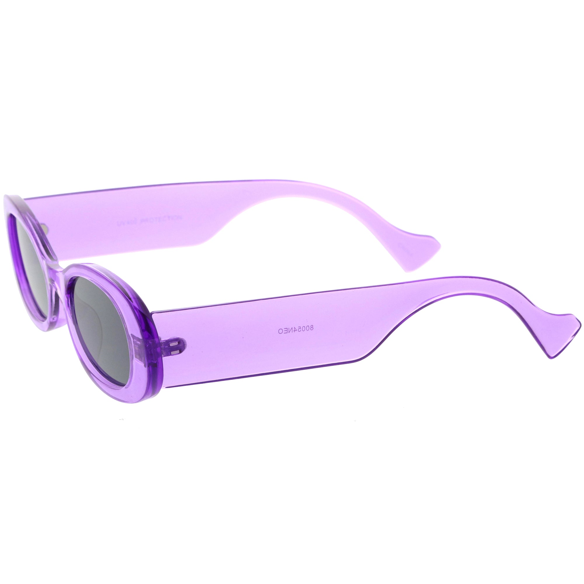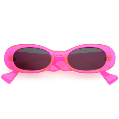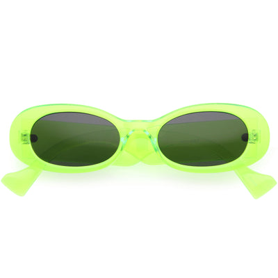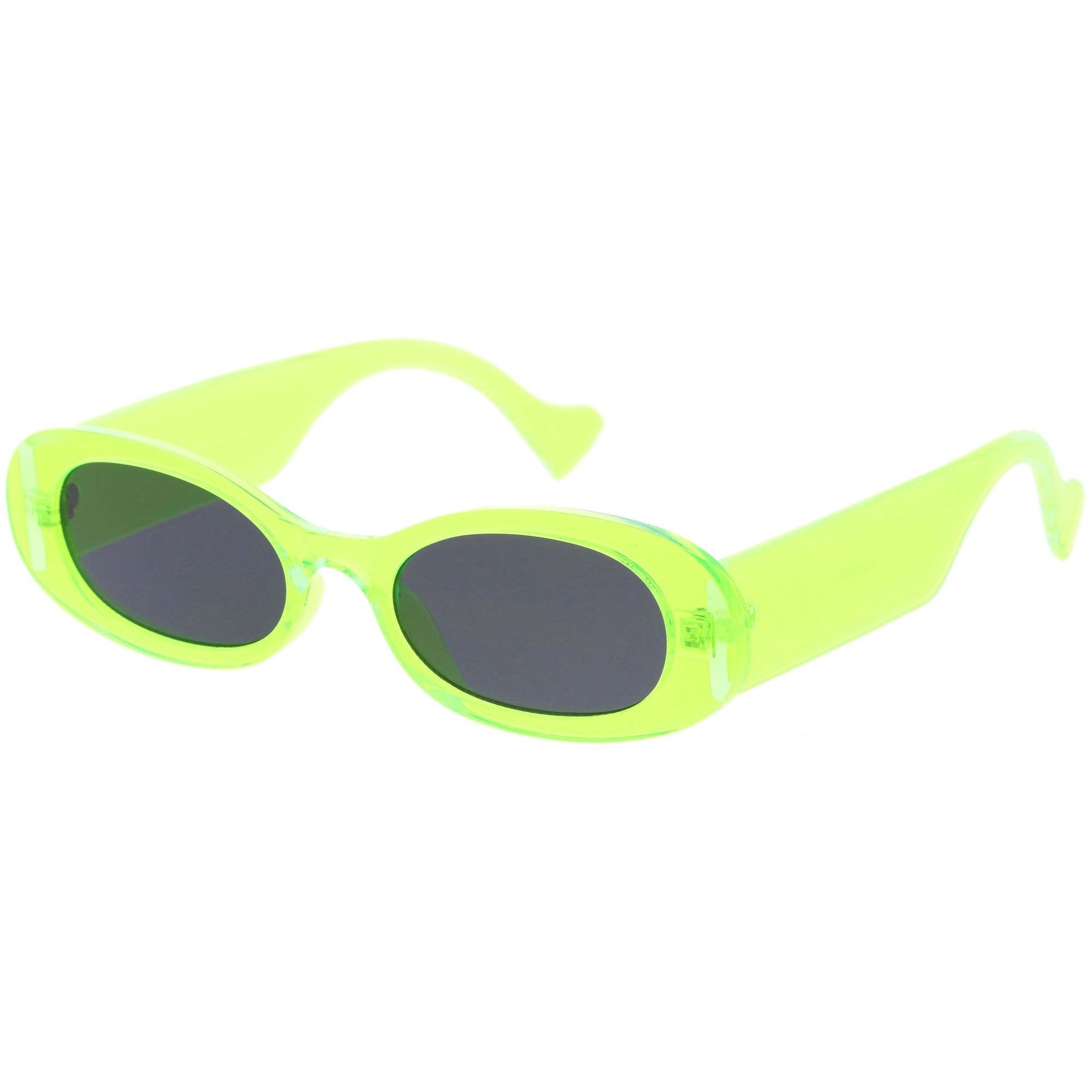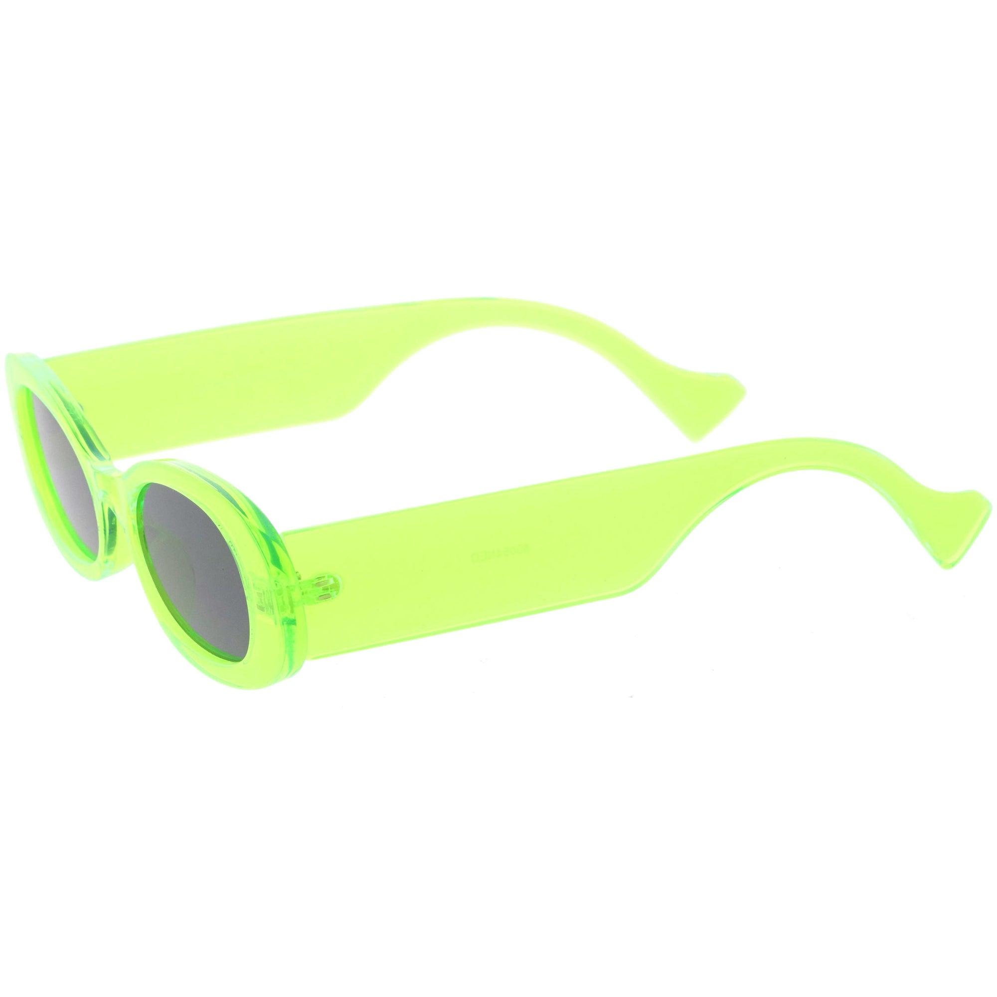 Head out for an adventure with our retro chic oval sunglasses. Designed with retro-inspired round lenses with a translucent neon color, these circular shades will surely complement any outfit. Made with a plastic based frame, reinforced metal hinges, and 100% UV protected lenses.
