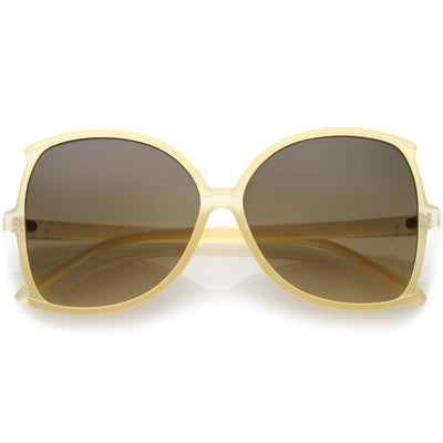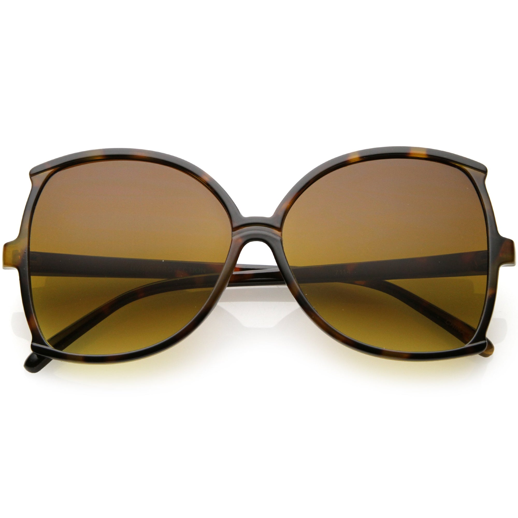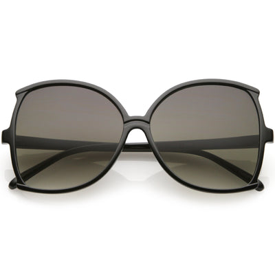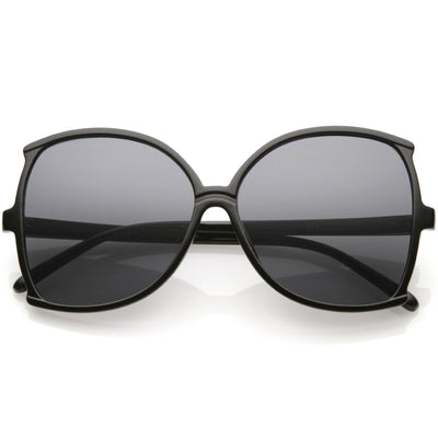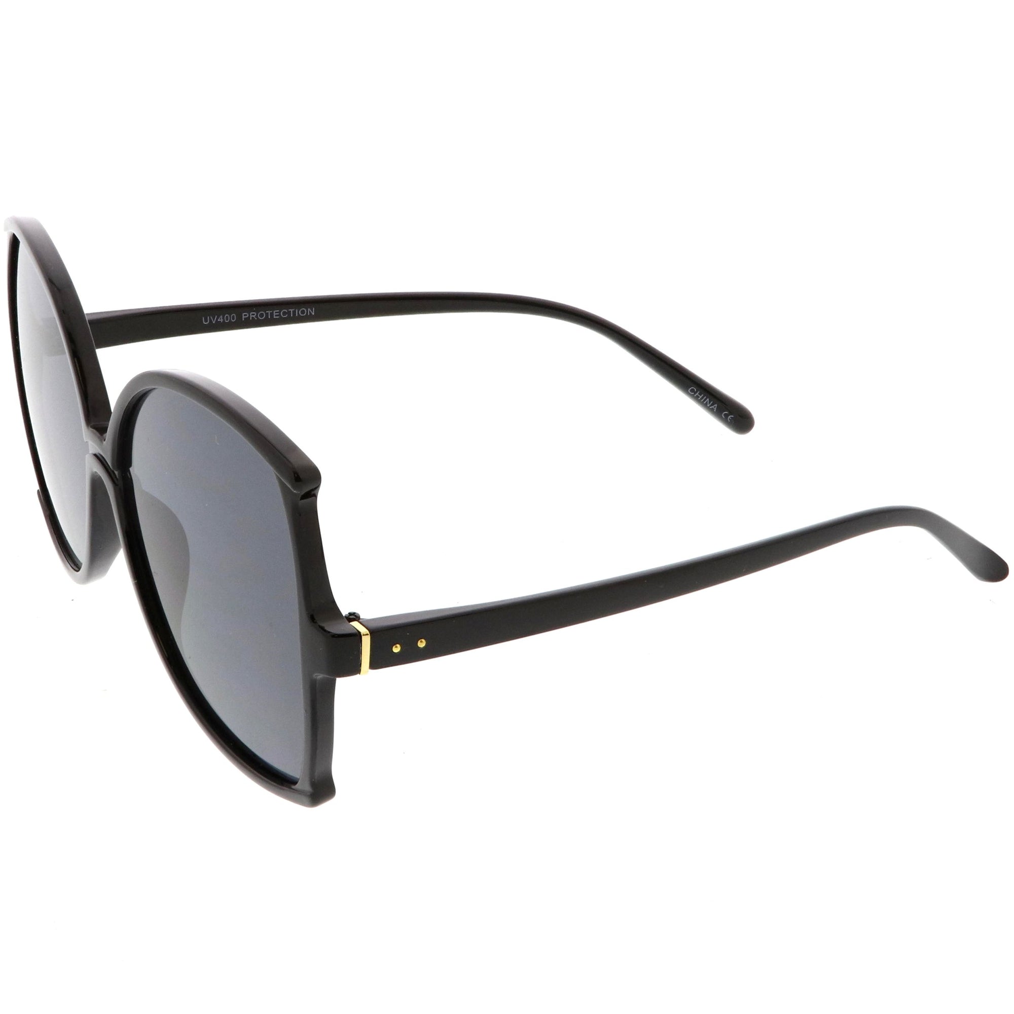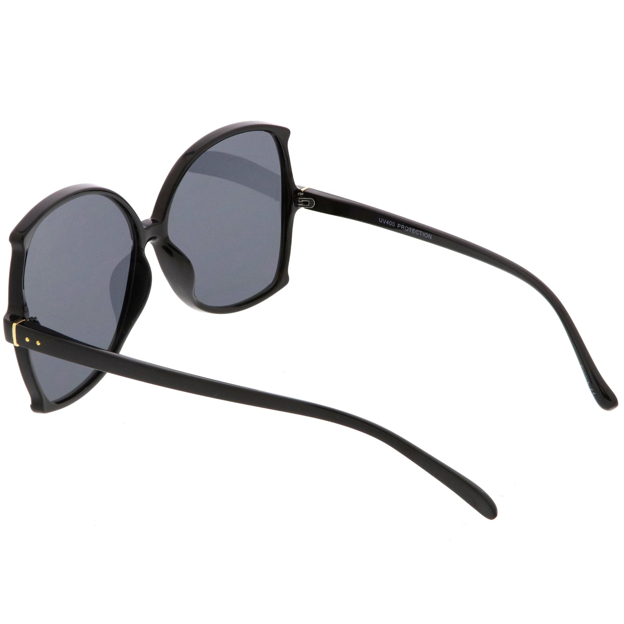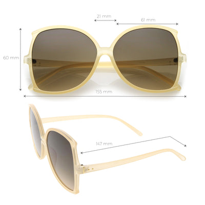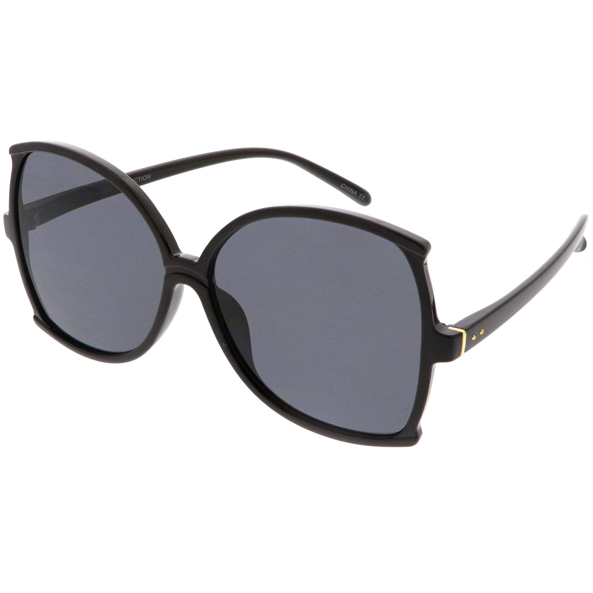 Glamorous and chic, these buttefly sunglasses are designed with an oversize silhouette and slim arms. Finished with neutral colored lenses and metal accents at the arms, these versatile sunglasses can be worn year round. Made with a plastic based frame, metal hinges, and 100% UV protected lenses.