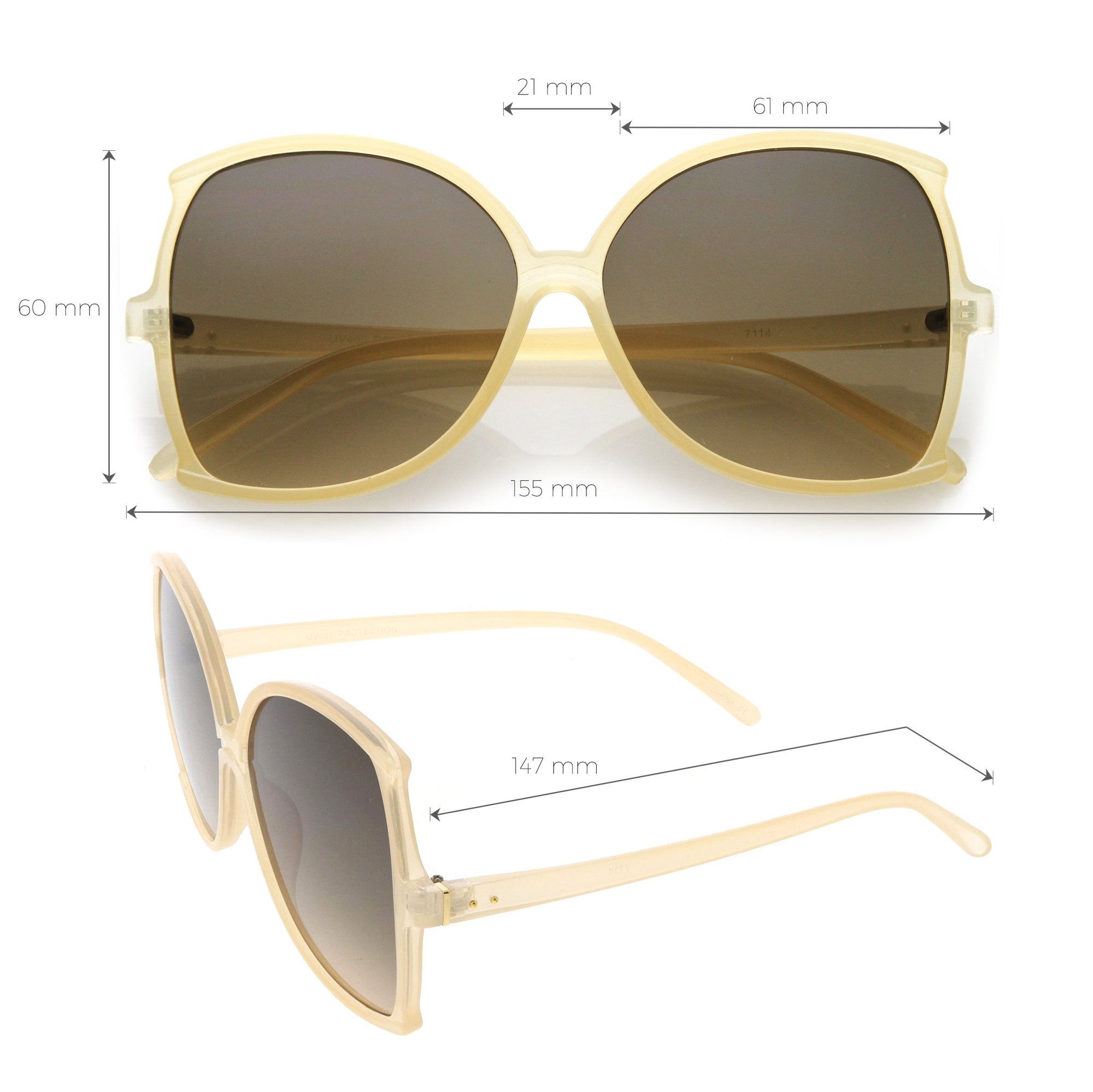 Lens Width: 61mm Nose Bridge: 21mm Lens Height: 60mm Total Width: 155mm