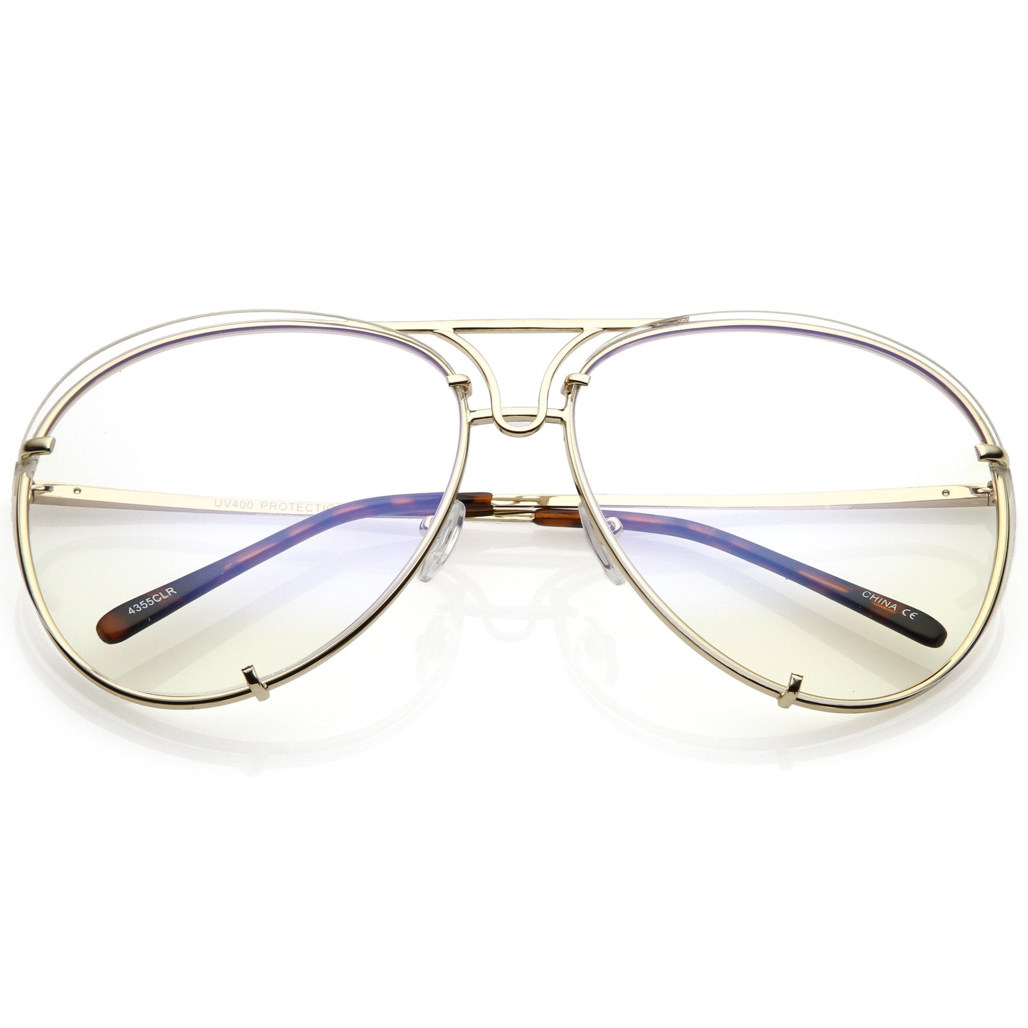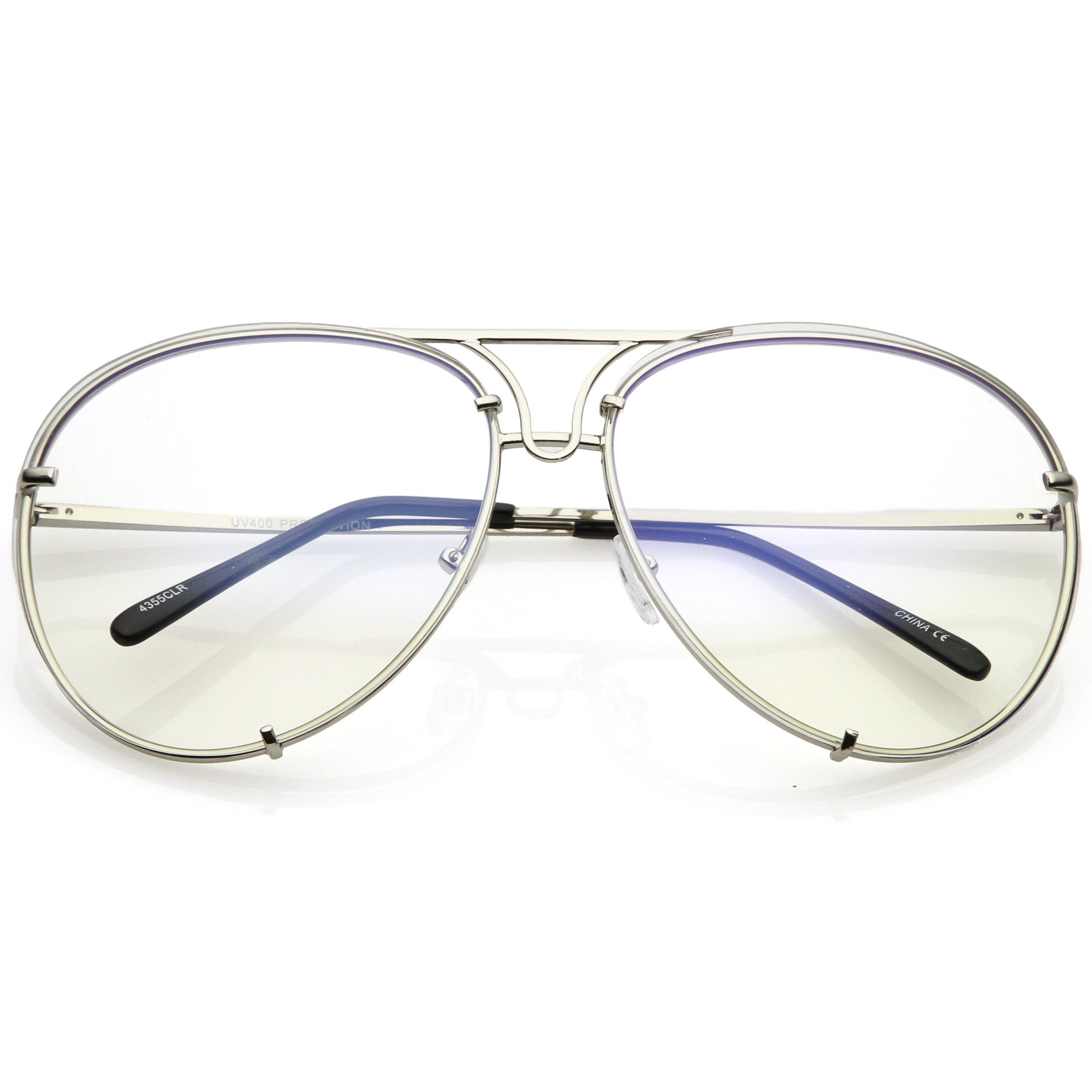 Oversize Industrial Design Clear Flat Lens Aviator Glasses C155
