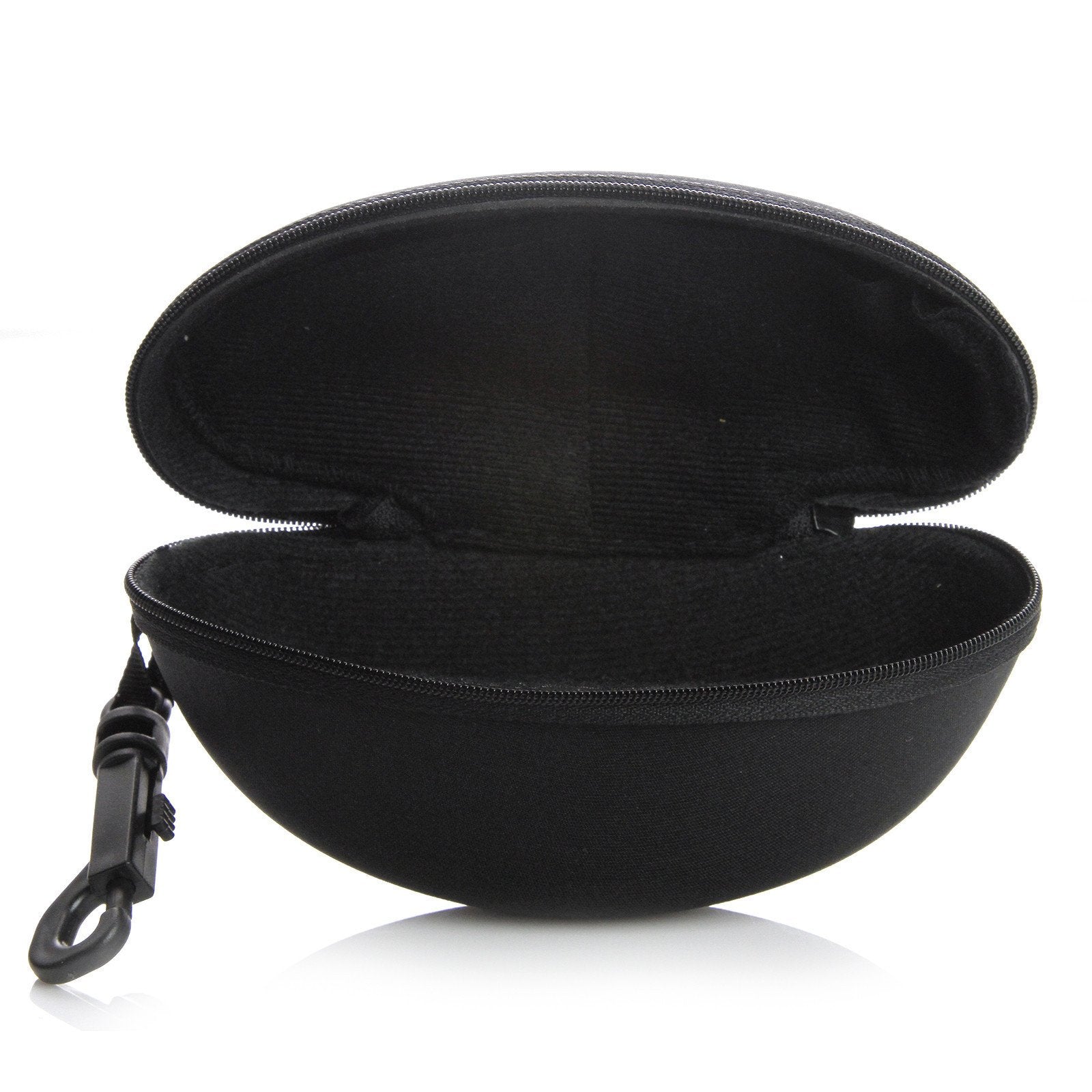 Keep your favorite shades safe in this lightweight compact zip capsule that you can carry anywhere. Features a zippered opening, spare lens compartment, belt strap, utility key chain, and a soft black nylon exterior. Fits most glasses.