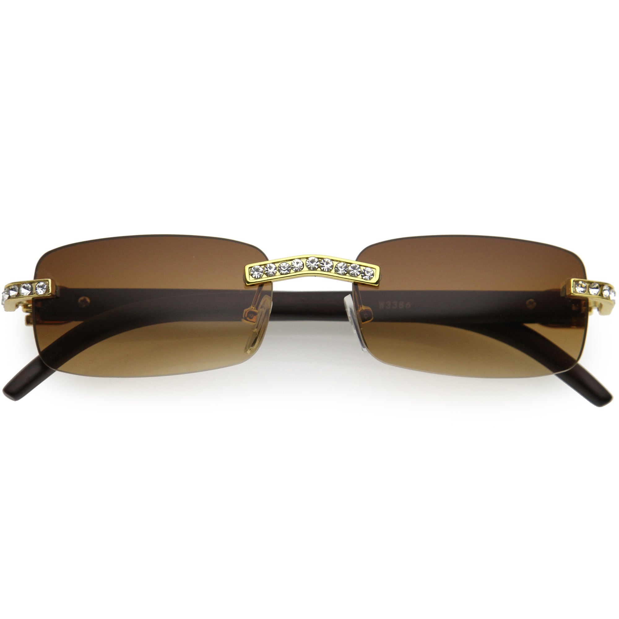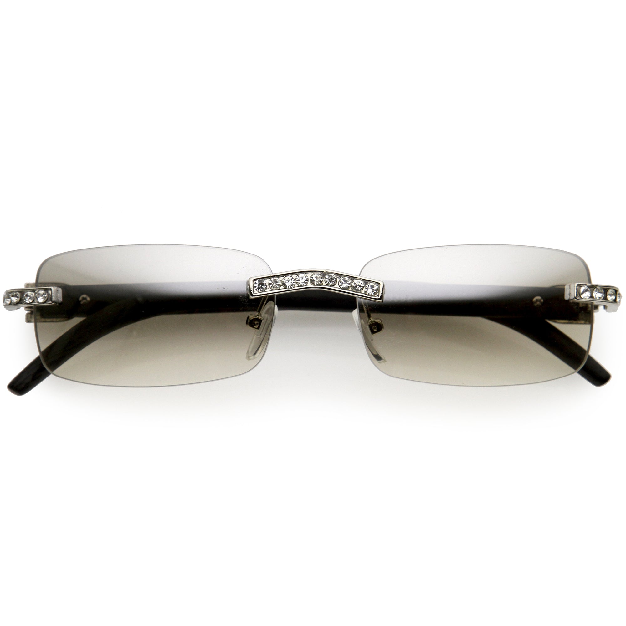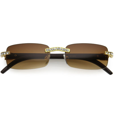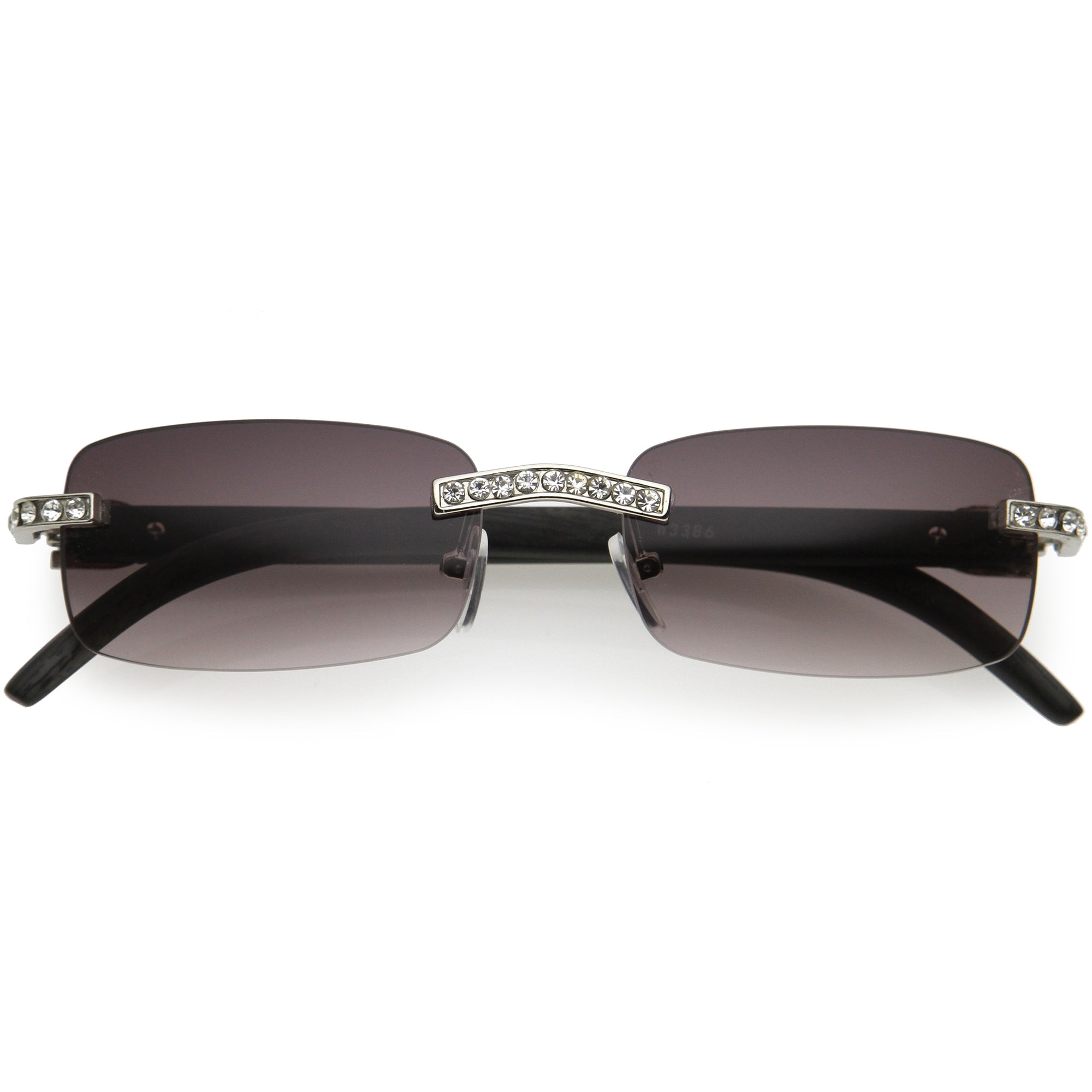 Tap into the classy 90s trends with these premium rhinestones decorated shades. Featuring rhinestones along the nosebridge and temples, these premium shades are designed with a full rimless rectangle lenses. Made with a metal based frame, adjustable nose pieces, metal hinges, and 100% UV protected lenses.