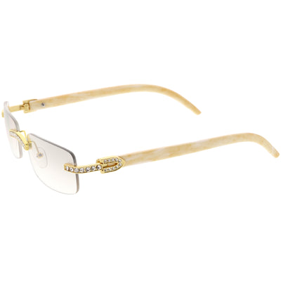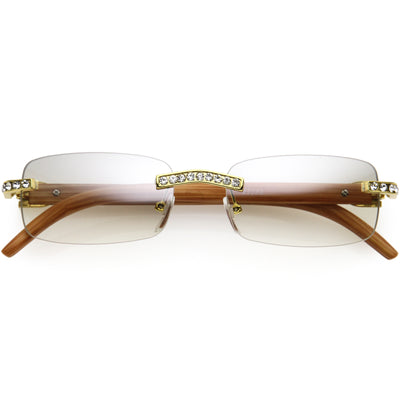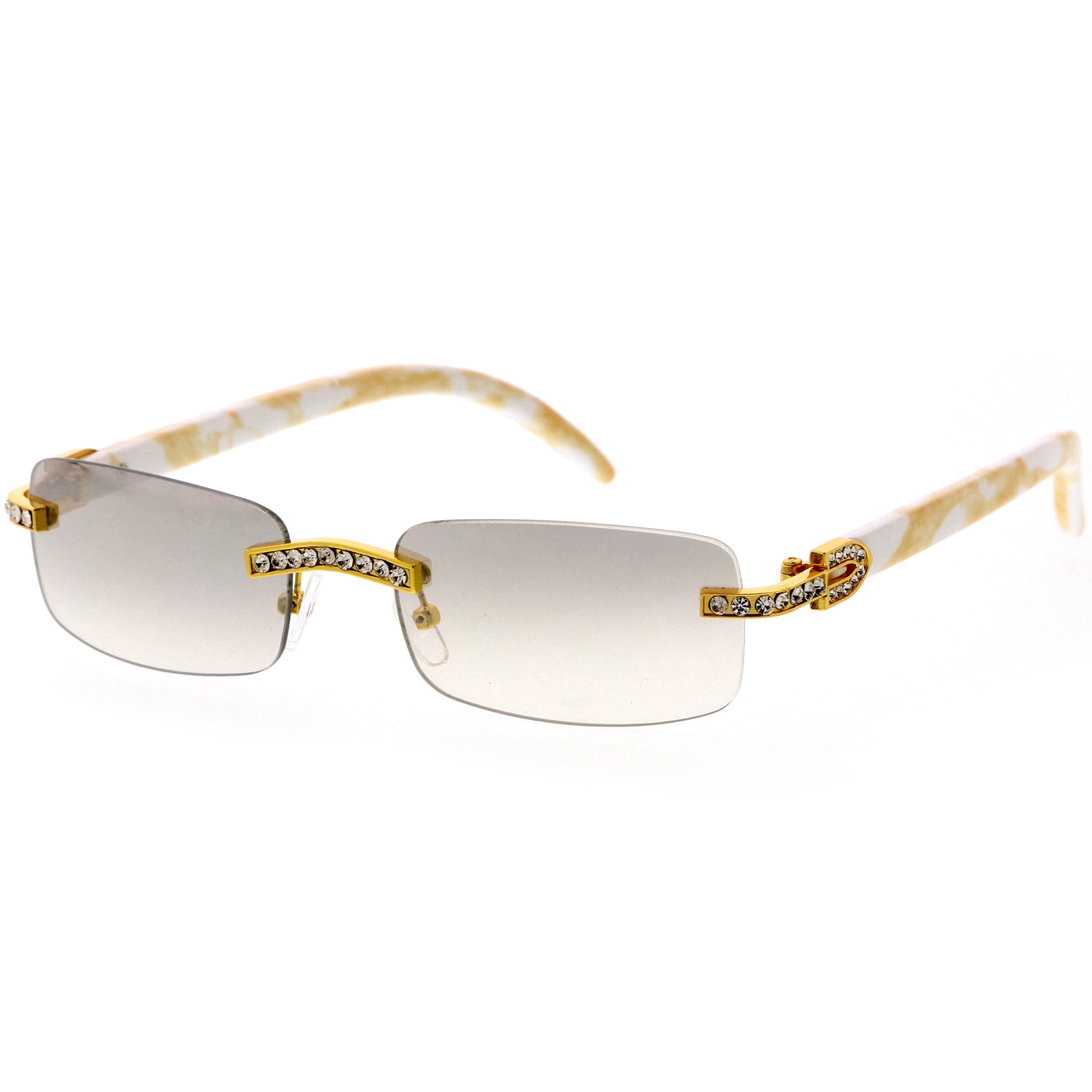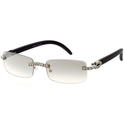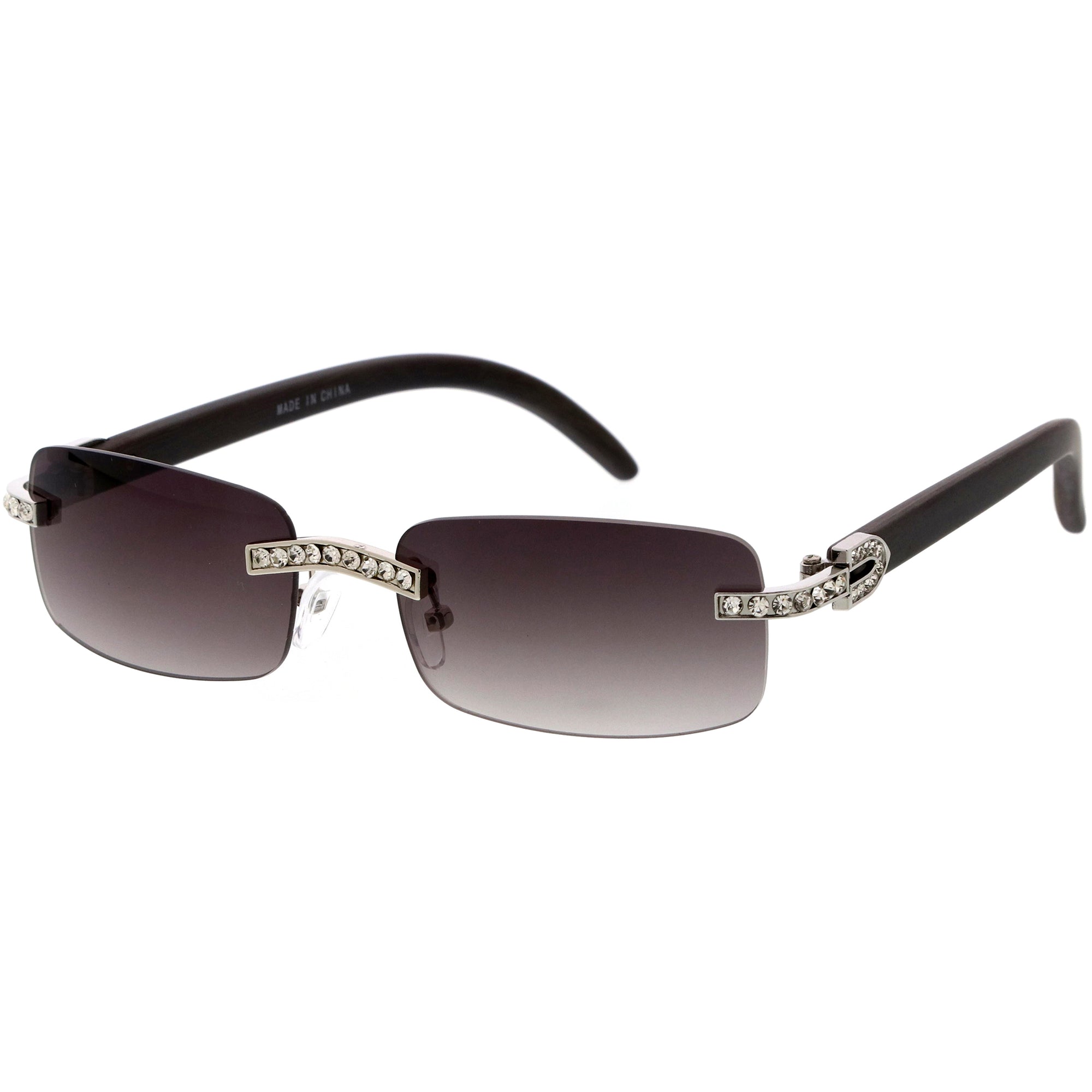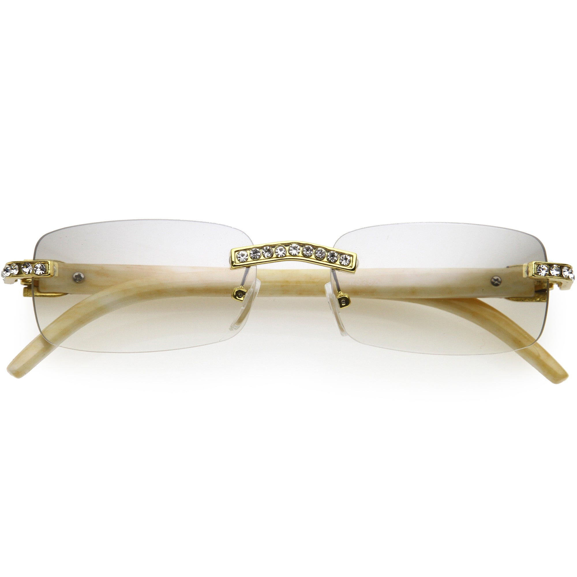Tap into the classy 90s trends with these premium rhinestones decorated shades. Featuring rhinestones along the nosebridge and temples, these premium shades are designed with a full rimless rectangle lenses. Made with a metal based frame, adjustable nose pieces, metal hinges, and 100% UV protected lenses.