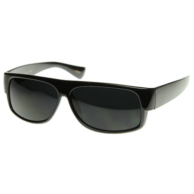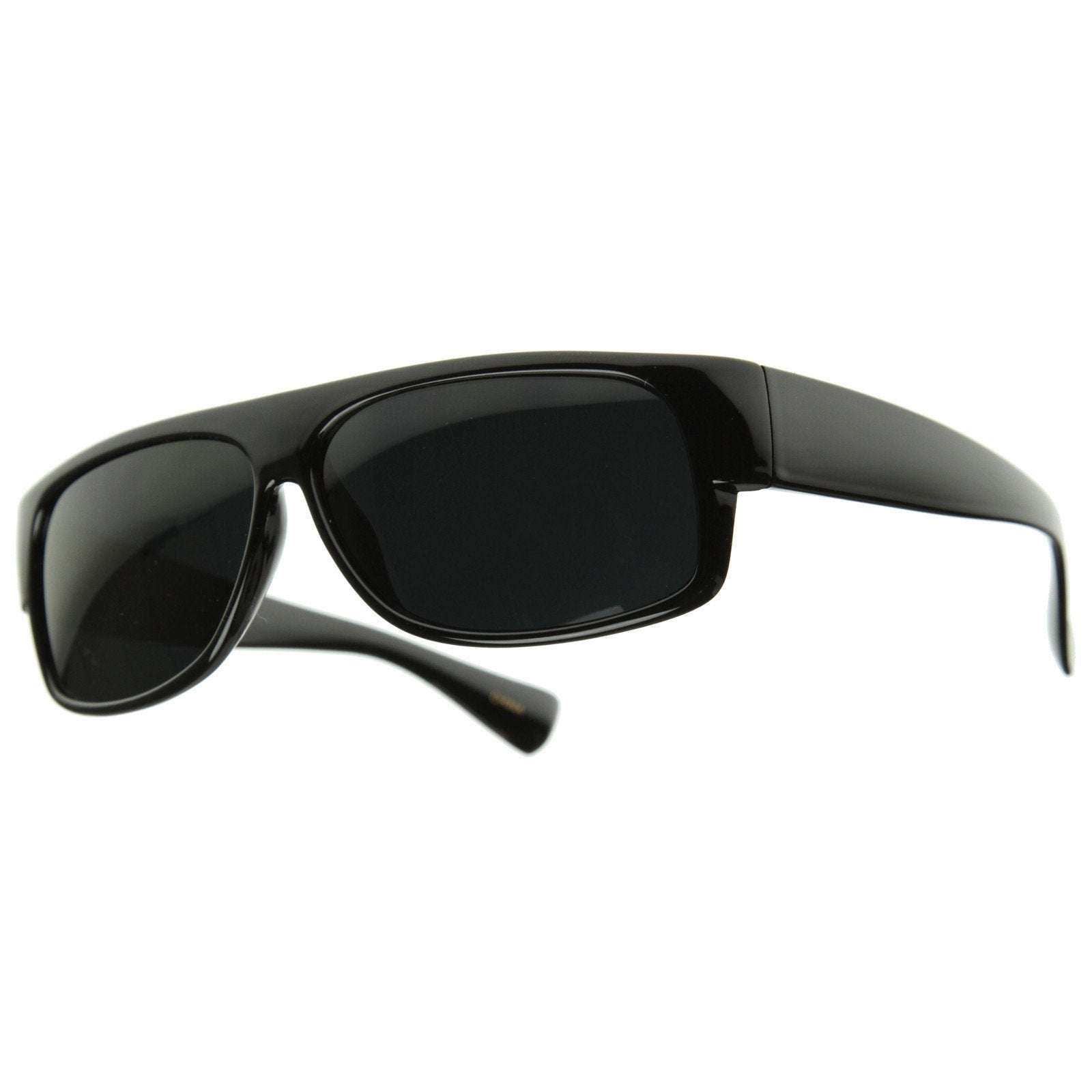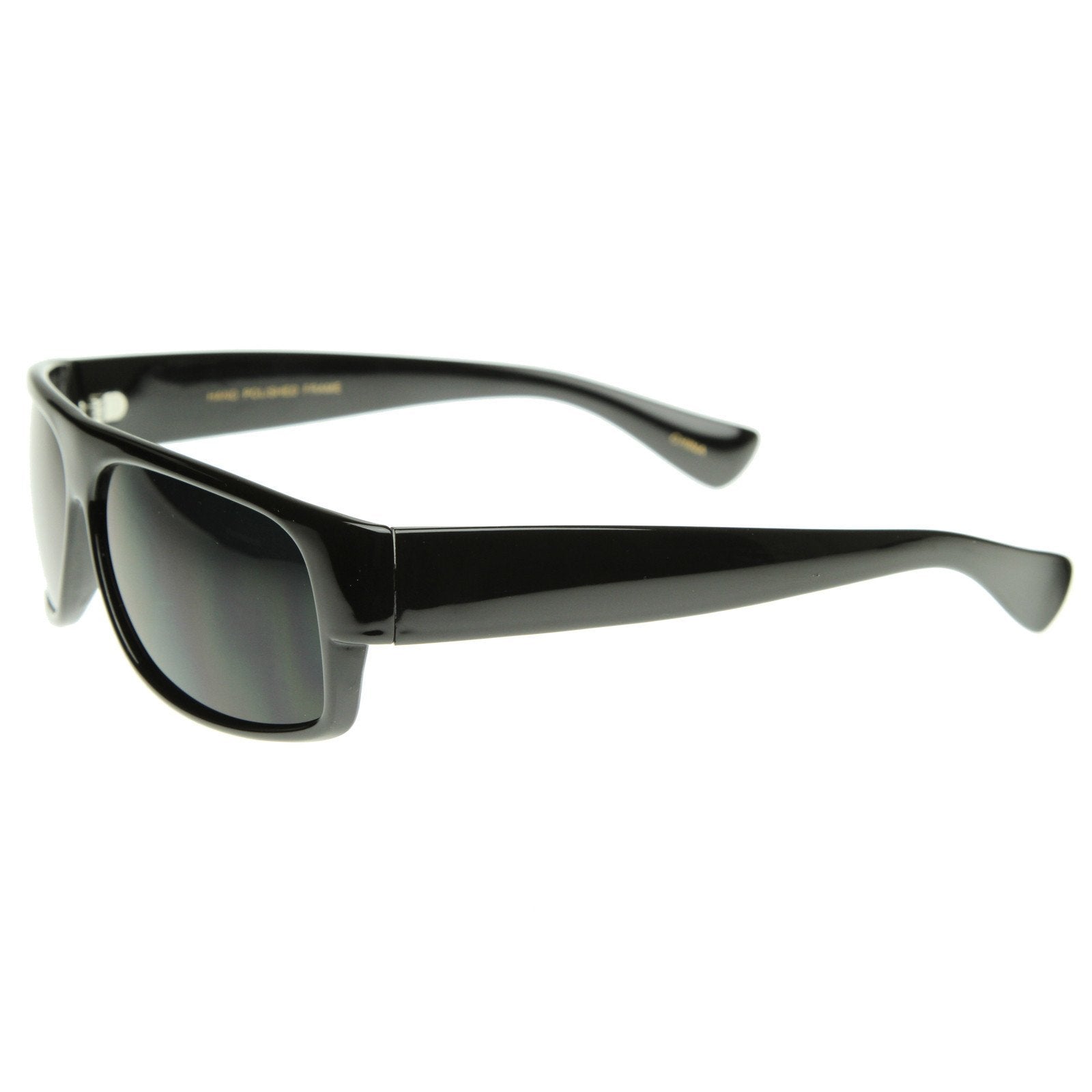 The original LOC shape made popular circa the NWA days. The shape epitomizes LA gangsta shades with a flat semi square shape, an all black frame and super dark lenses. Made with an acetate based frame, metal hinges and dark smoke UV protected lenses..