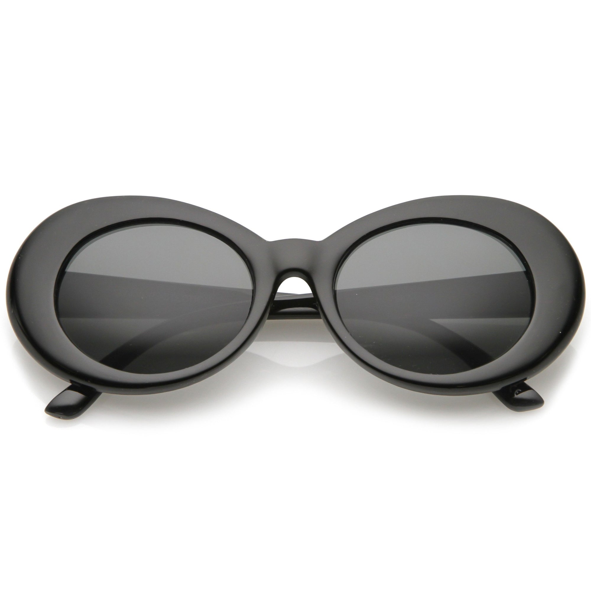 Retro and cool, these clout oval sunglasses are designed with a rounded oval-shaped frame and round lenses in neutral hues. Made famous by the great Kurt Cobain. Complete with arms that taper at the ends and reinforced metal hinges, these chic sunglasses add a fun element to any outfit. Made with plastic based frame and 100% UV protected lenses.