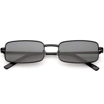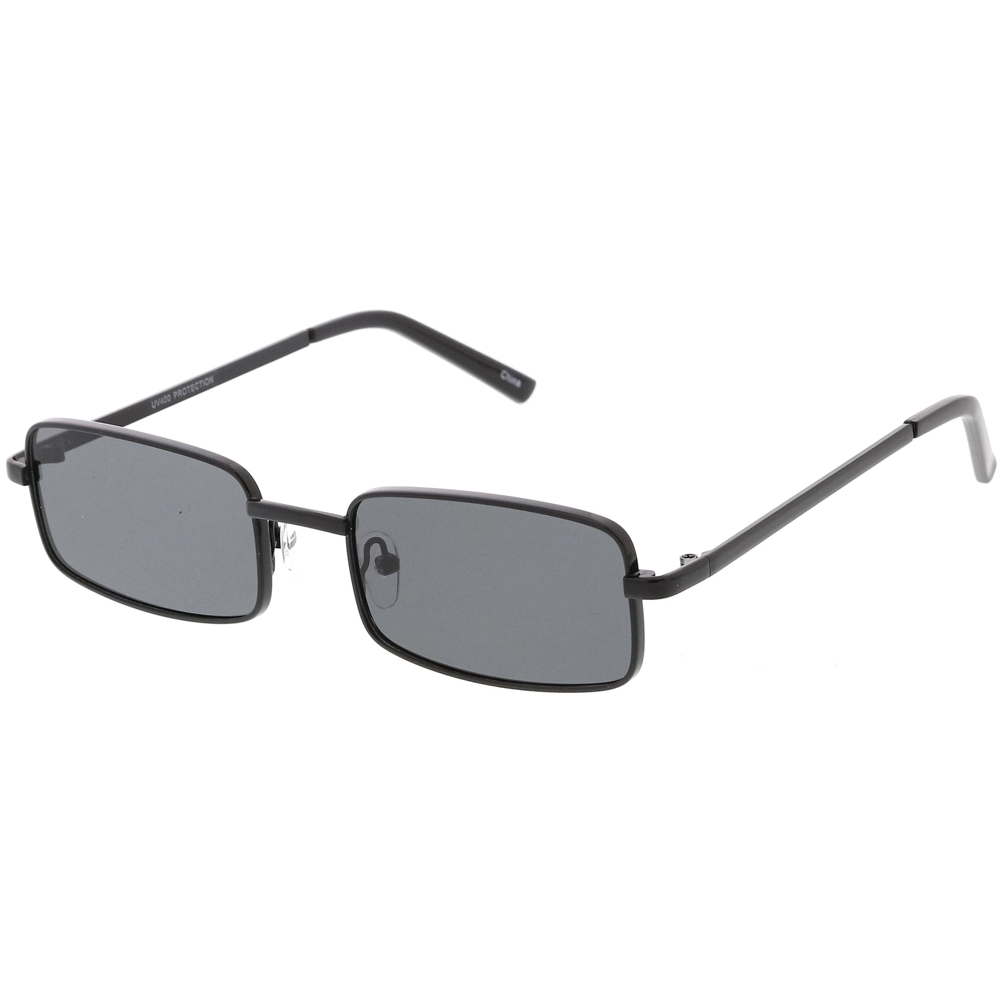 • These small rectangle sunglasses have taken a modern twist on a classic 90's style. This metal design has everything you need to add a retro look to any outfit. Choose between four different neutral colored flat lenses to add to your accessory closet. Finished with a metal-based frame, adjustable English style nose pieces, metal hinges, and 100% UV protected lenses.