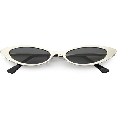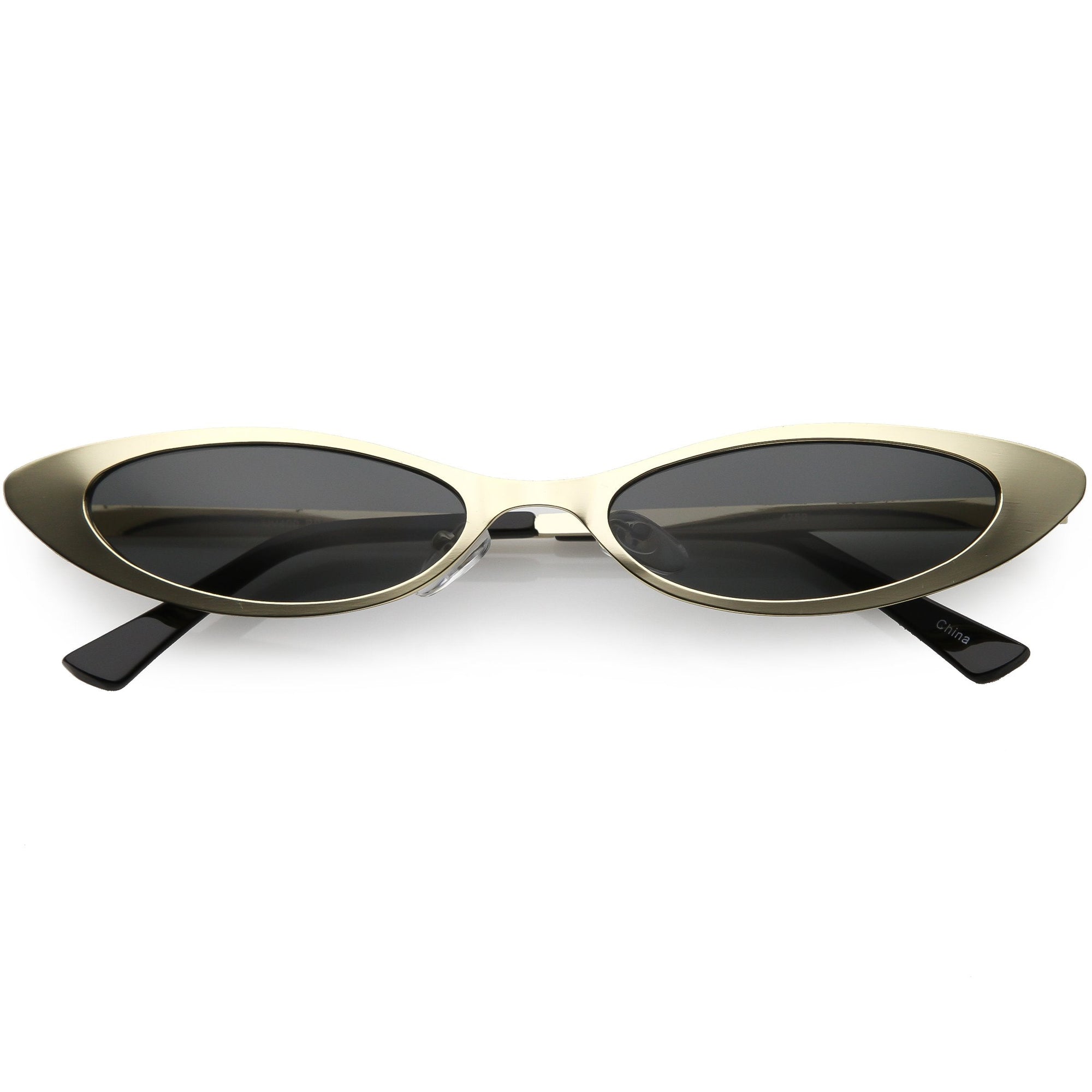 - 90's Small Slim Cat Eye Sunglasses Flat Metal Oval Lens 54mm