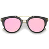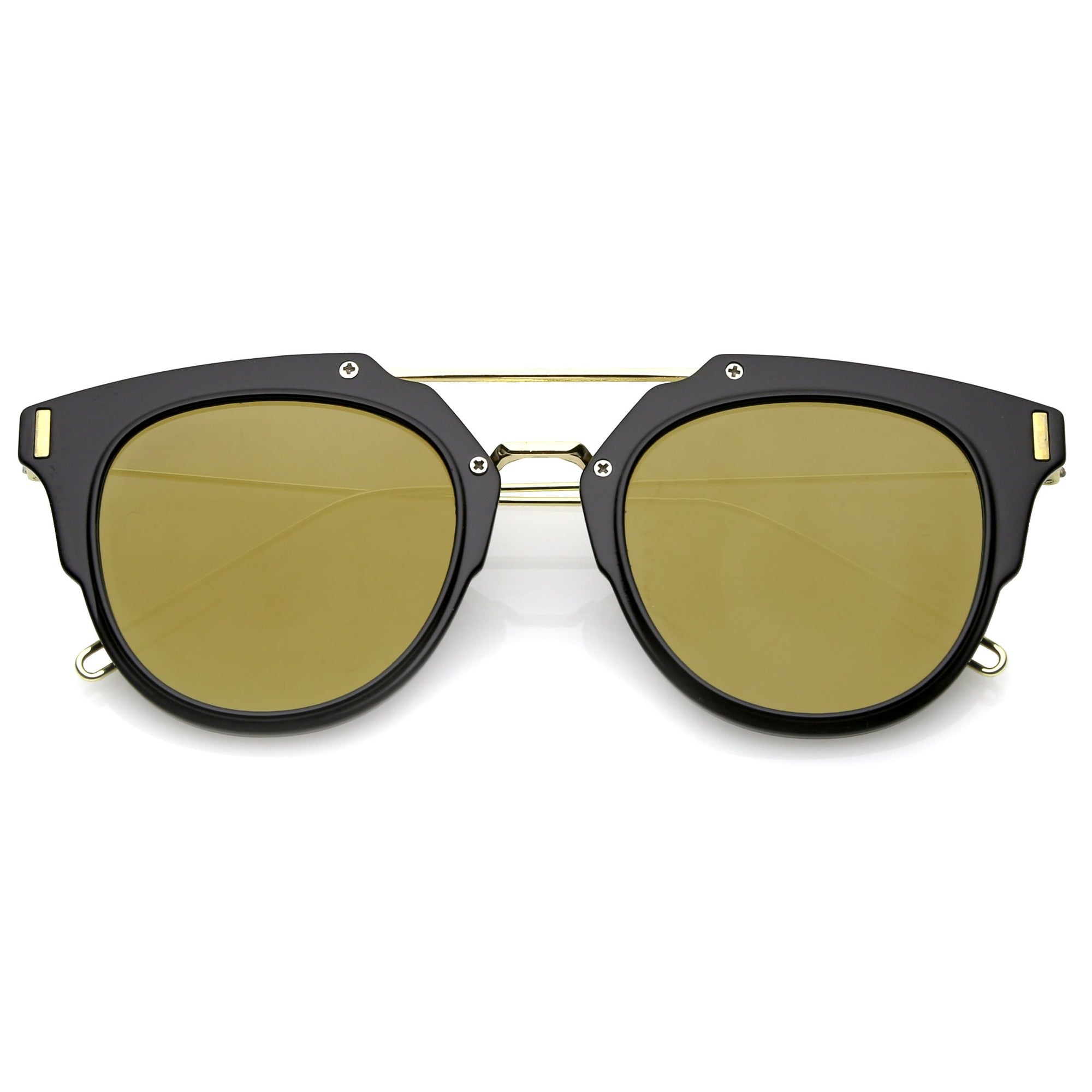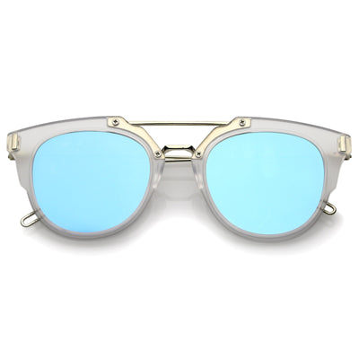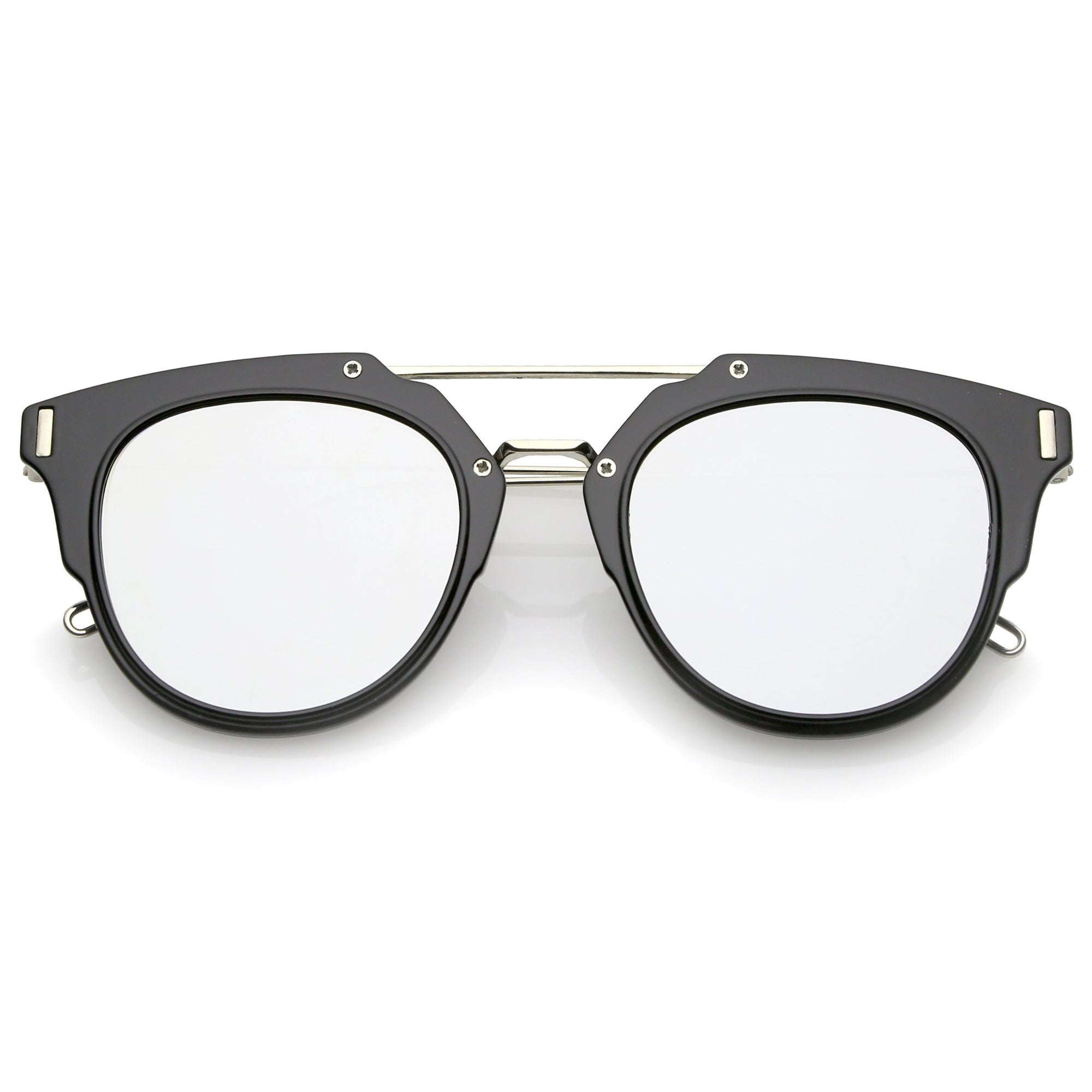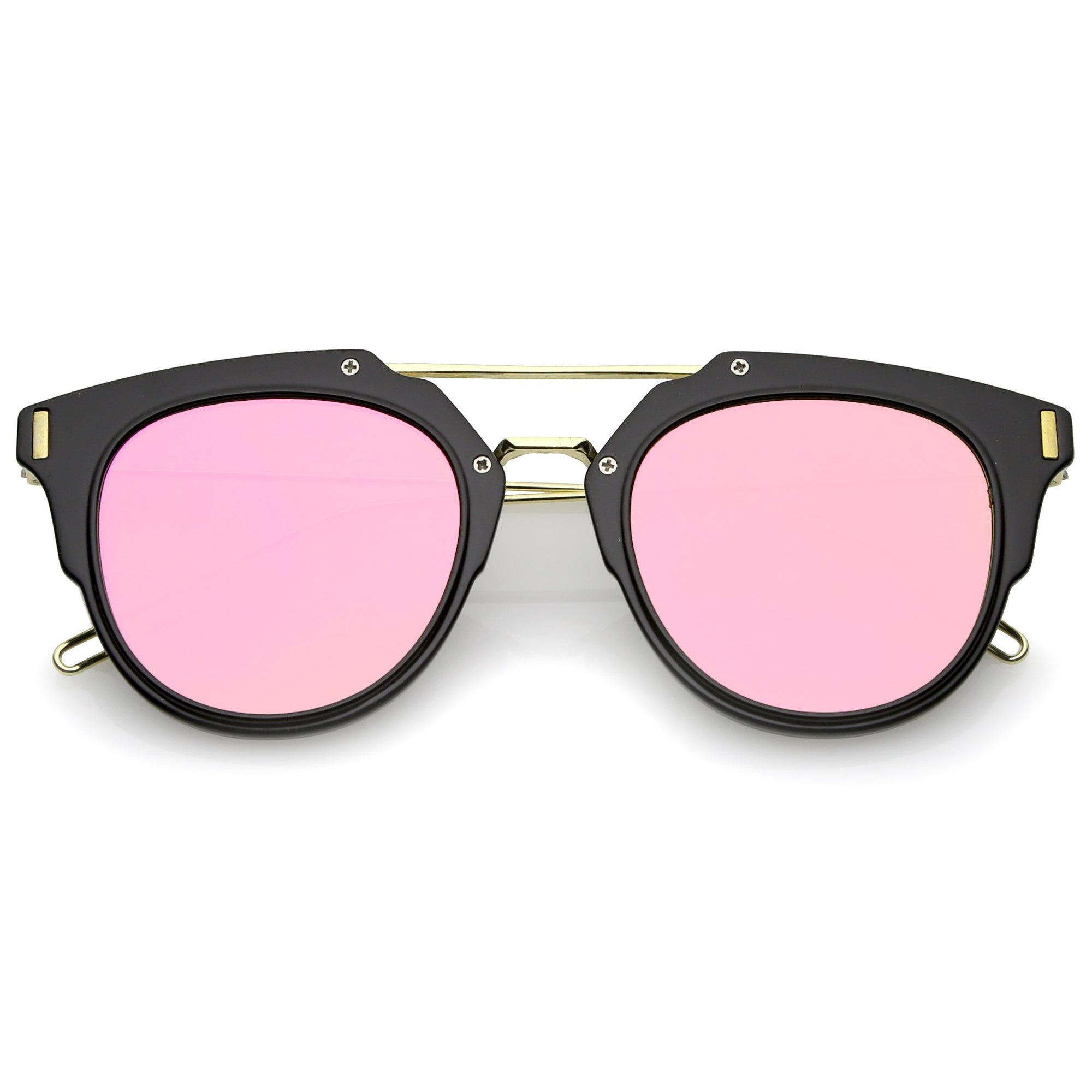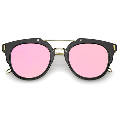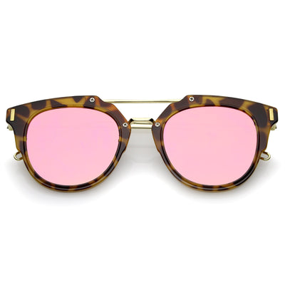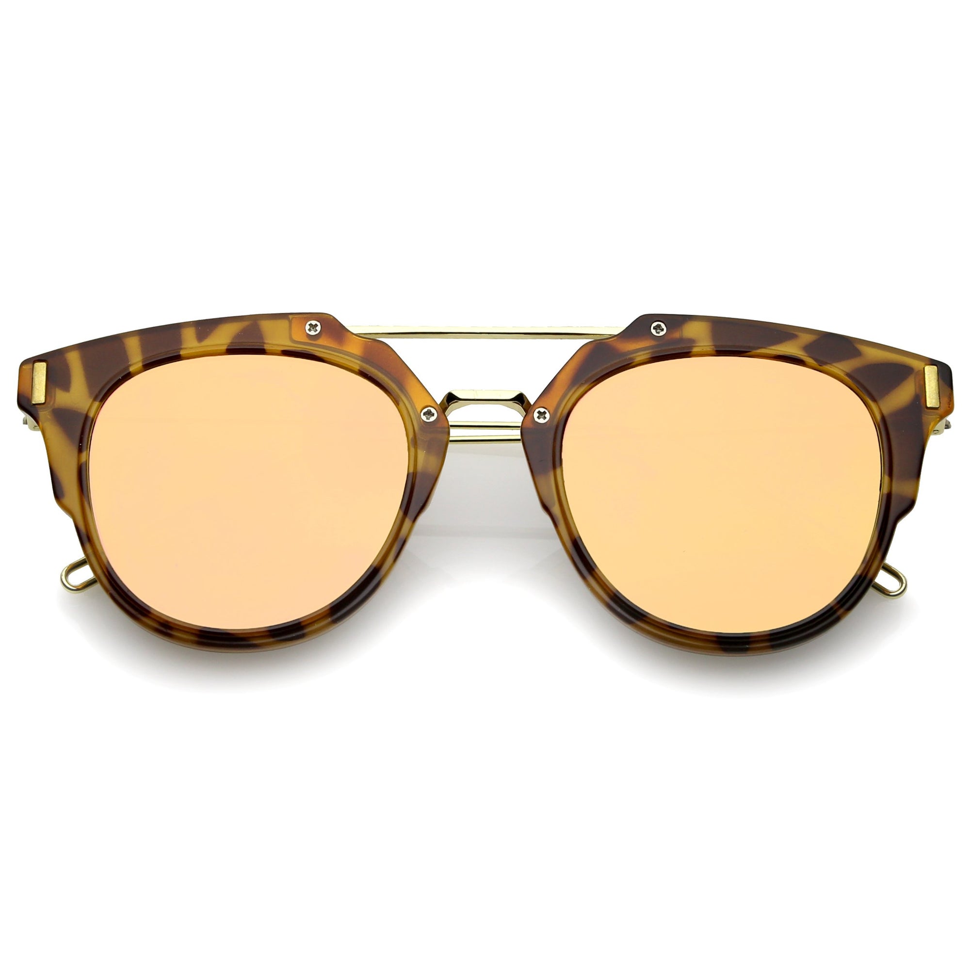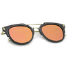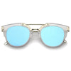 Part of our mirrored-coated flat lens pantos collection, these inner-rimmed deconstructed pantos shaped sunglasses are engineered with a feather-light construction frame. Modern features also include ultra slim wired hook temples, double-bridged brow, and a flat lens for a stylish flush look. Made from a metal wire based frame, English style nose pieces and UV400 protected polycarbonate mirrored lens.