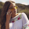Stylish classic color lens aviator made popular by Bradley Cooper in the movie Hangover. Available in red, pink orange and purple lenses. Made with a metal based frame, classic metal hinges and color tinted polycarbonate UV protected lenses.