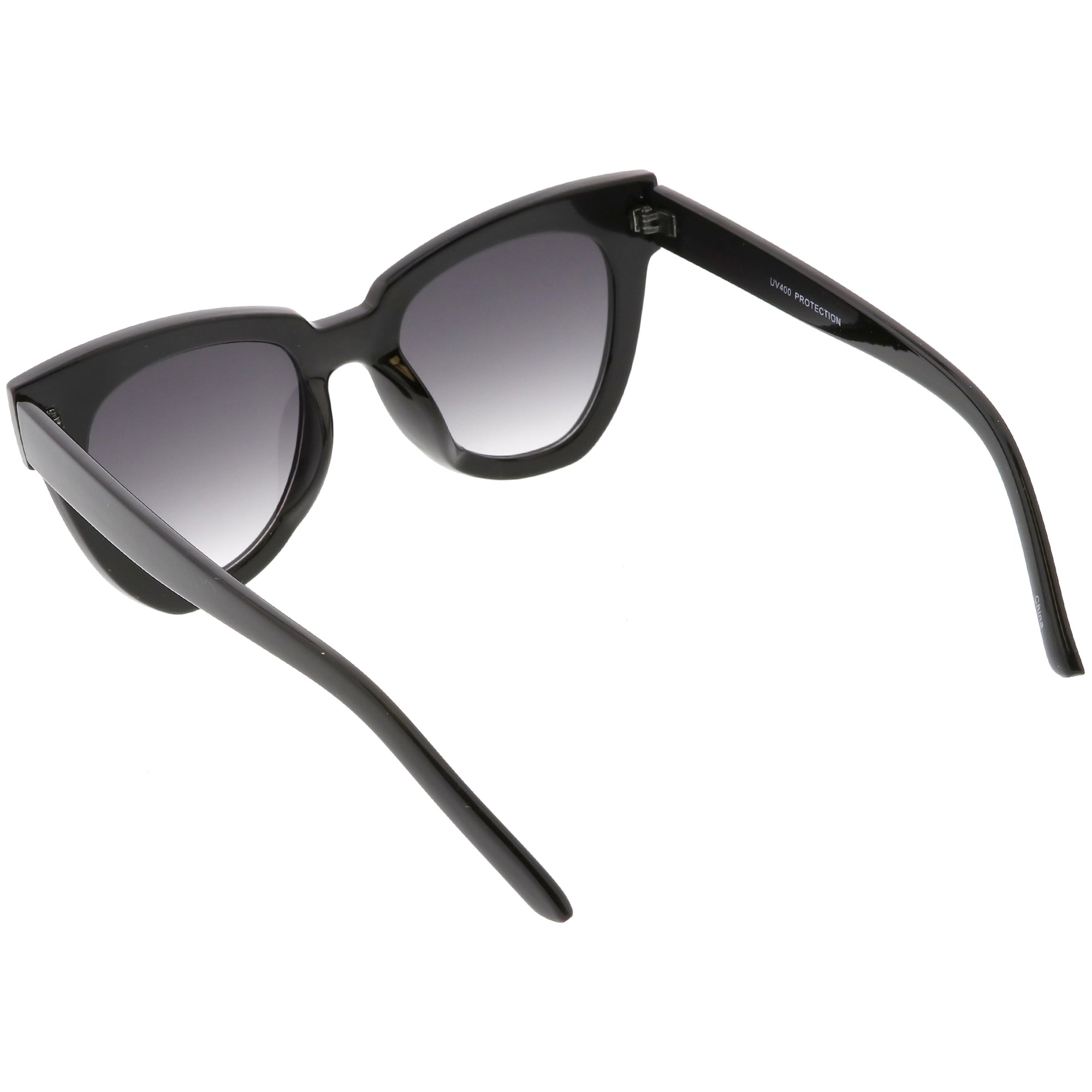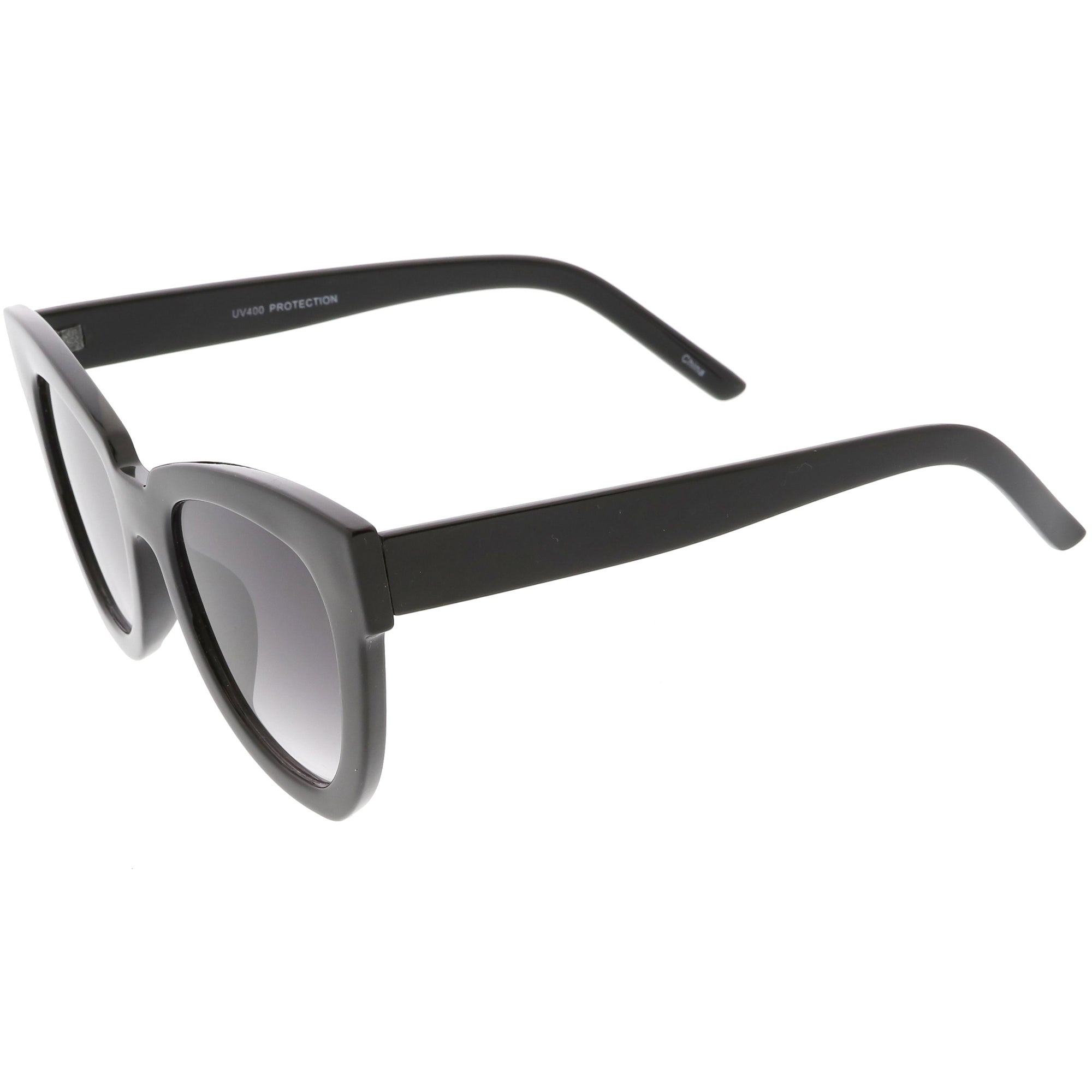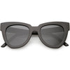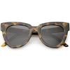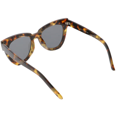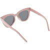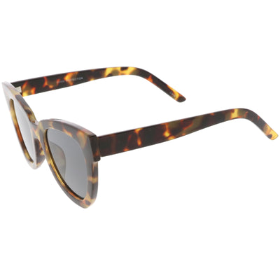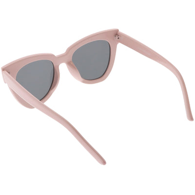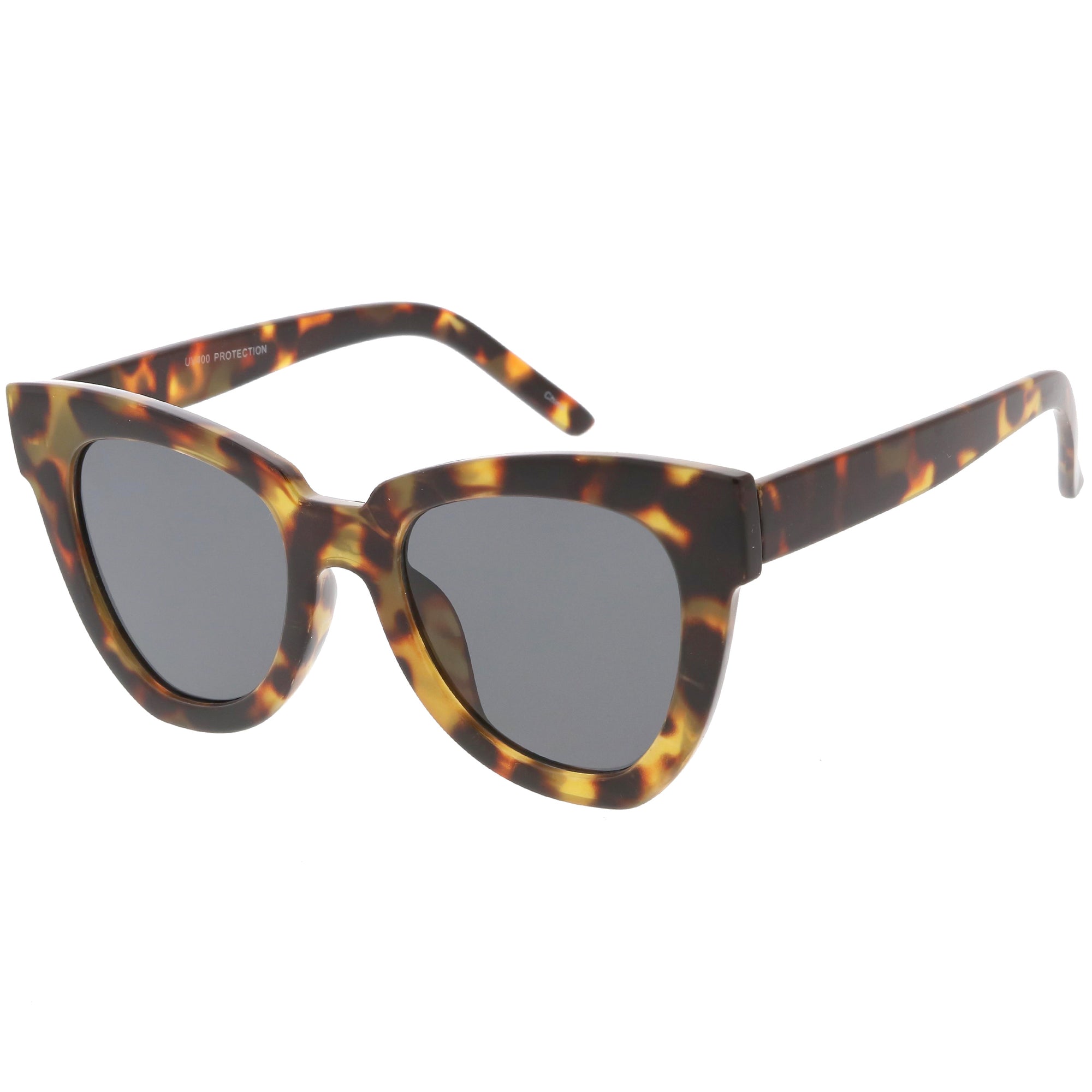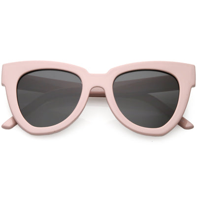 An modern update on a classic design, these cat eye sunglasses are exquisitely designed with a thicker oversize frame that gives it an ultra glamorous feel. Neutral colored flat lenses make them easy to wear for everyday, while high sitting arms add to it's darling appeal. These cat eye sunglasses are perfect for a lunch date, summer getaways, and everywhere in between. Made with a plastic based frame, reinforced metal hinges, and 100% UV protected lenses.
