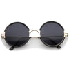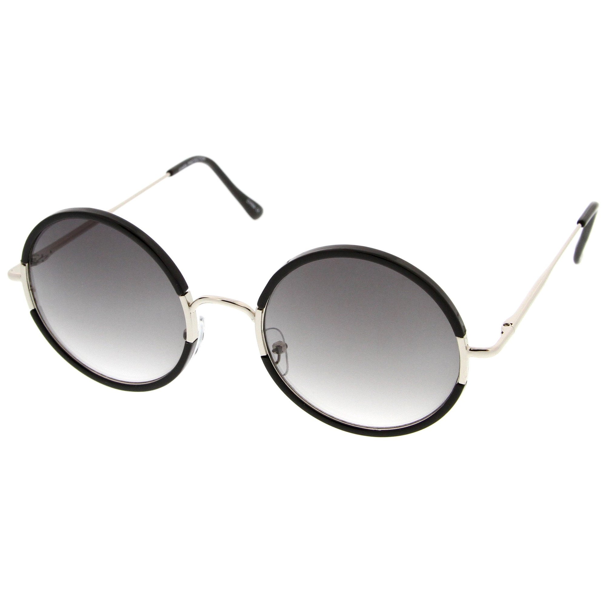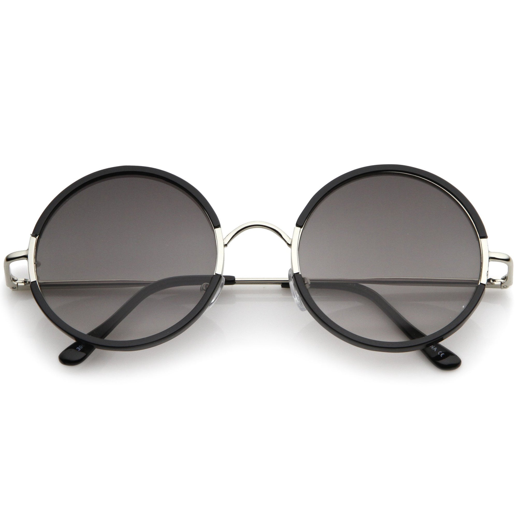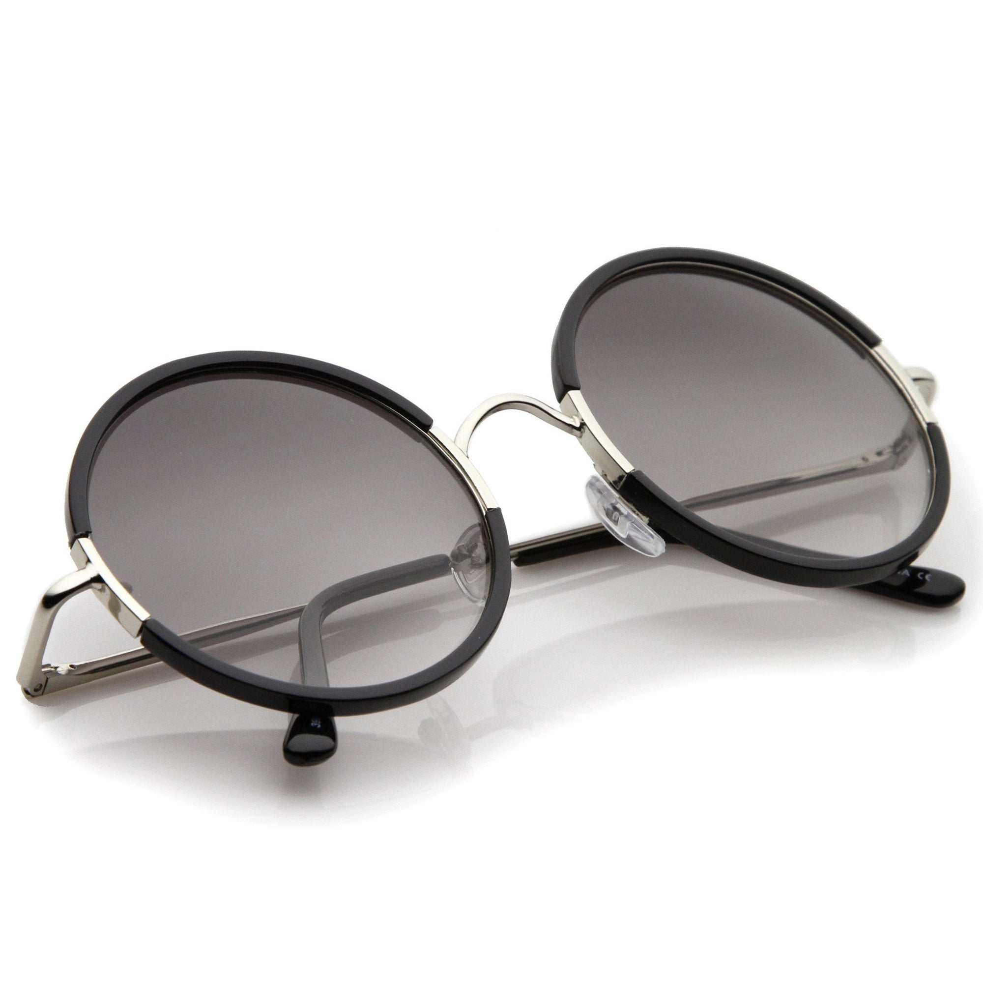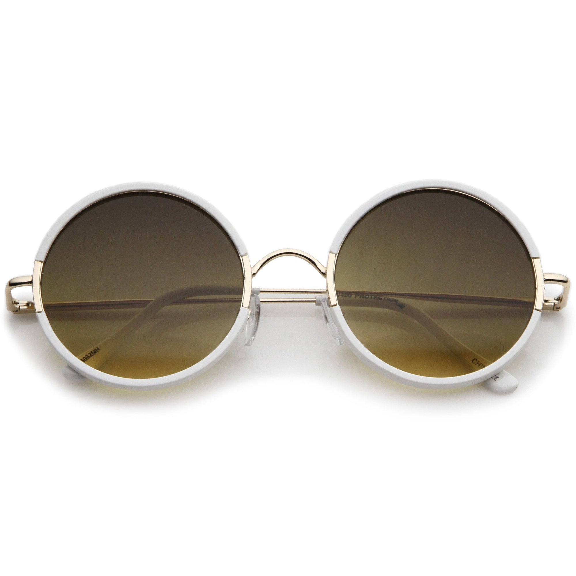 Add a hint of glamour to your look with these retro-inspired sunglasses exquisitely designed with a sleek round frame. An elegant metal nose bridge and slim metal temples accent these sunglasses for a luxurious touch. Versatile enough to wear with any outfit, these round sunglasses can be worn from season to season. Made with a plastic and metal based frame, English style nose pieces, metal hinges, and polycarbonate UV400 lenses.