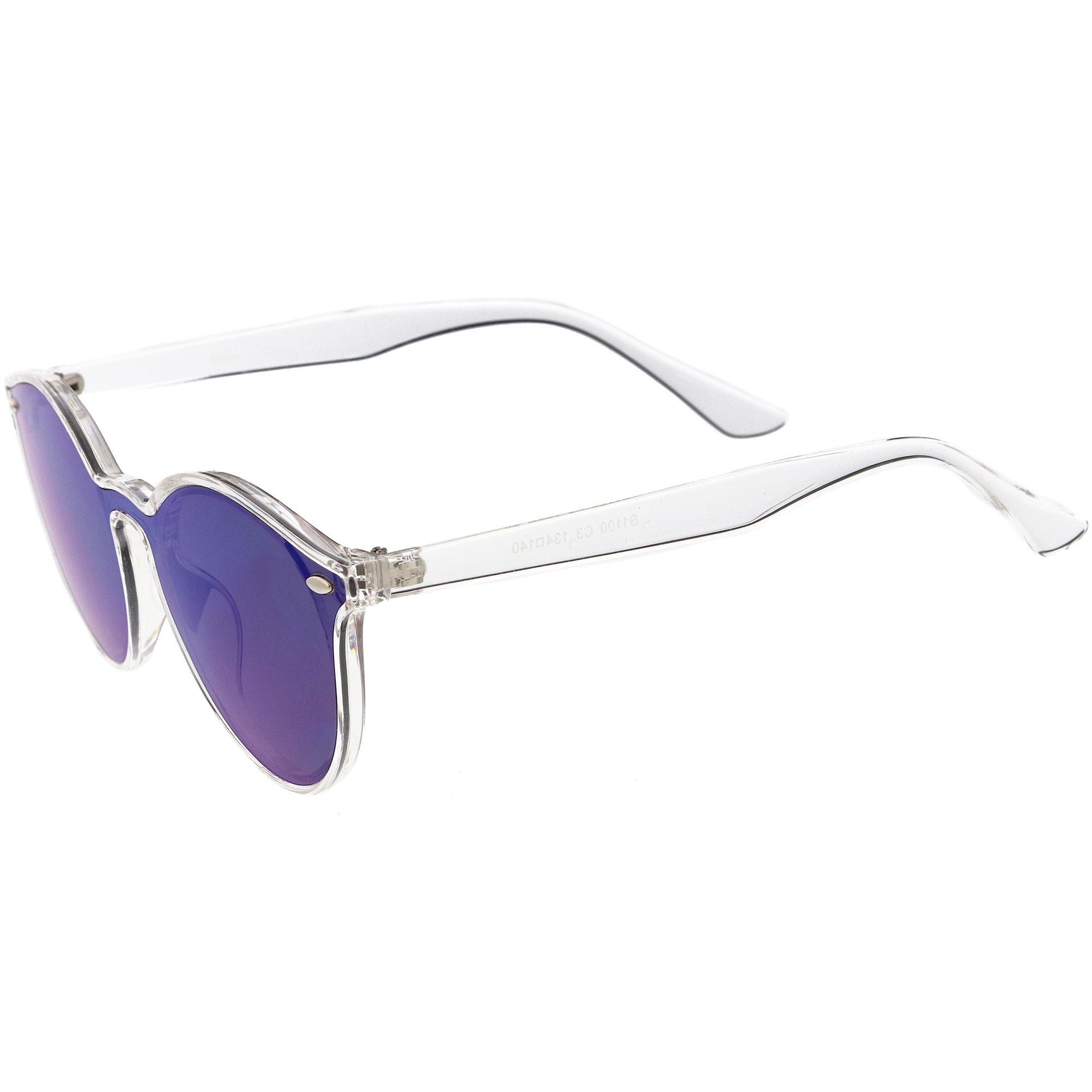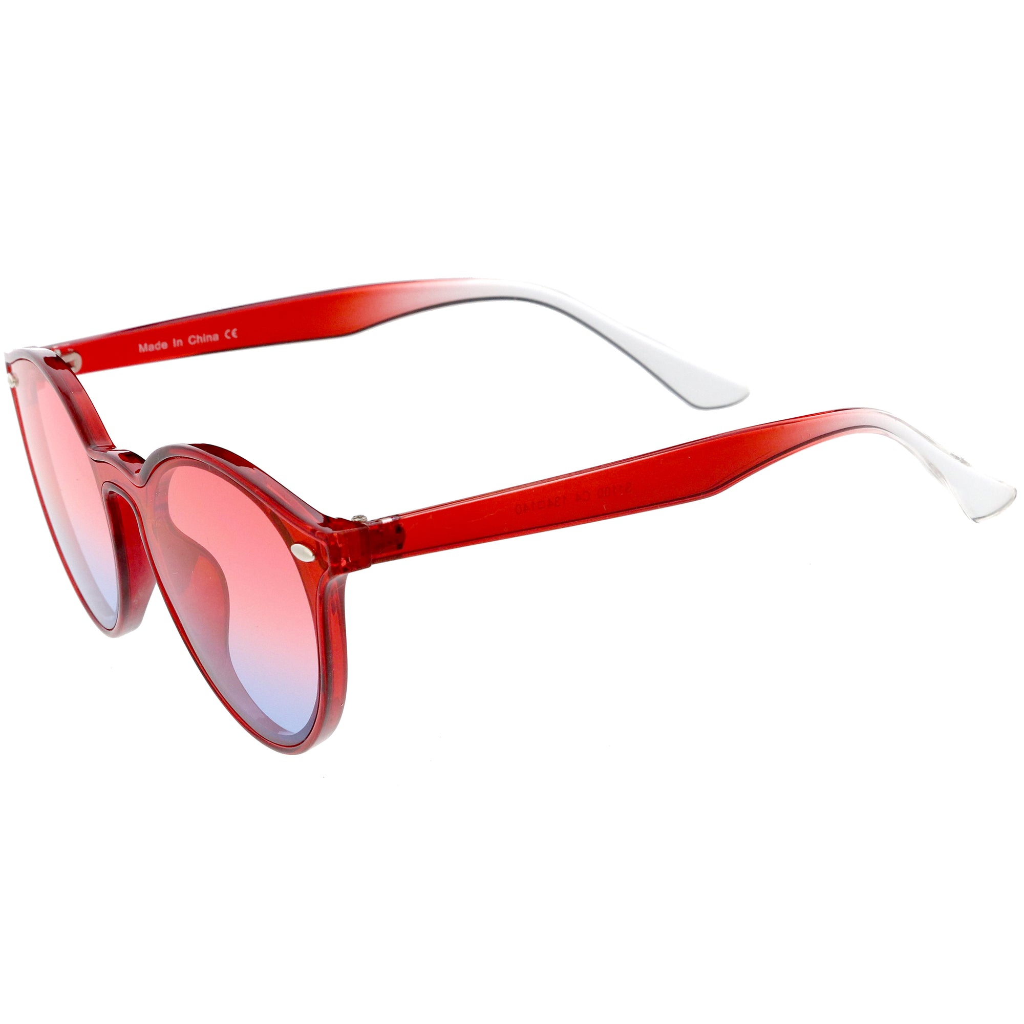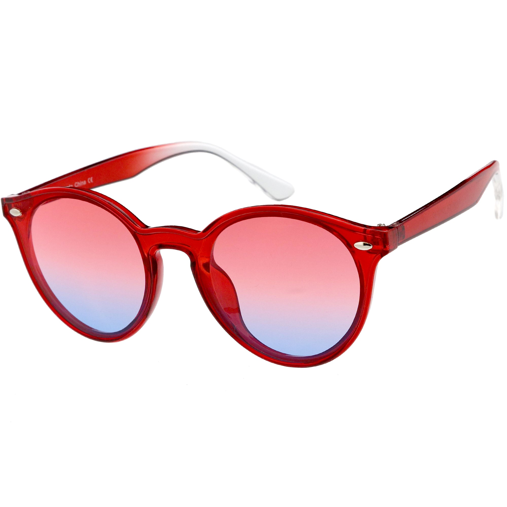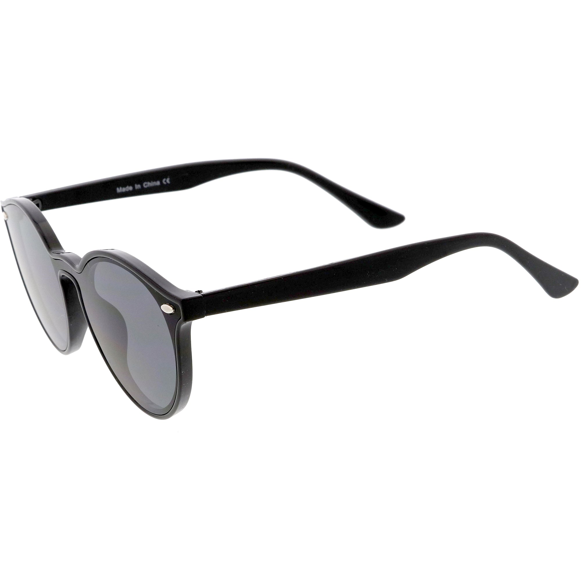 • Designed with a classic frame shape, these round sunglasses feature a subtle horn rimmed design and high sitting arms. A flush mono lens in mirrored, color tinted, and neutral hues adds to this style's sleek look, while metal rivet accents adorn the front frame giving it a sophisticated finish. Complete with a classic keyhole nose bridge, these horn rimmed round sunglasses are a must-have accessory. Made with a plastic based frame, reinforced metal hinges, and 100% UV protected lenses.