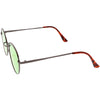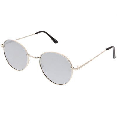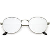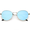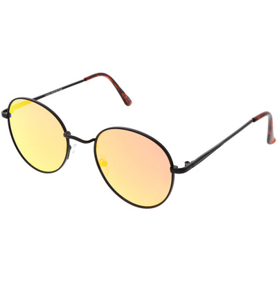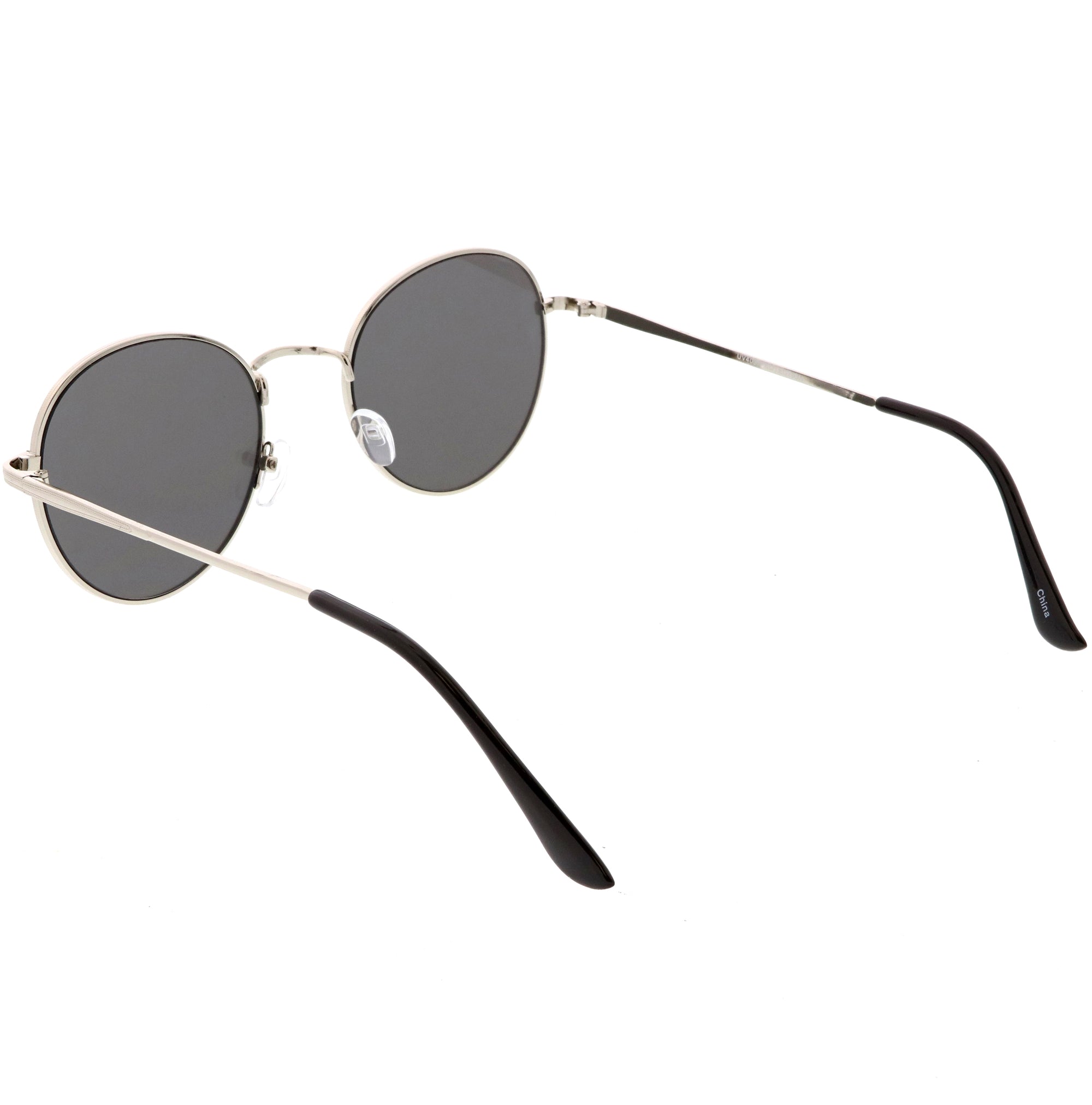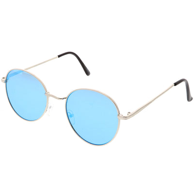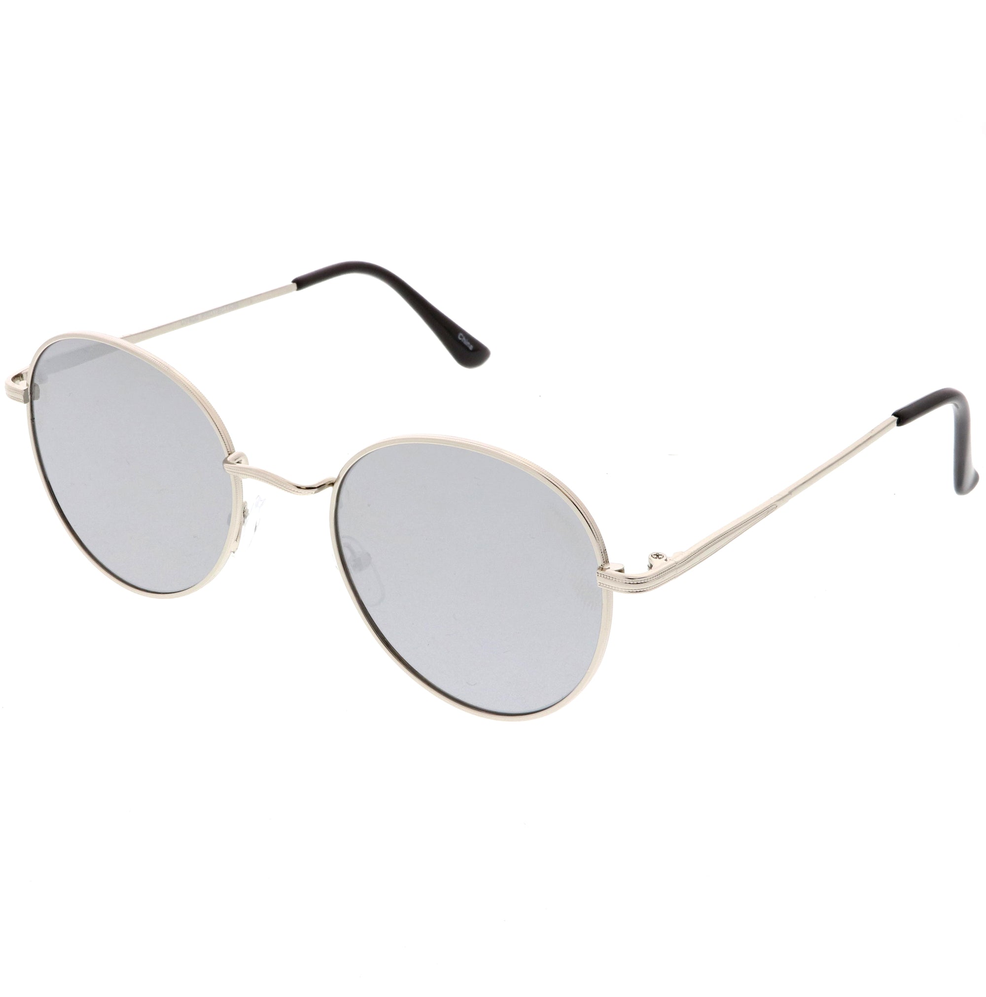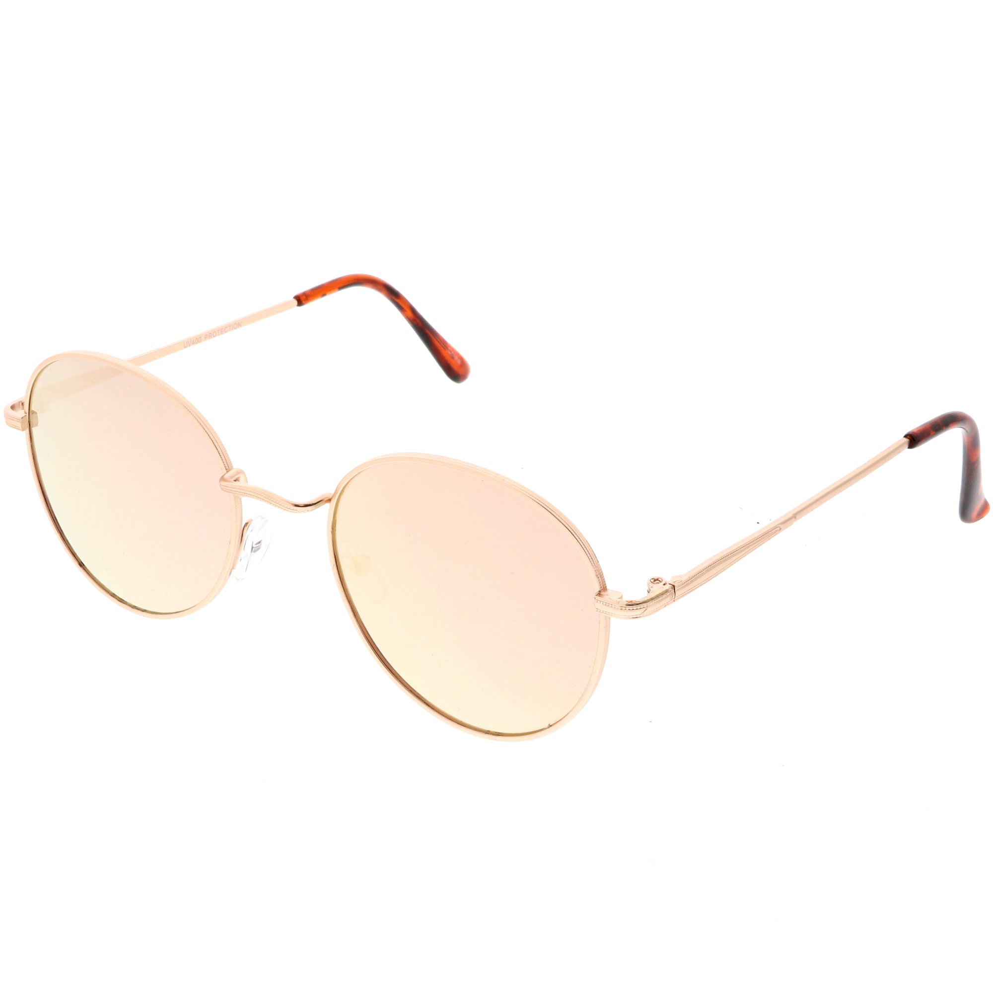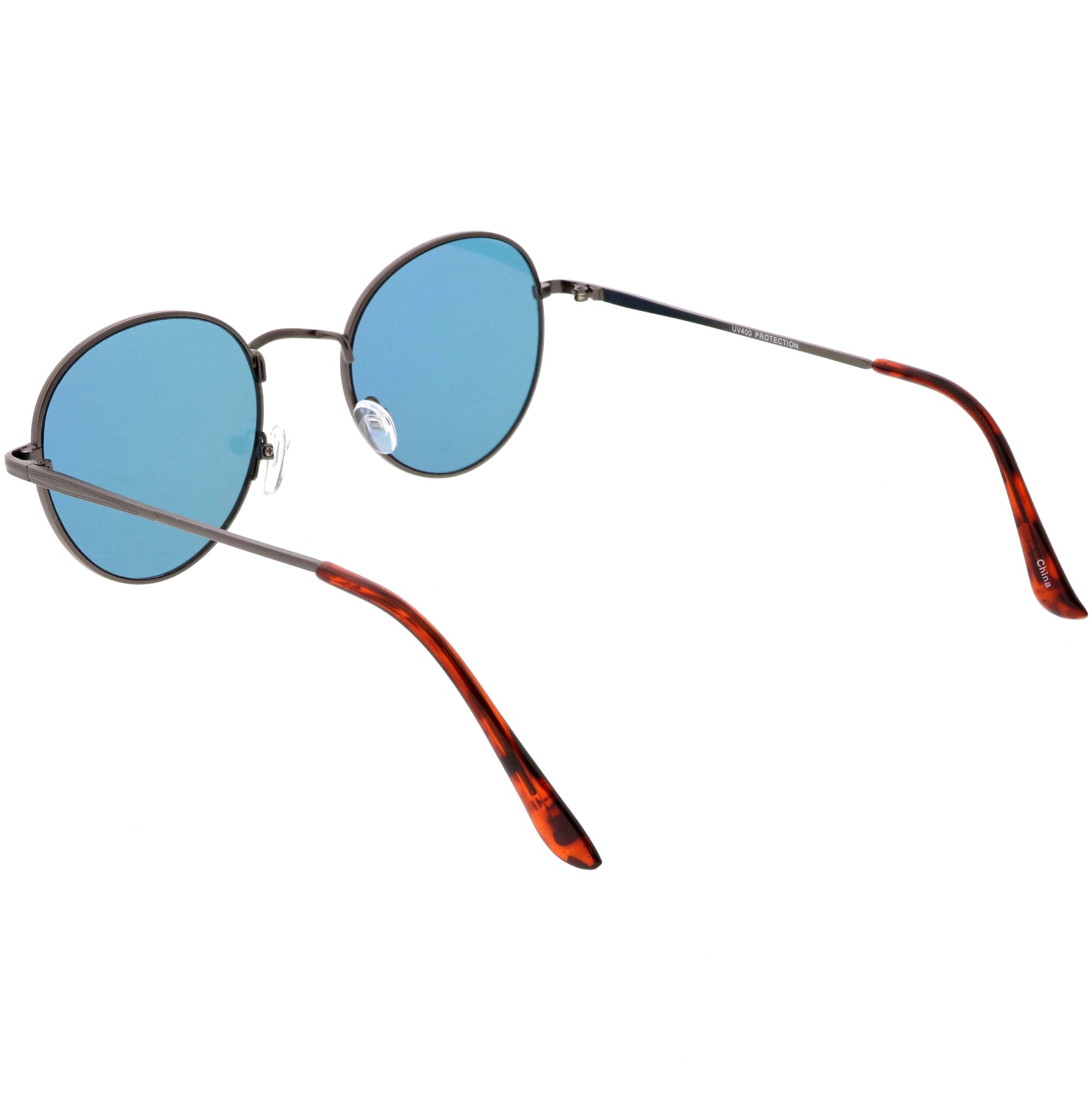 This classic style is perfect to pair with everyday wear. The round color mirrored flat lenses allow you to add a touch of color to your accessory closet. The slim temples and engraved metal detail gives this style a sleek look. Finished with a metal based frame, adjustable English style nose pieces, metal hinges, and 100% UV protected lenses.