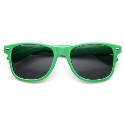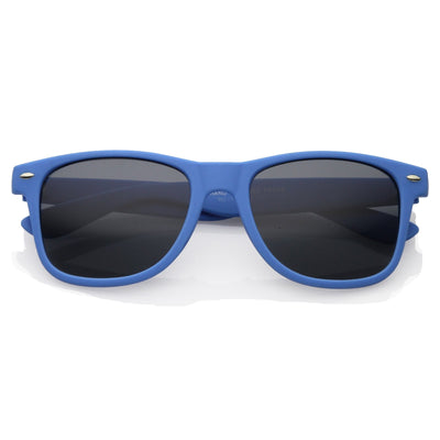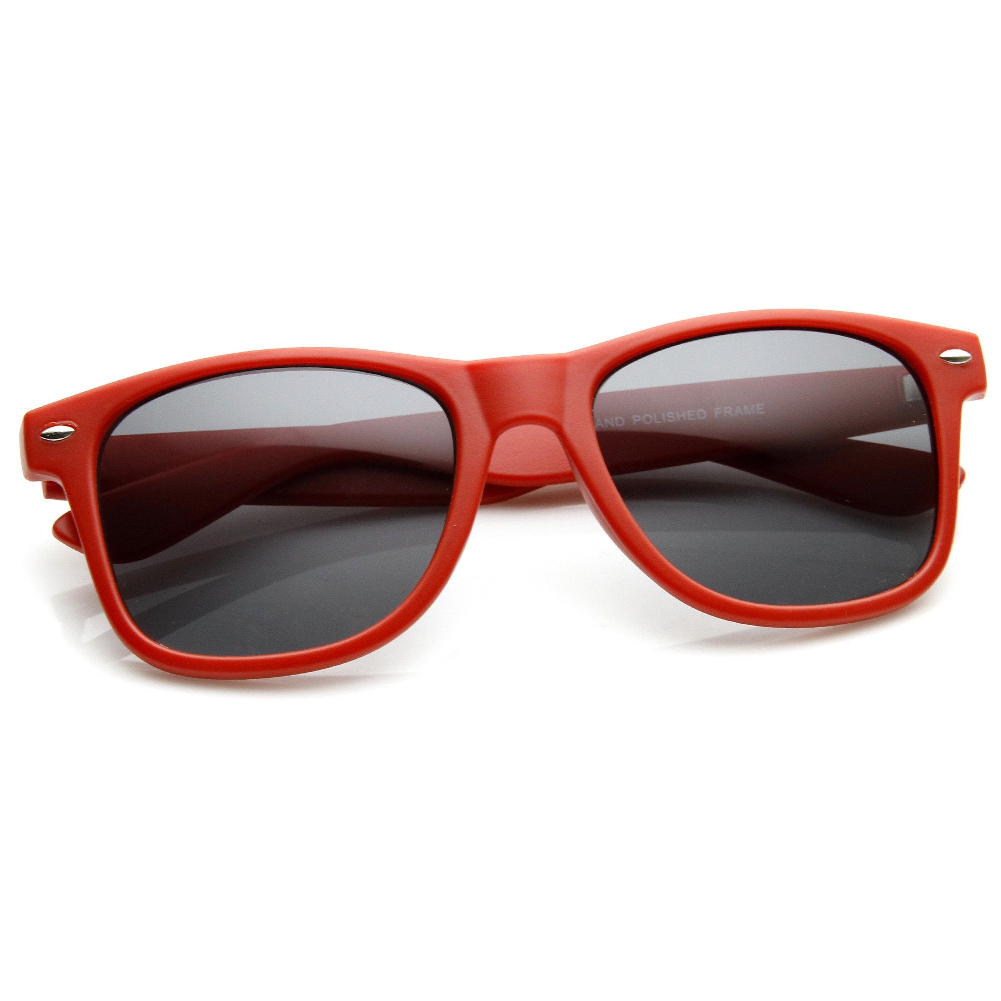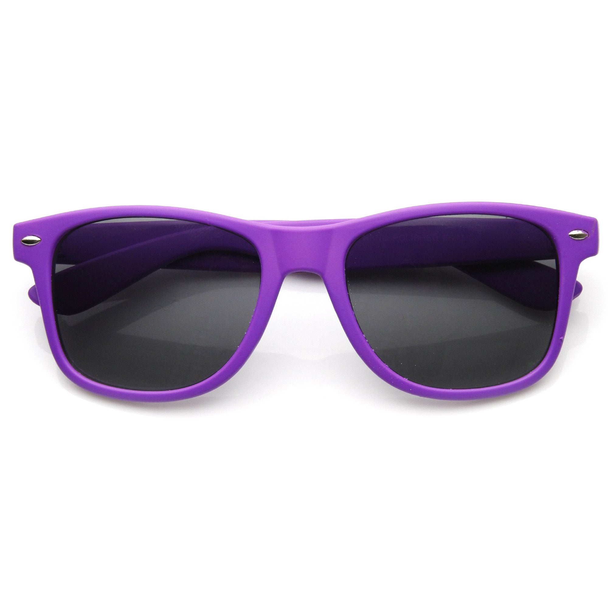 • Colorful classic horned rim frame made with a soft rubbery texture that is uniquely smooth to the touch, you won't want to put them down! A must have accessory for someone looking for some fresh colorful sunglasses this sunny season. Features a plastic based frame, metal hinges, and UV400 protected lenses.