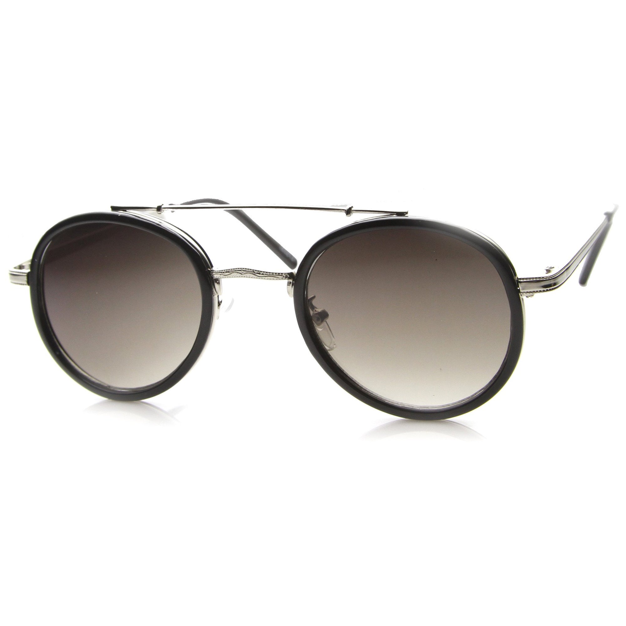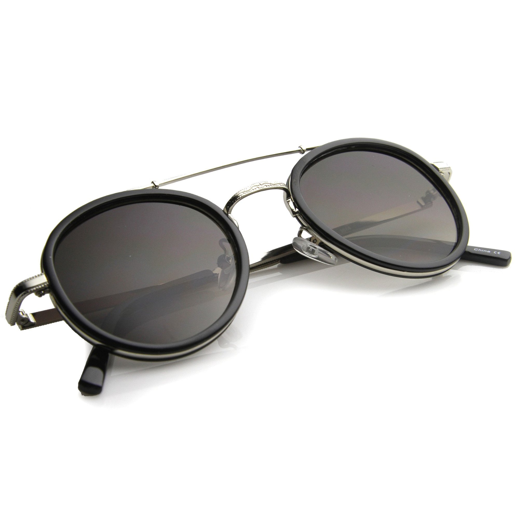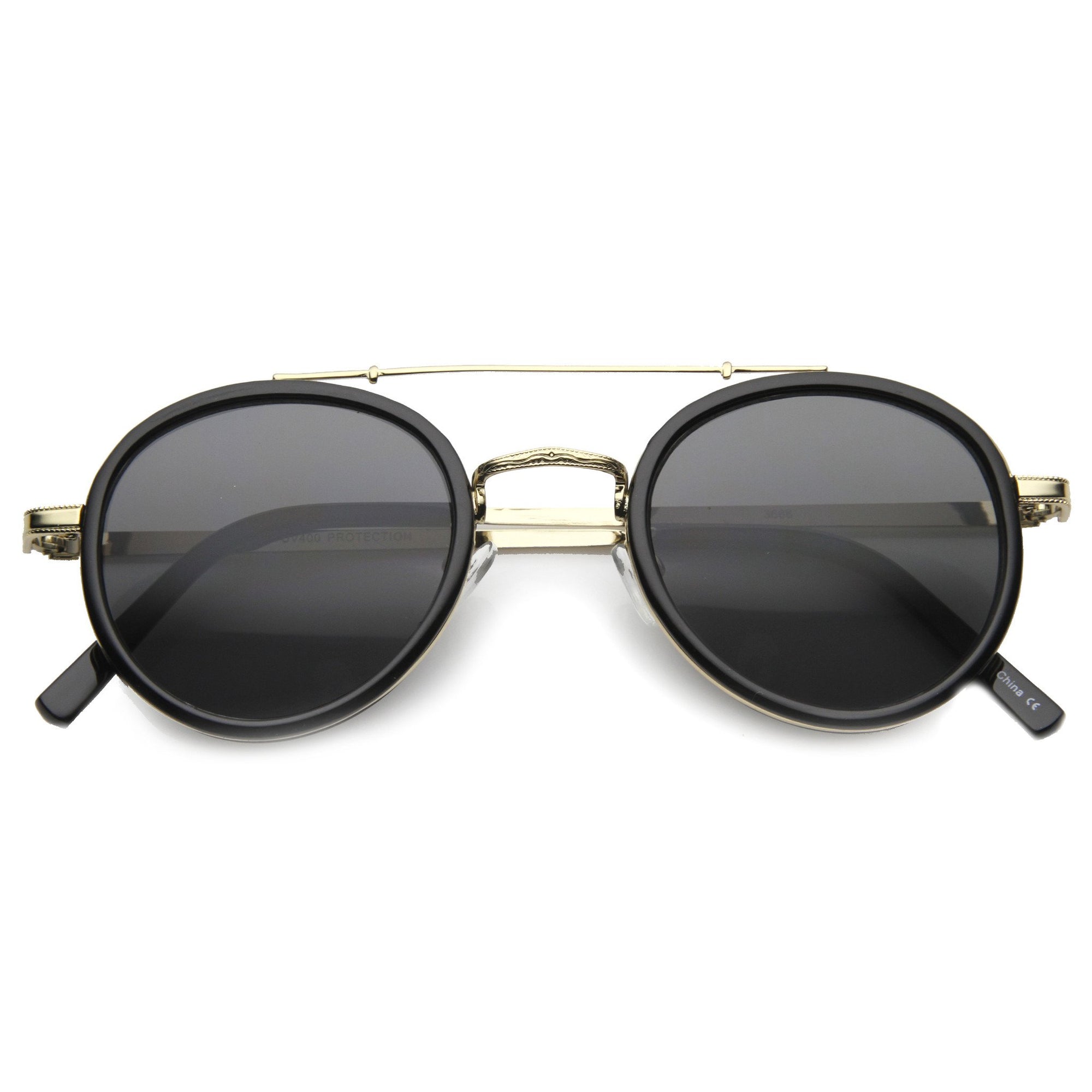 Extremely unique aviator p-3 frame that features a metal crossbar along the top of the frame and a metal nose bridge. This is a one of a kind piece that is as unique as it is stylish. Made with an acetate based frame, metal crossbar, metal bridge, metal hinges and UV protected polycarbonate lens.