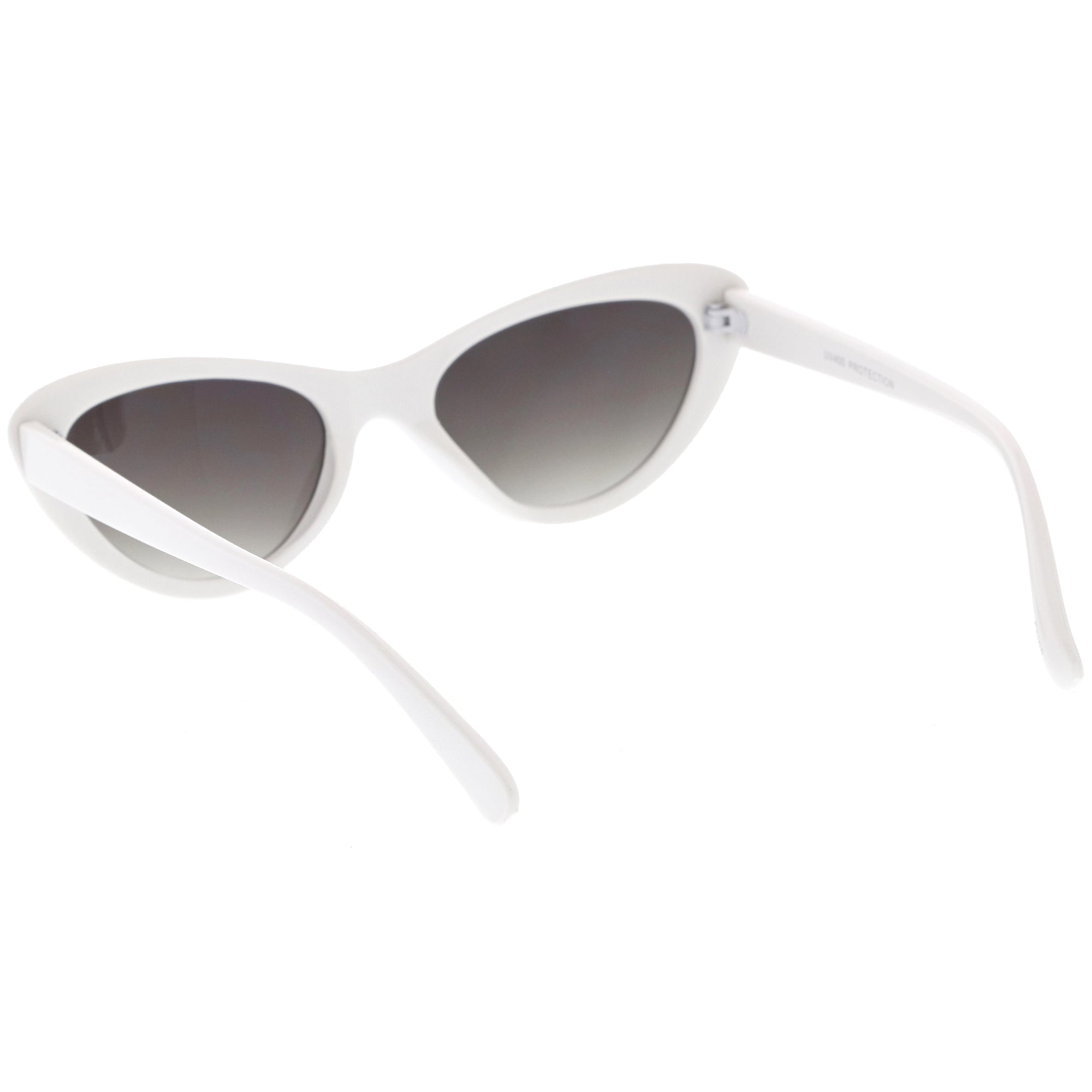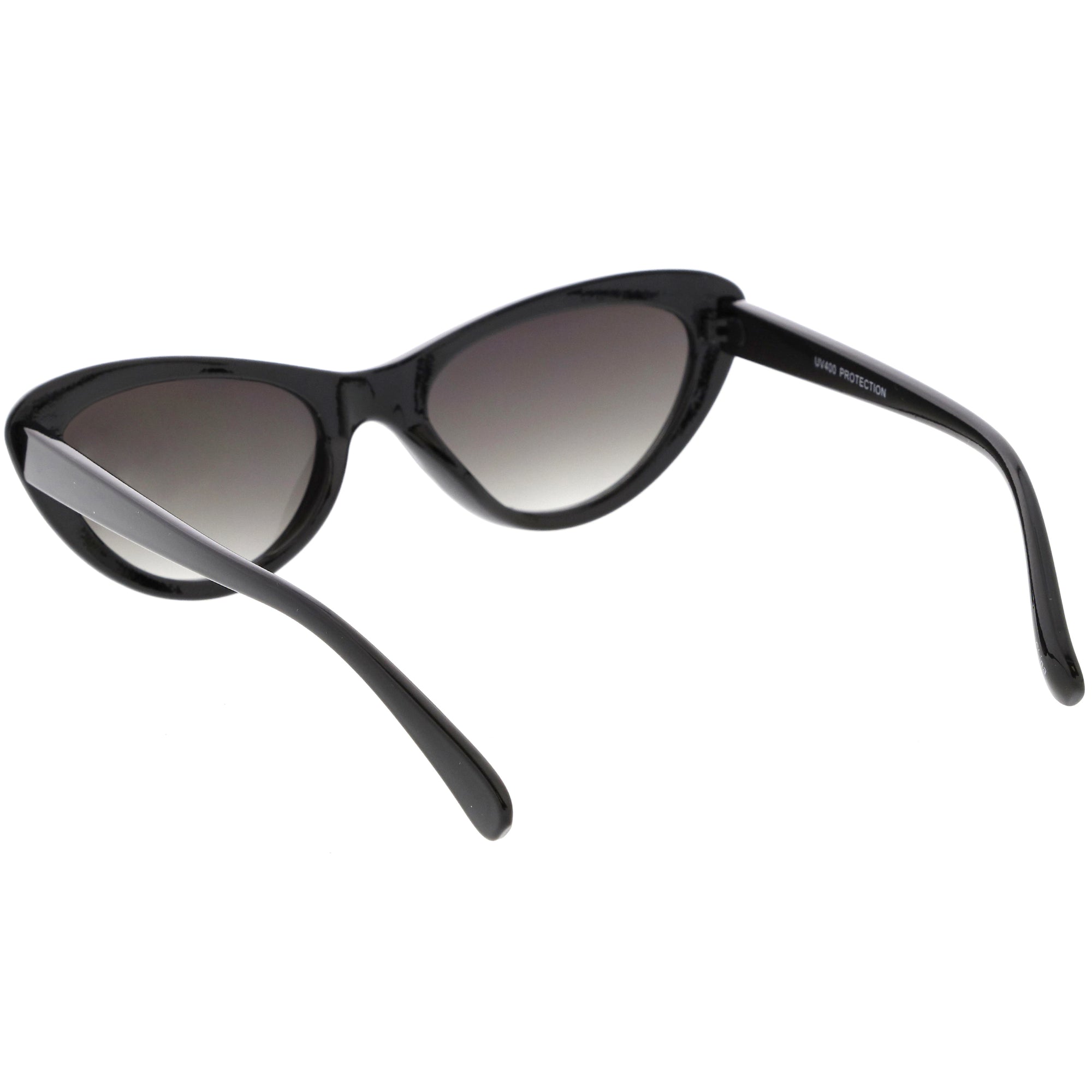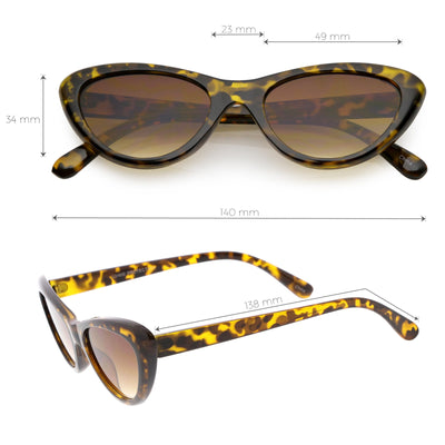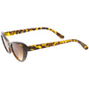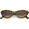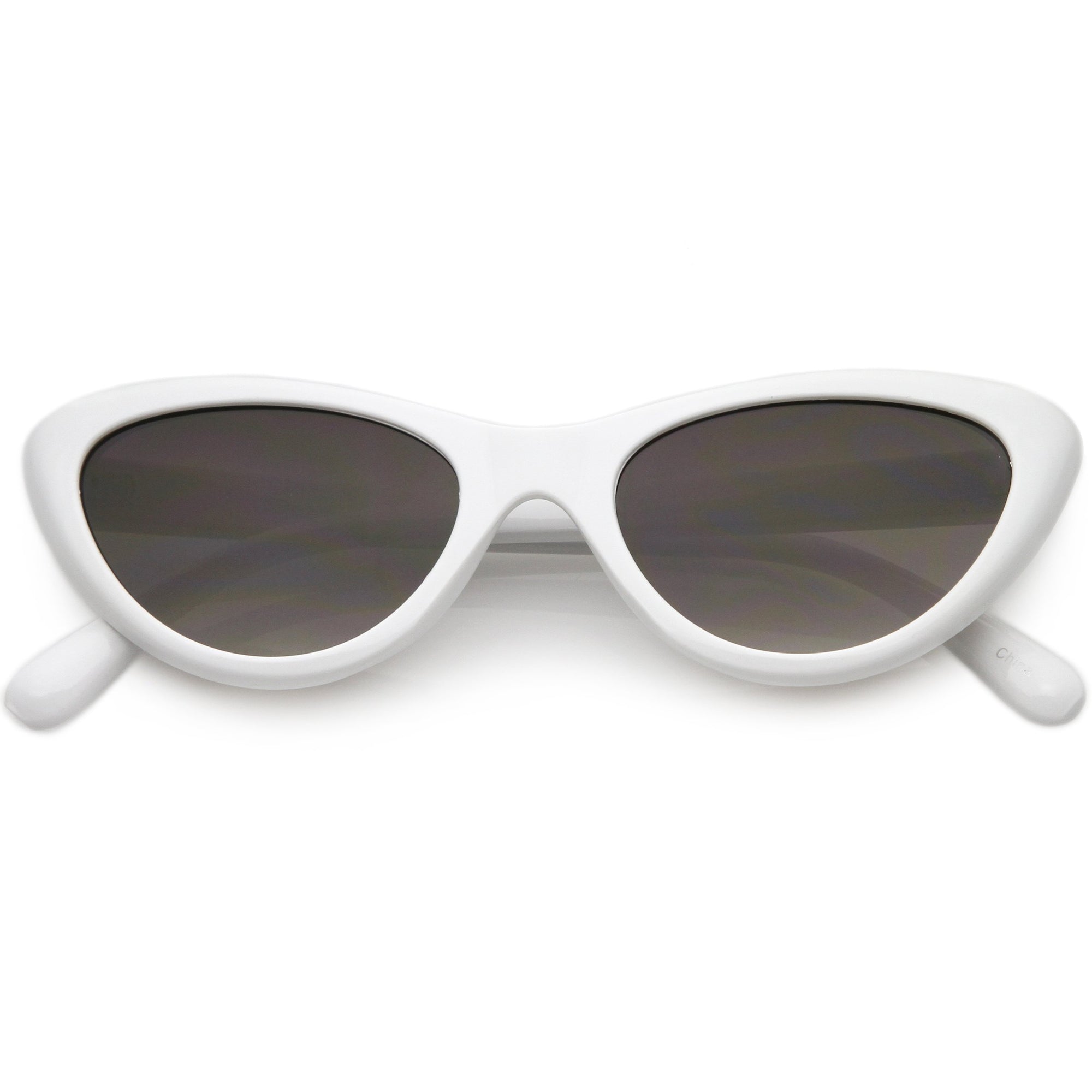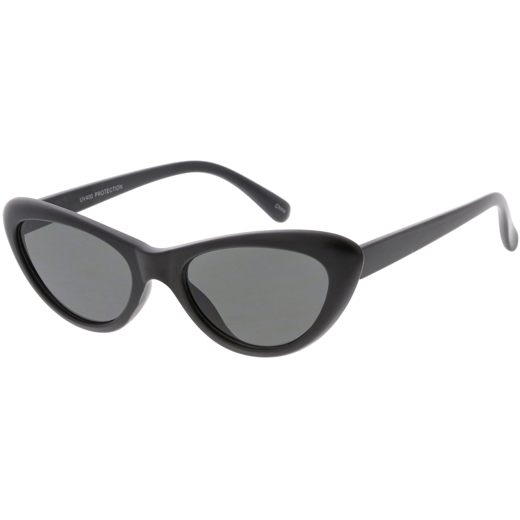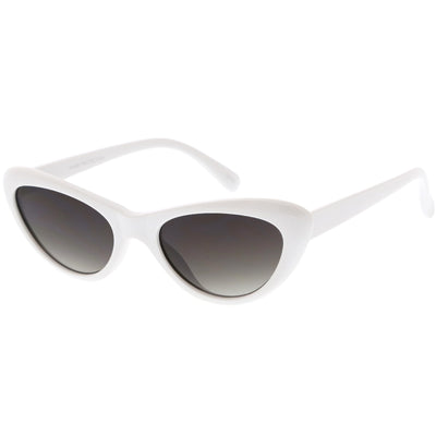 The perfect combination of retro and stylish, these small cat eye sunglasses are crafted with a rounded edge frame with high sitting arms. Neutral colored lenses finish off these cat eye sunglasses making them great for accessorizing a vintage inspired outfit. Made with a plastic based frame, reinforced metal hinges, and 100% UV protected lenses.
