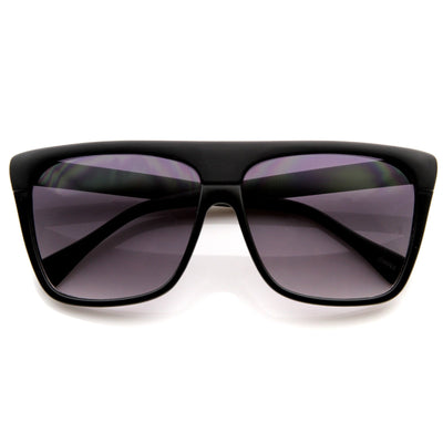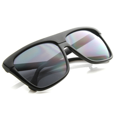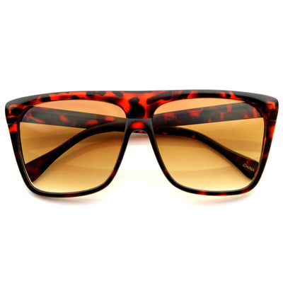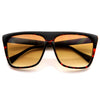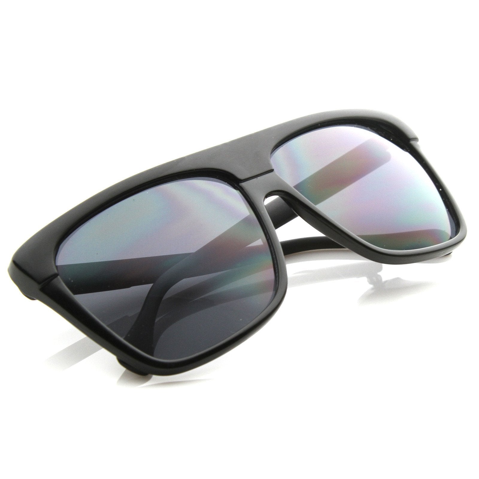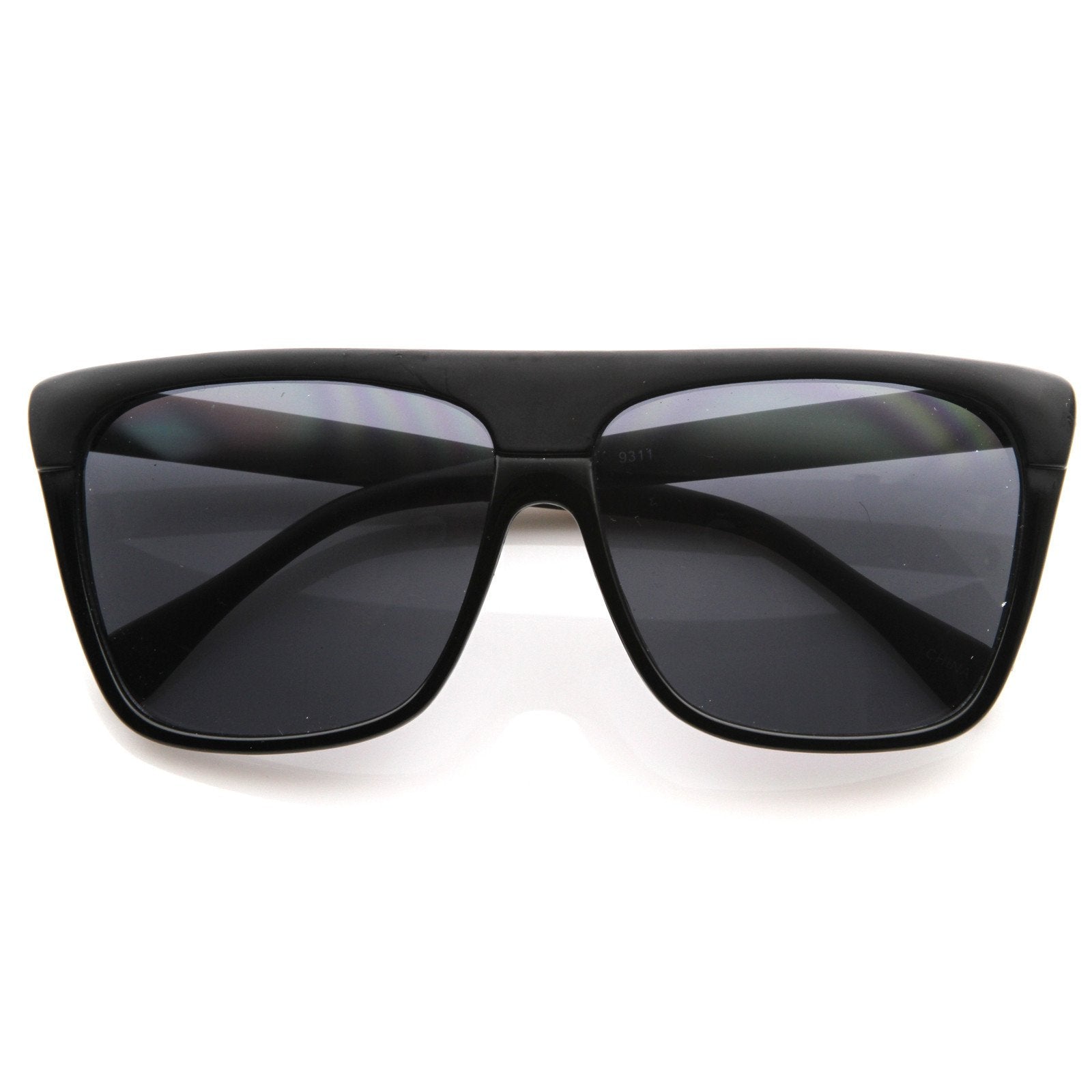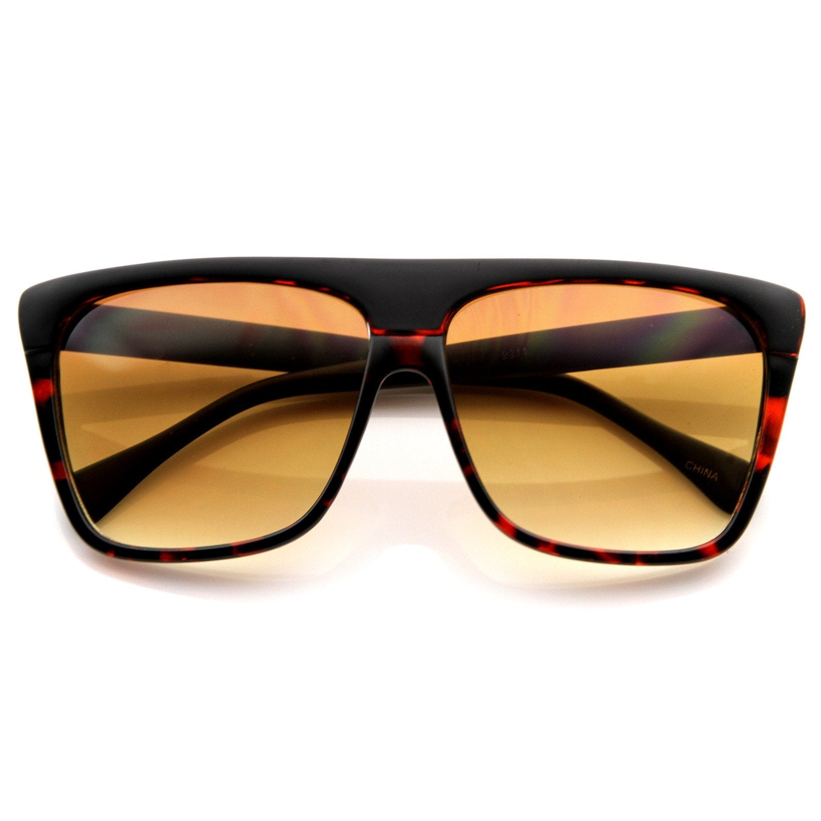 Large flat top Aviator sunglasses with a sleek modern squared-off shape. Very stylish frame that is perfect for someone looking for a large retro horned rim. Made with an acetate based frame, metal hinges and polycarbonate UV protected lenses.