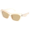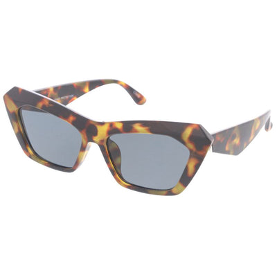The frame has a substantial and robust construction, conveying durability and a bold presence. The geometric aspects indicate that the frame features angular or straight lines, creating a modern and edgy aesthetic. The cateye influence suggests that the frame's upper edges curve upward, resembling the graceful shape of a cat's eye. This fusion of geometric and cateye styles results in a visually striking and attention-grabbing look. This captures the essence of thick frame geometric cateye sunglasses, which offer a distinctive and fashion-forward choice for individuals seeking a unique blend of modern and retro-inspired design.
