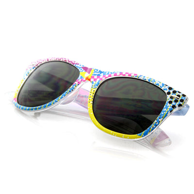 Totally Rad Awesome 80's Graffiti Print Horned Rim Sunglasses 8547