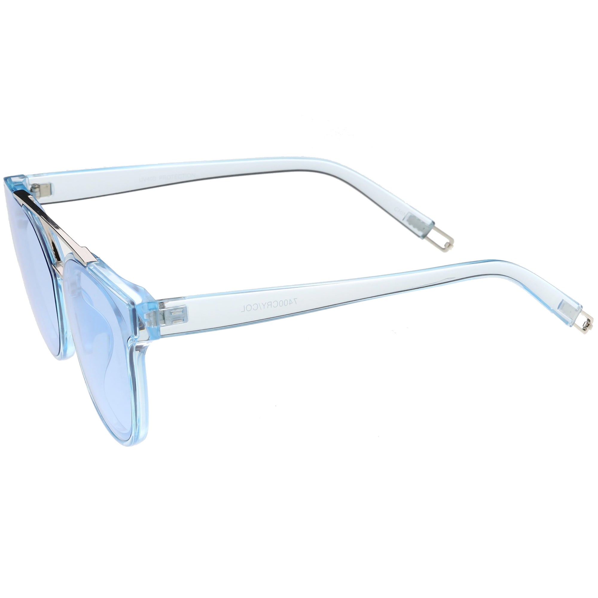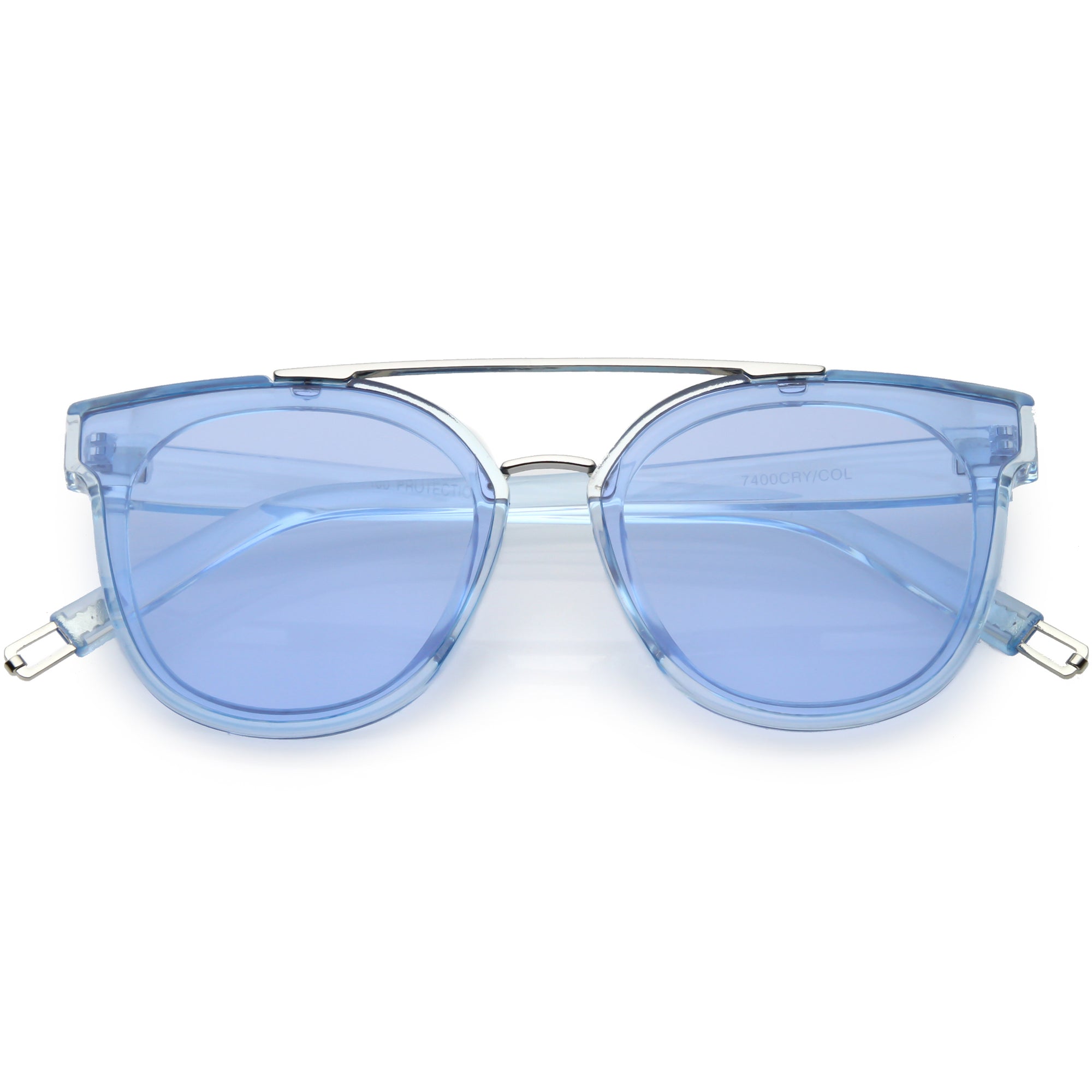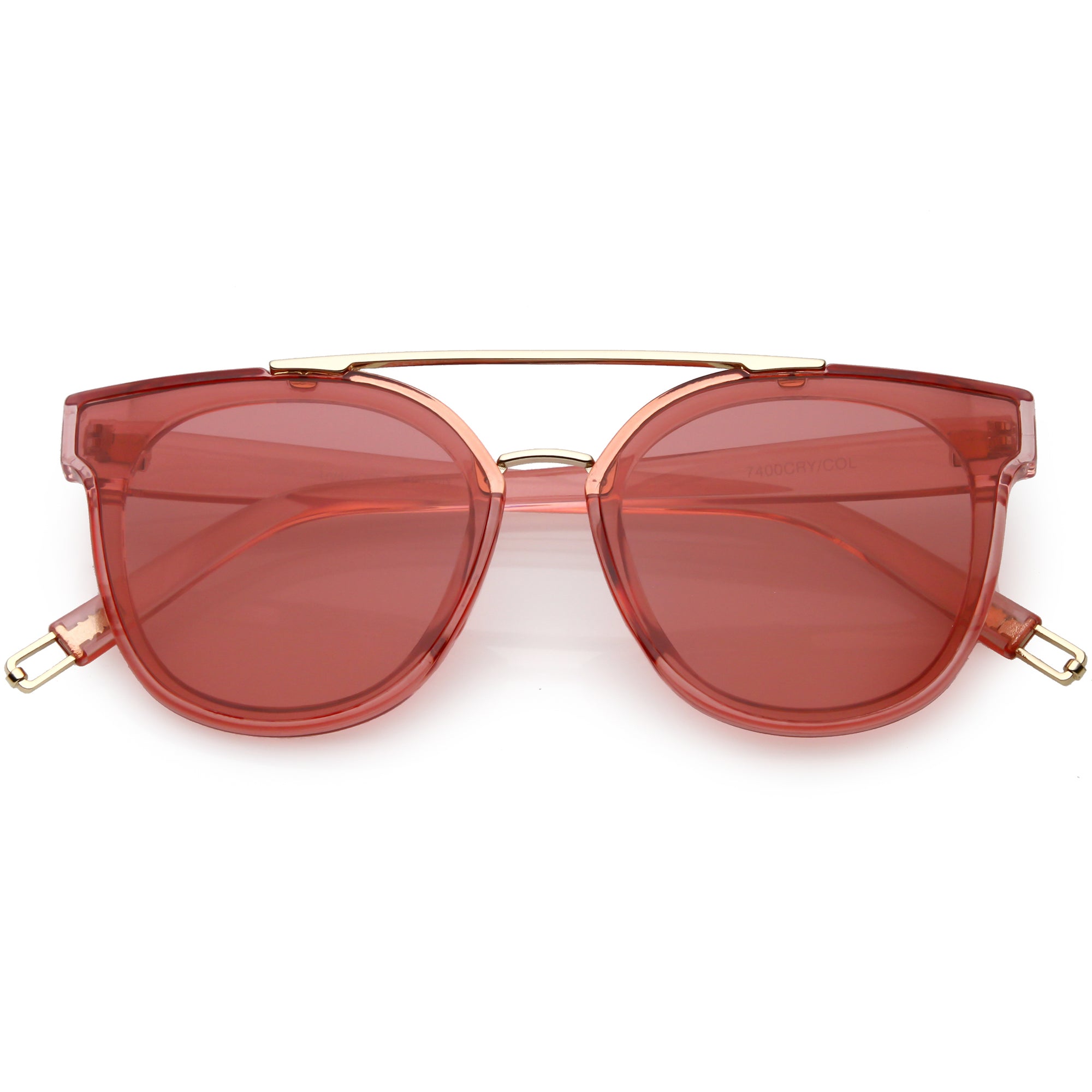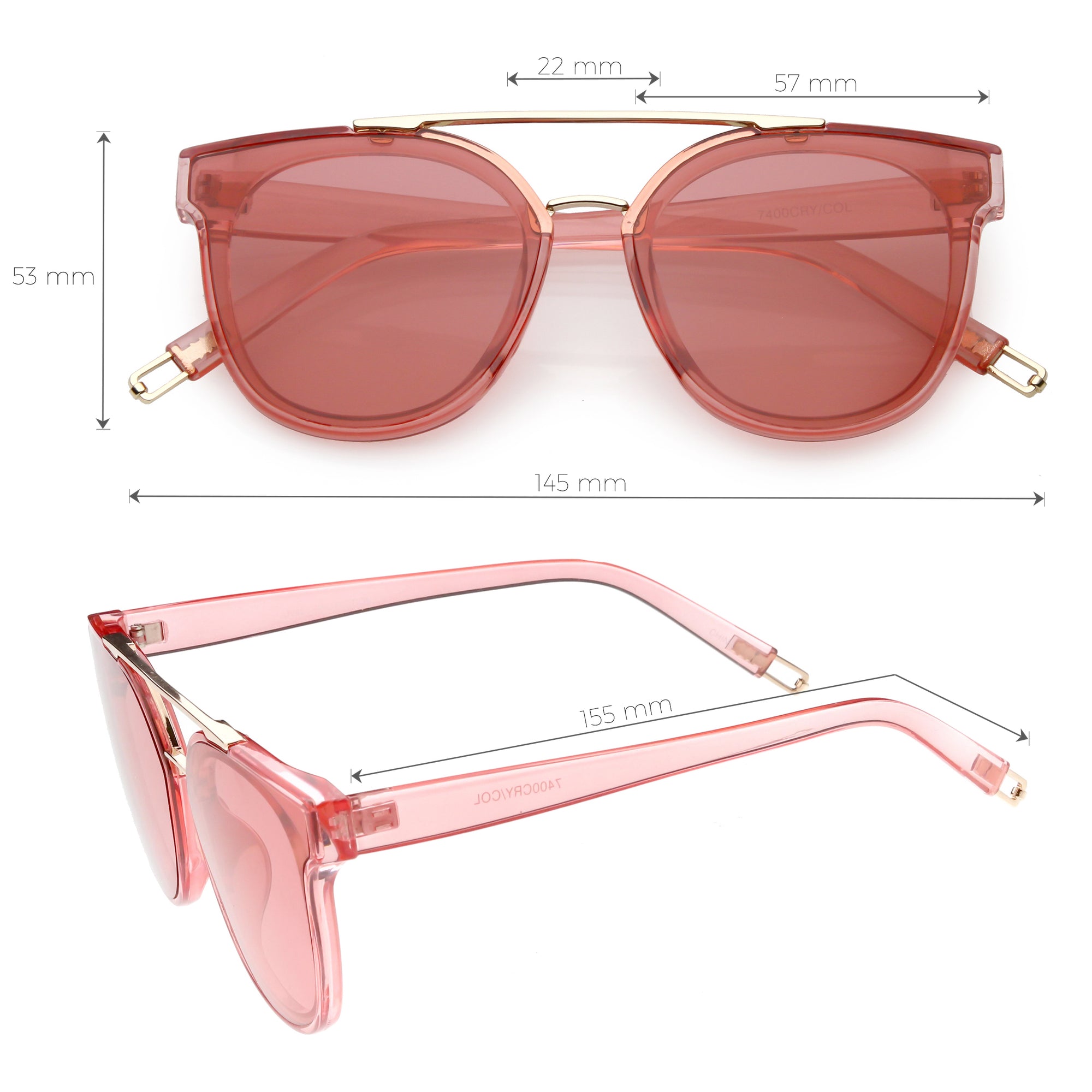 Perfect for Spring and Summer, these horn rimmed sunglasses are designed with translucent colored frames and double metal crossbars. Complete with matching color tinted square lenses and metal accents, these colorful sunglasses are a must-have for festival season. Made with a plastic based frame, reinforced metal hinges, and 100% UV protected lenses.