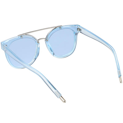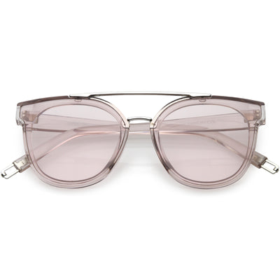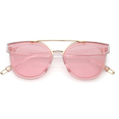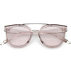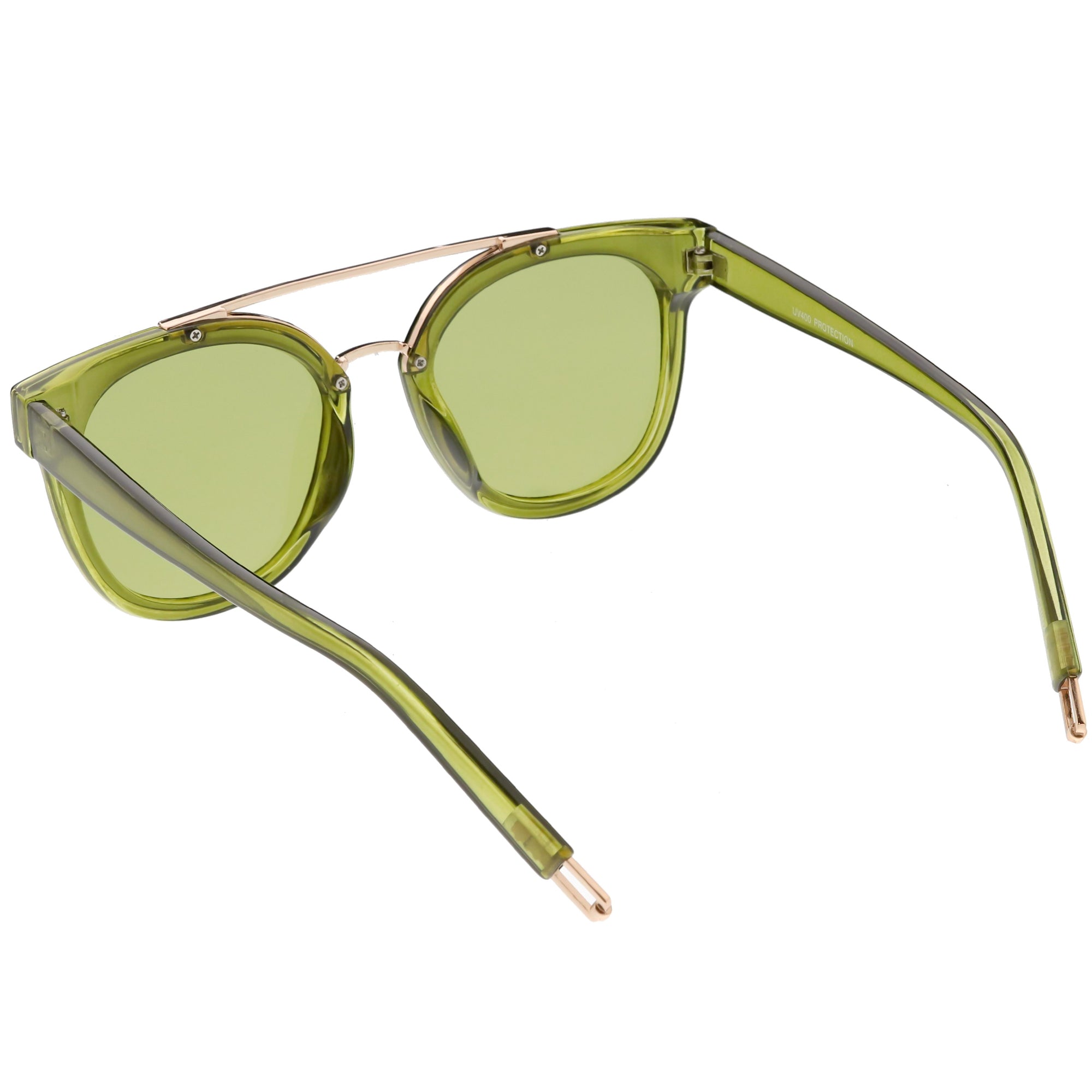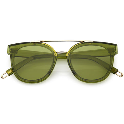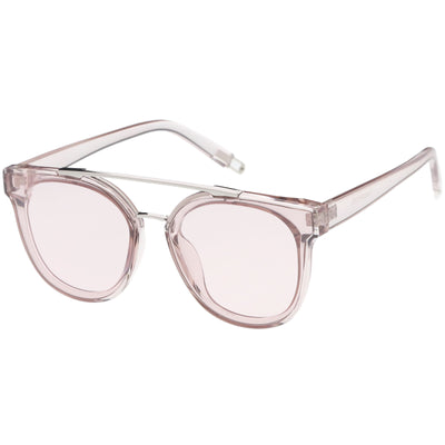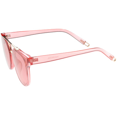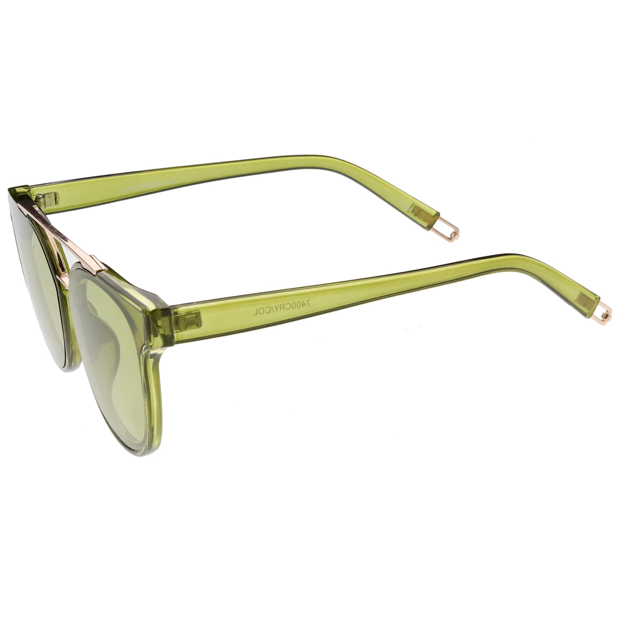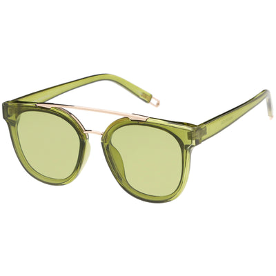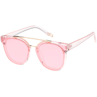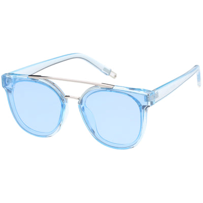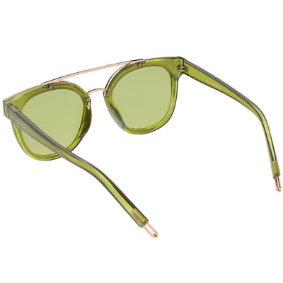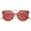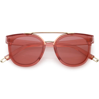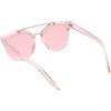 Perfect for Spring and Summer, these horn rimmed sunglasses are designed with translucent colored frames and double metal crossbars. Complete with matching color tinted square lenses and metal accents, these colorful sunglasses are a must-have for festival season. Made with a plastic based frame, reinforced metal hinges, and 100% UV protected lenses.