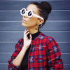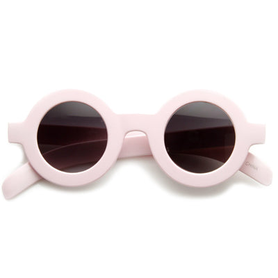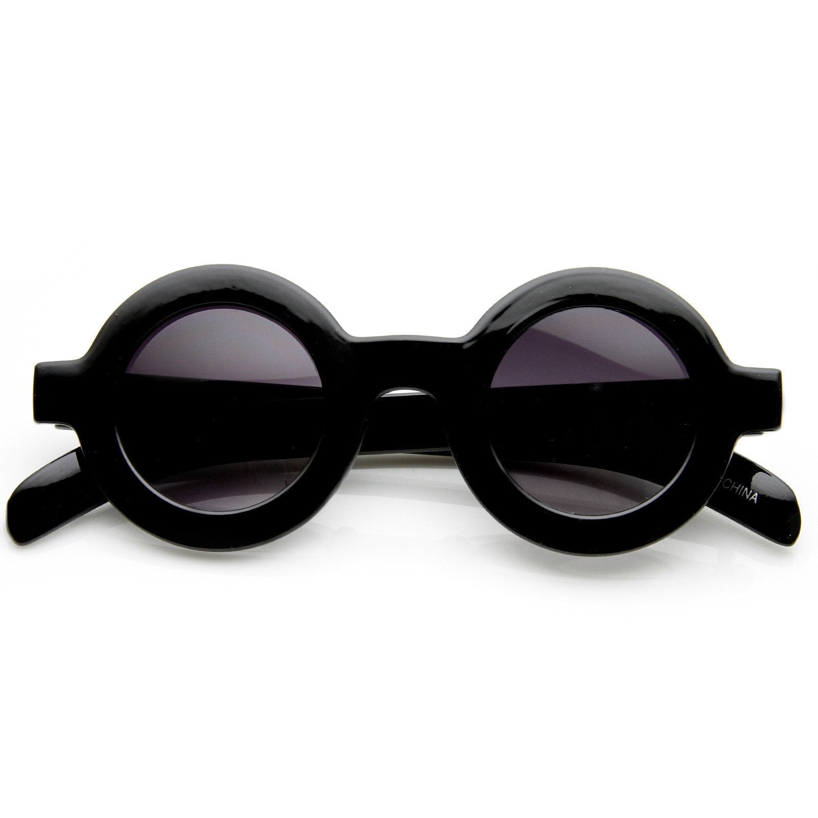 Retro circular sunglasses that features a thick bold frame and prominent horned rim temples. The bold frame and uber retro round design make these a very stylish addition to this seasons collection. Made with an acetate based frame, metal hinges and UV protected polycarbonate lens.
