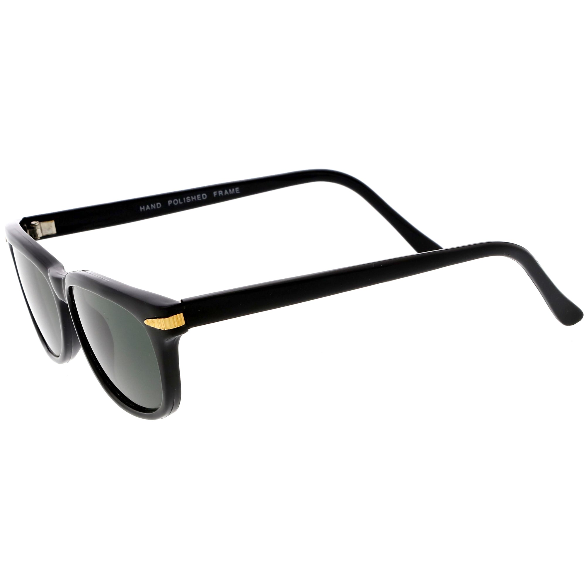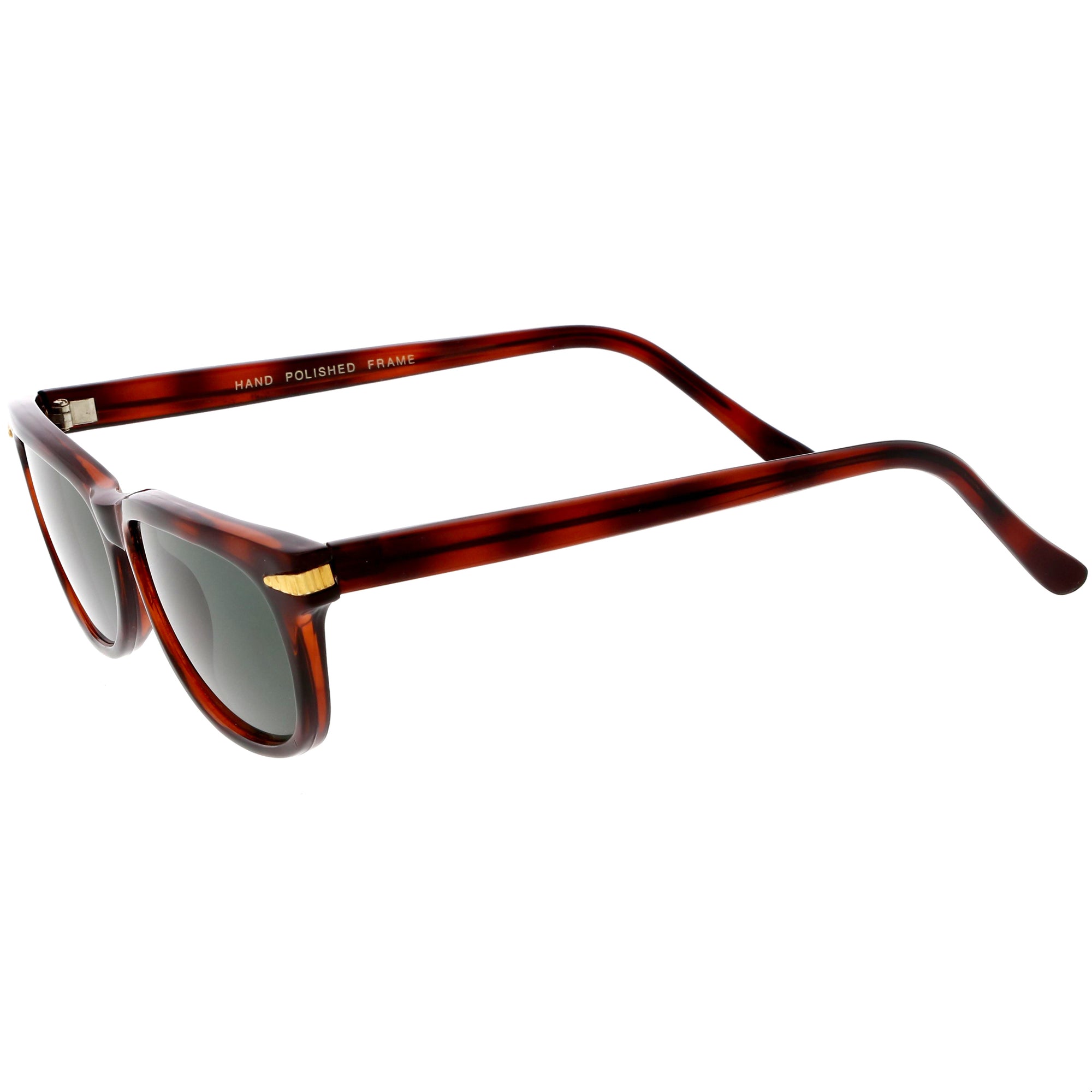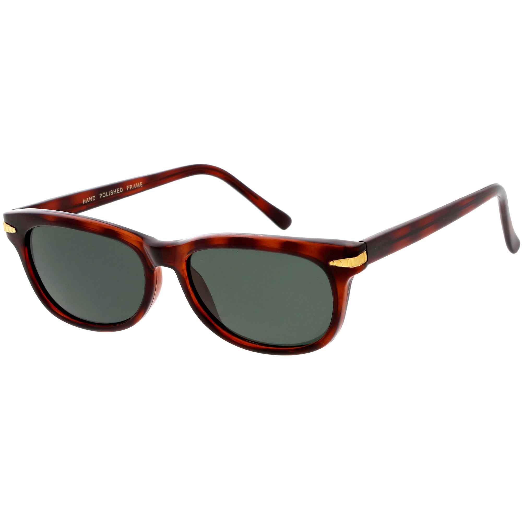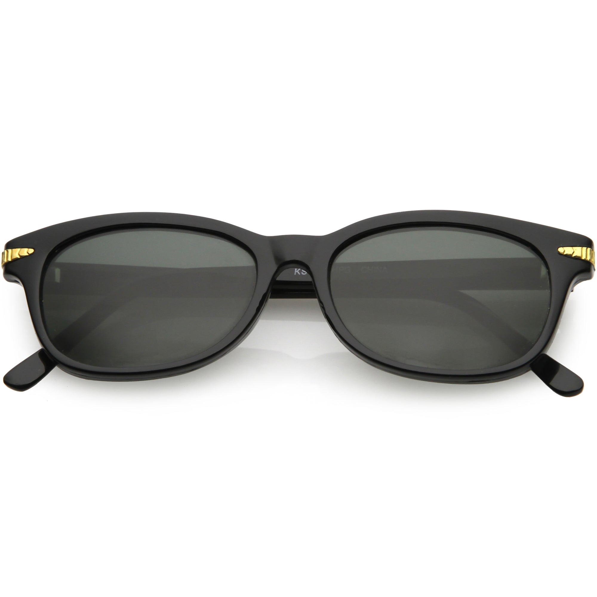 A true vintage style that is designed with an horn rimmed frame with metal accents at the temples. Featuring oval shaped glass lenses that are impact resistant and slim arms, these vintage horn rimmed sunglasses are must-have accessory. Versatile enough for everyday, these vintage sunglasses can be paired with any look. Made with a plastic based frame, reinforced metal hinges, and 100% UV protected lenses.