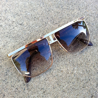 True Vintage Retro Flat Top Medal Aviator Sunglasses Gold