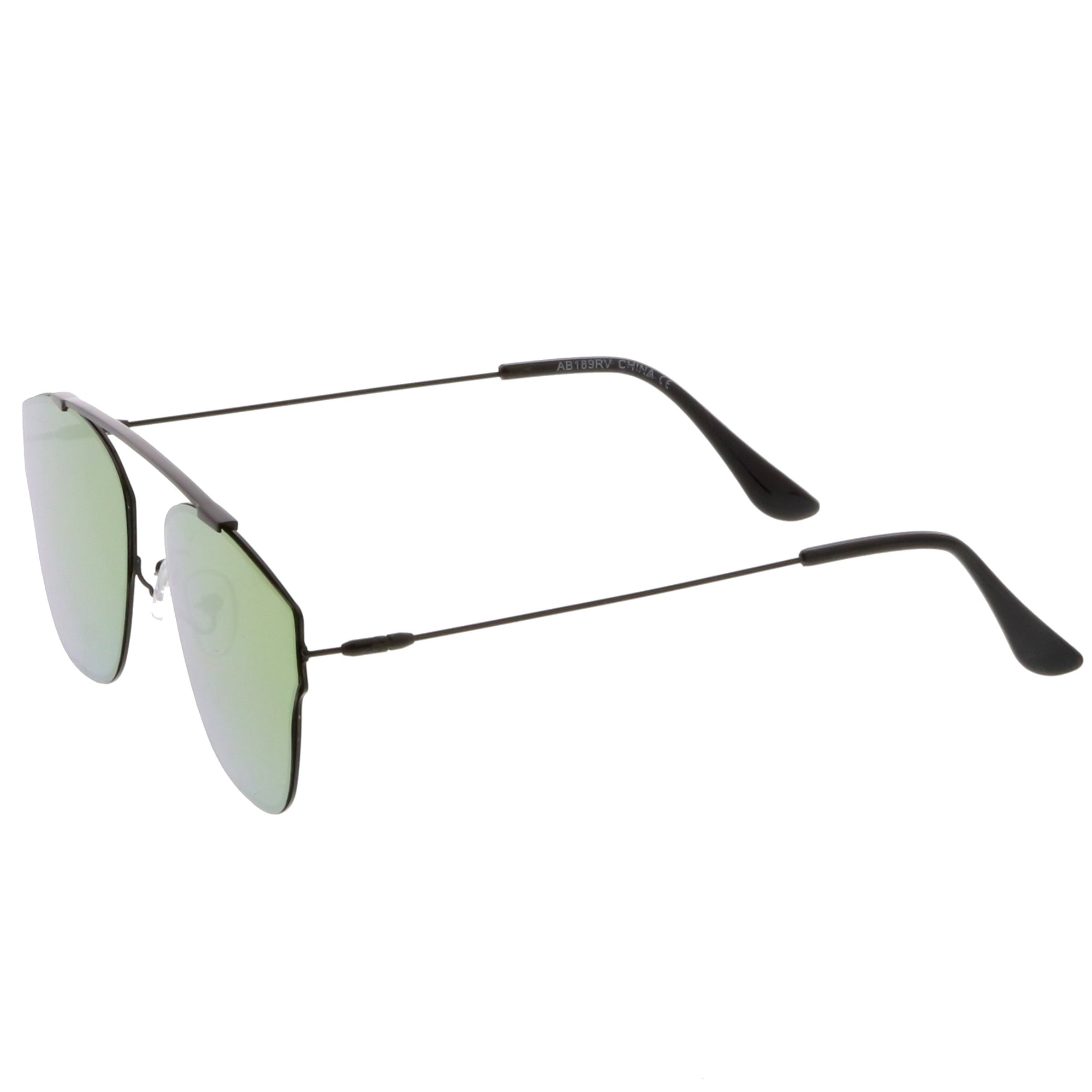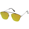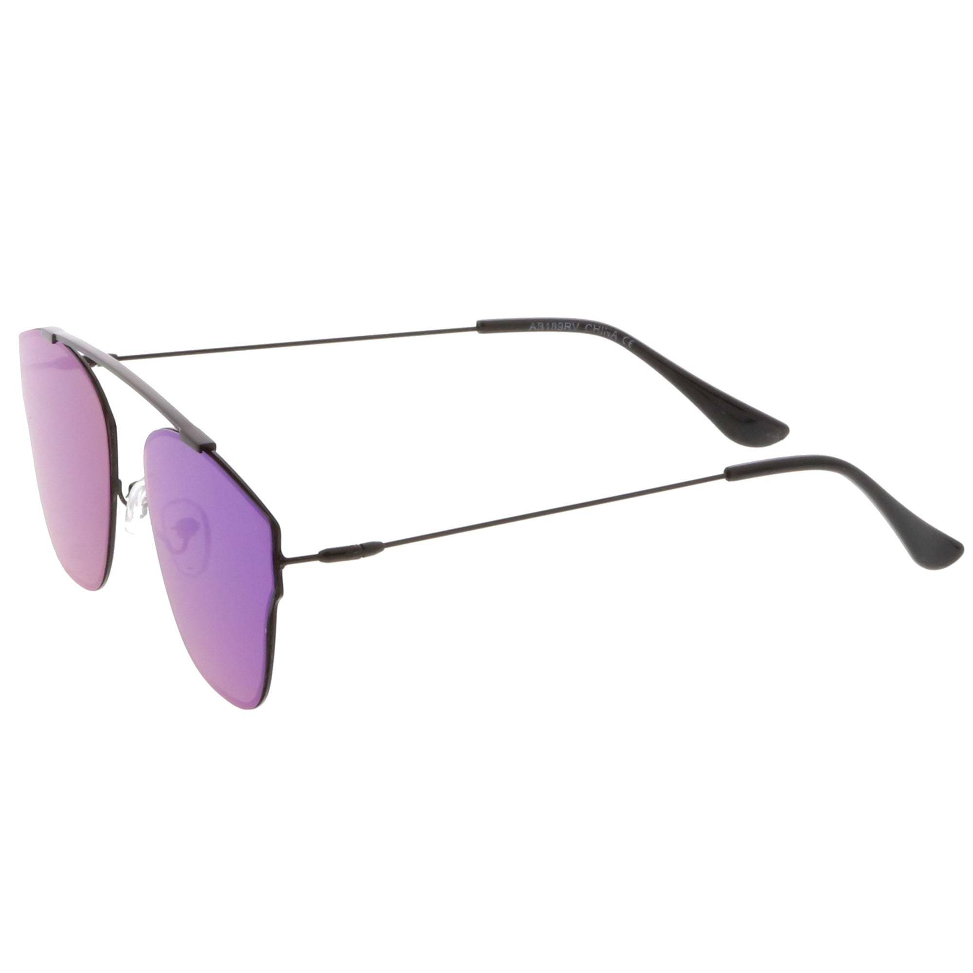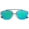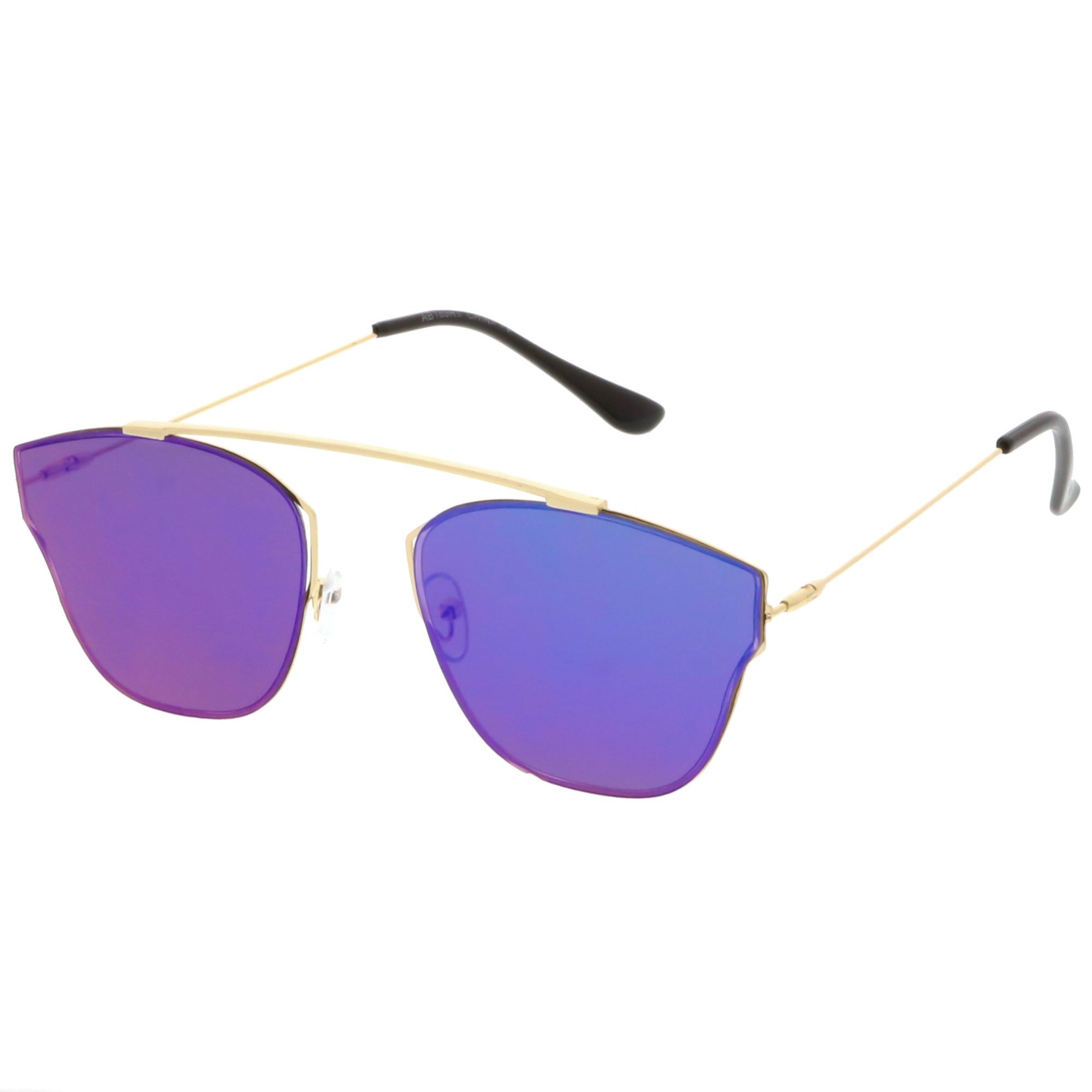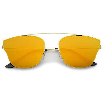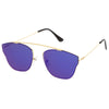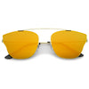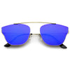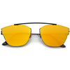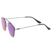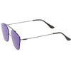 Make a bold statement with these modern pantos sunglasses featuring a lightweight ultra slim metal frame and colored mirror flat lenses for an eye-catching effect. Accented with thin arms and a curved metal crossbar, these pantos sunglasses are a must-have for festival season and every sunny day in between. Made with a metal based frame, adjustable English style nose pieces, metal hinges, and 100% UV protected polycarbonate lenses.