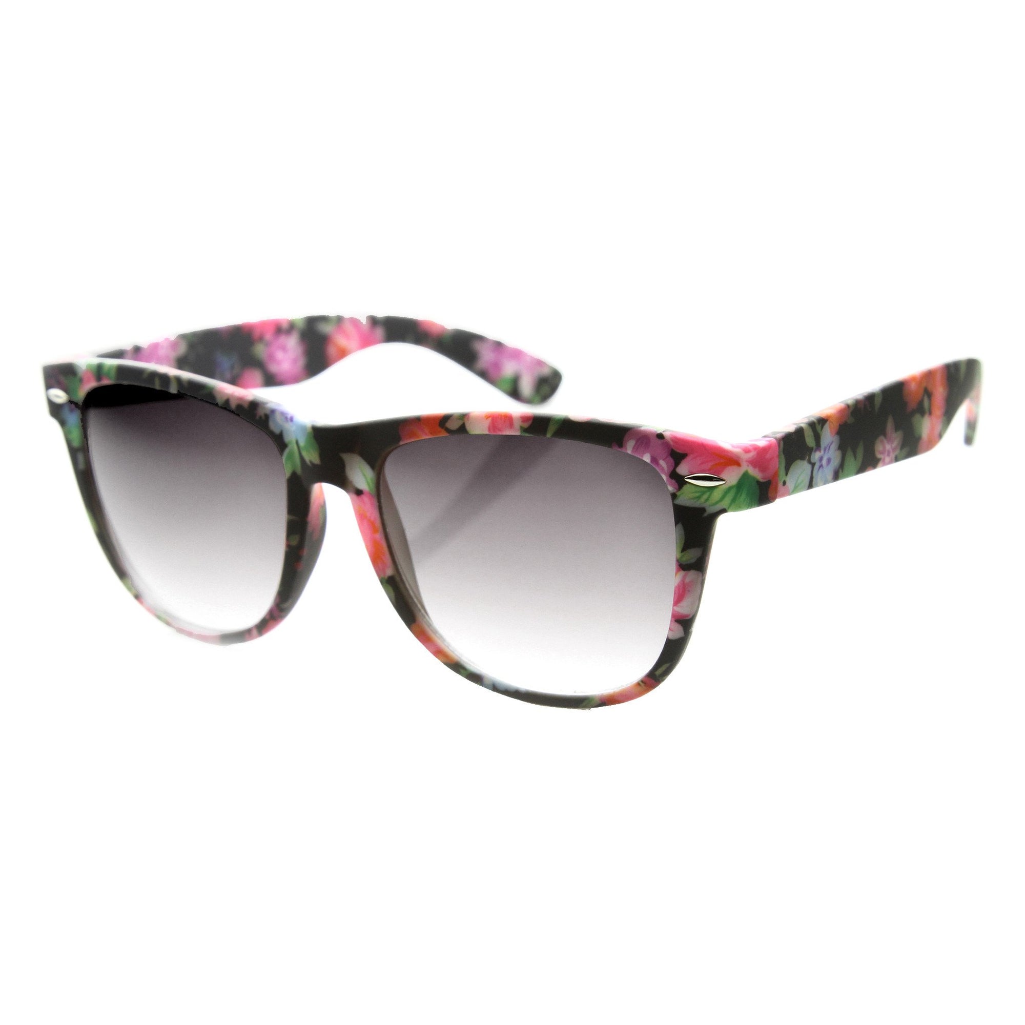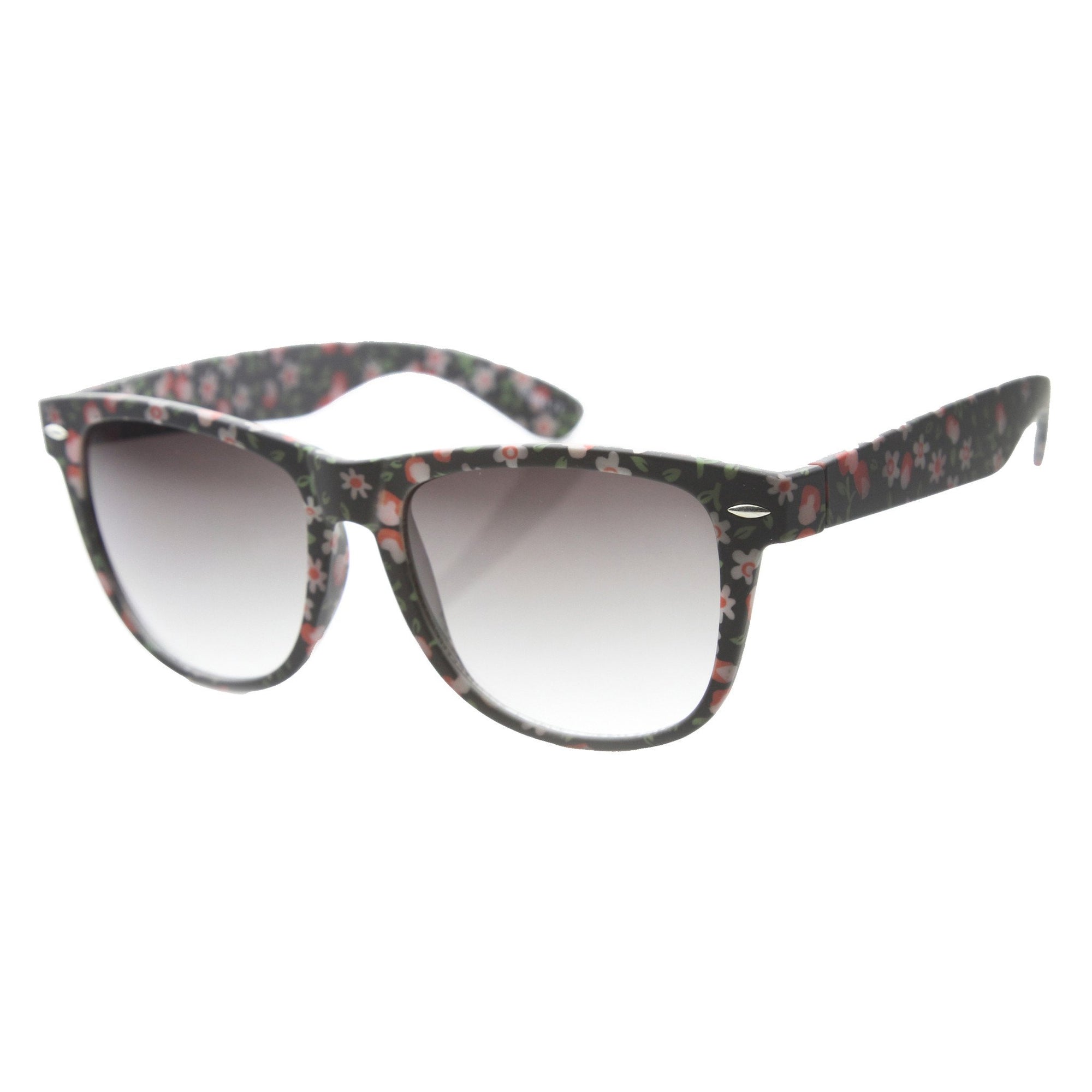 • Ultra feminine and sexy cat-eye design floral prints sunglasses that brings out your admirable outfits. These lovely horned rim sunglasses feature cute floral print and soft rubbery texture frame that is uniquely smooth to the touch. Features metal hinges and gradient polycarbonate UV protected lenses.