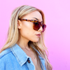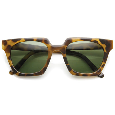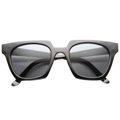 Retro classic sunglasses that feature a narrow nose bridge that accentuates a squared angled frame. With a horned rim frame and smooth angled lines and, these square glasses represent classic retro style. Made with a plastic based frame, metal hinges and UV400 protected lenses.