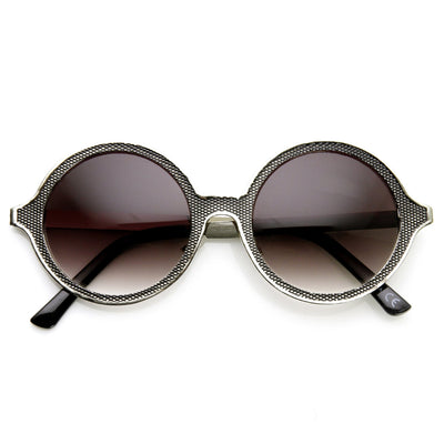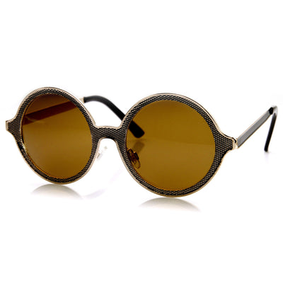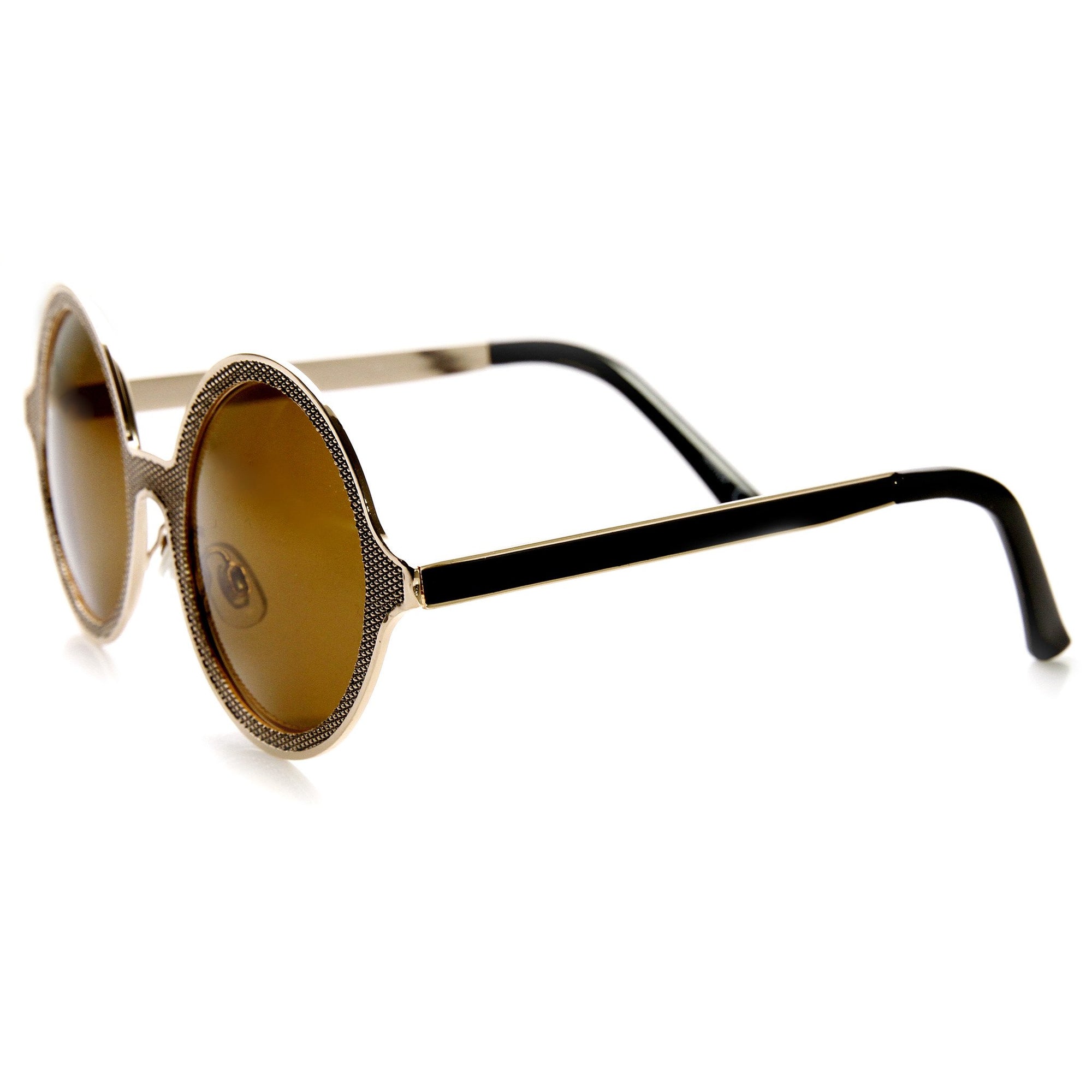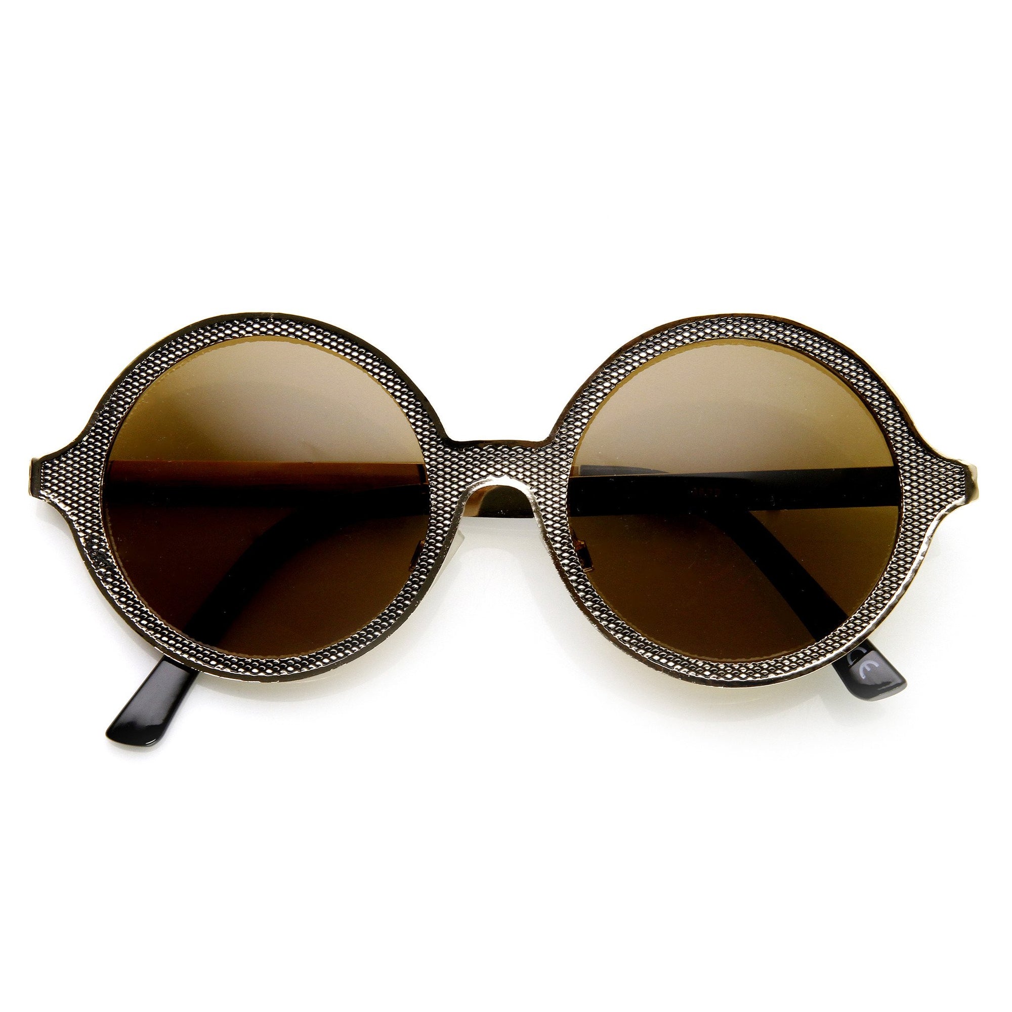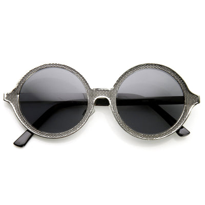 Retro meets modern fashion with these full metal round silhouette that features an ornate engraved textured pattern that covers the entire front of the frame. We just love the stylish retro look and high end details that these sunnies offer to this seasons collection. Made with a metal based frame, metal hinges and UV400 protected lenses.