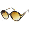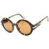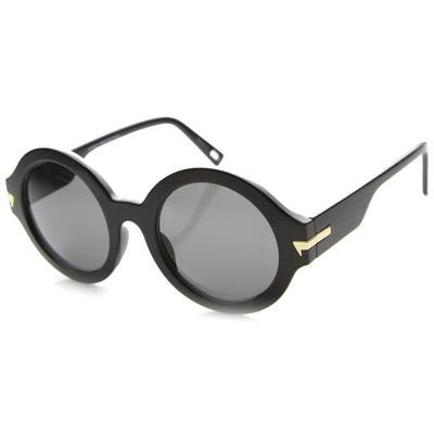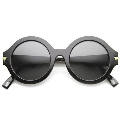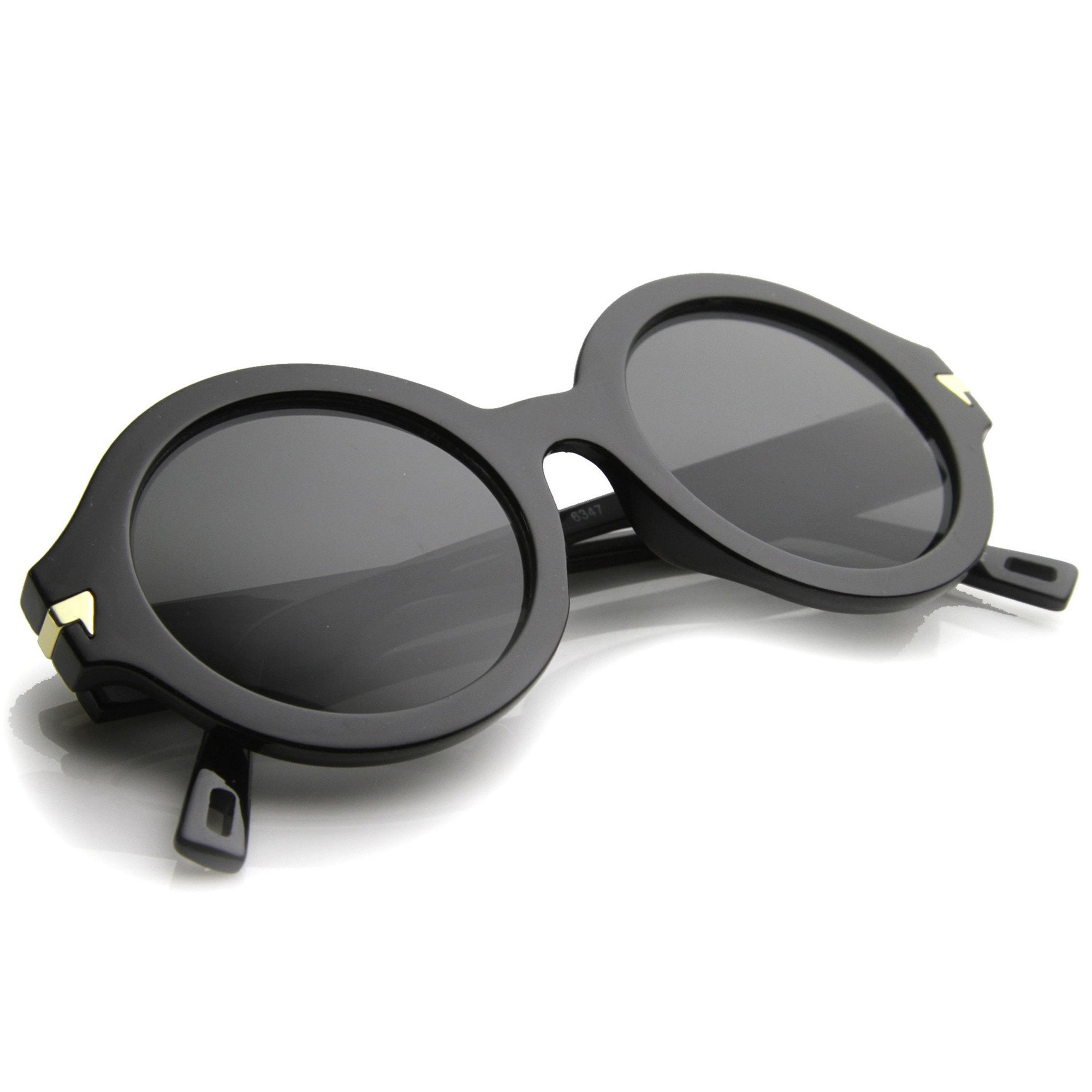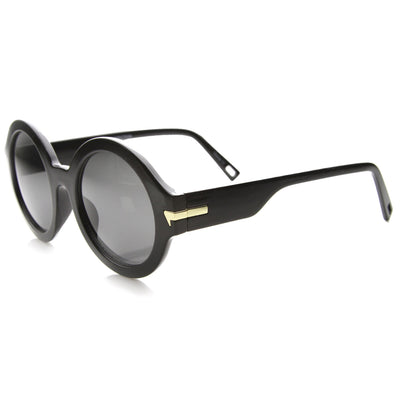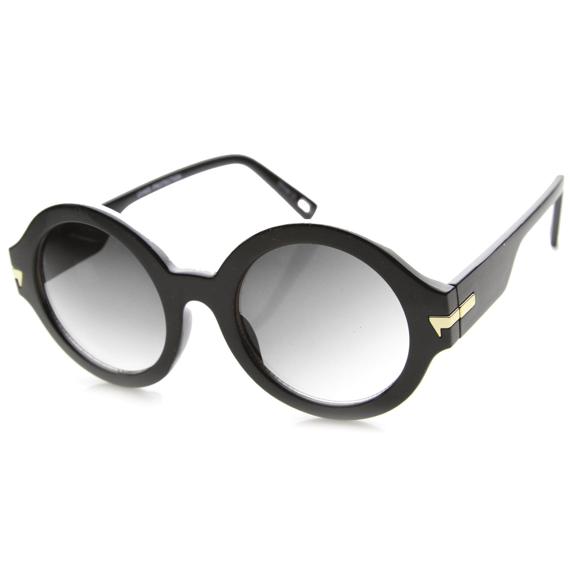 A classy sophisticated round circle sunglasses, fusing traditional elements and modern materials makes them a winner for most face shapes and outfits. Complete with a half brow design, they're a vintage and chic choice. Produced with a plastic based frame, metal hinges and UV protected polycarbonate lens.