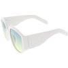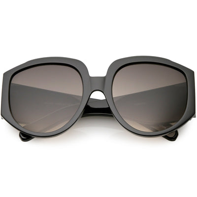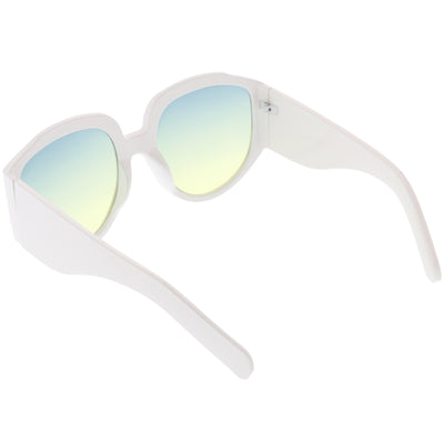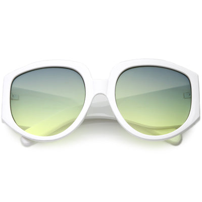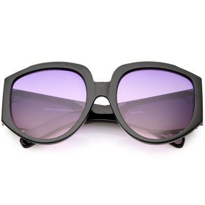 Totally glamorous oversize sunglasses. Featuring stylishly wide arms that add a bold touch and color tinted gradient round lenses for an eye-catching effect, these stunning sunglasses are a total must-have. Pair them with your favorite poolside outfits for a warm-weather look. Made with a plastic based frame, reinforced metal hinges, and 100% UV protected lenses.