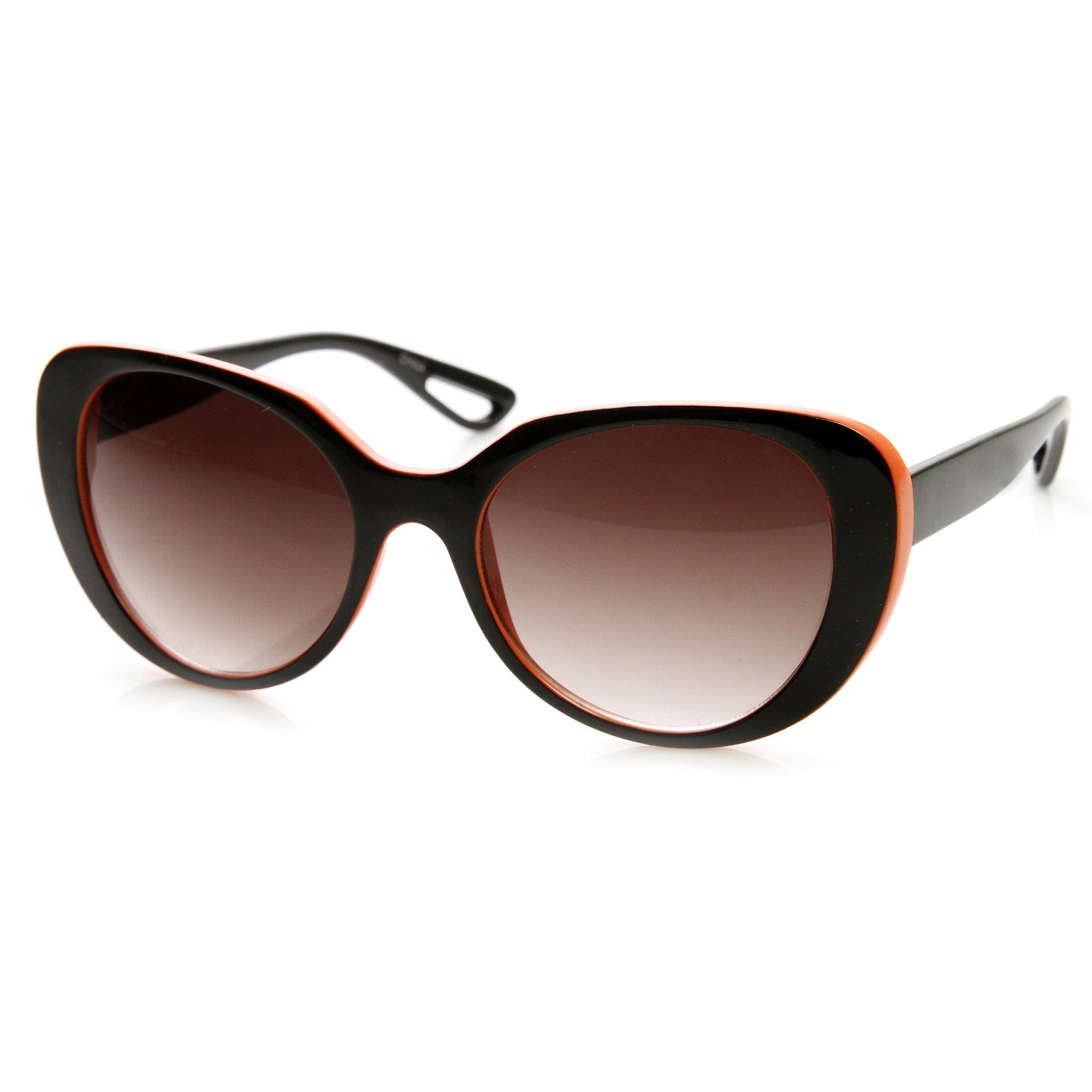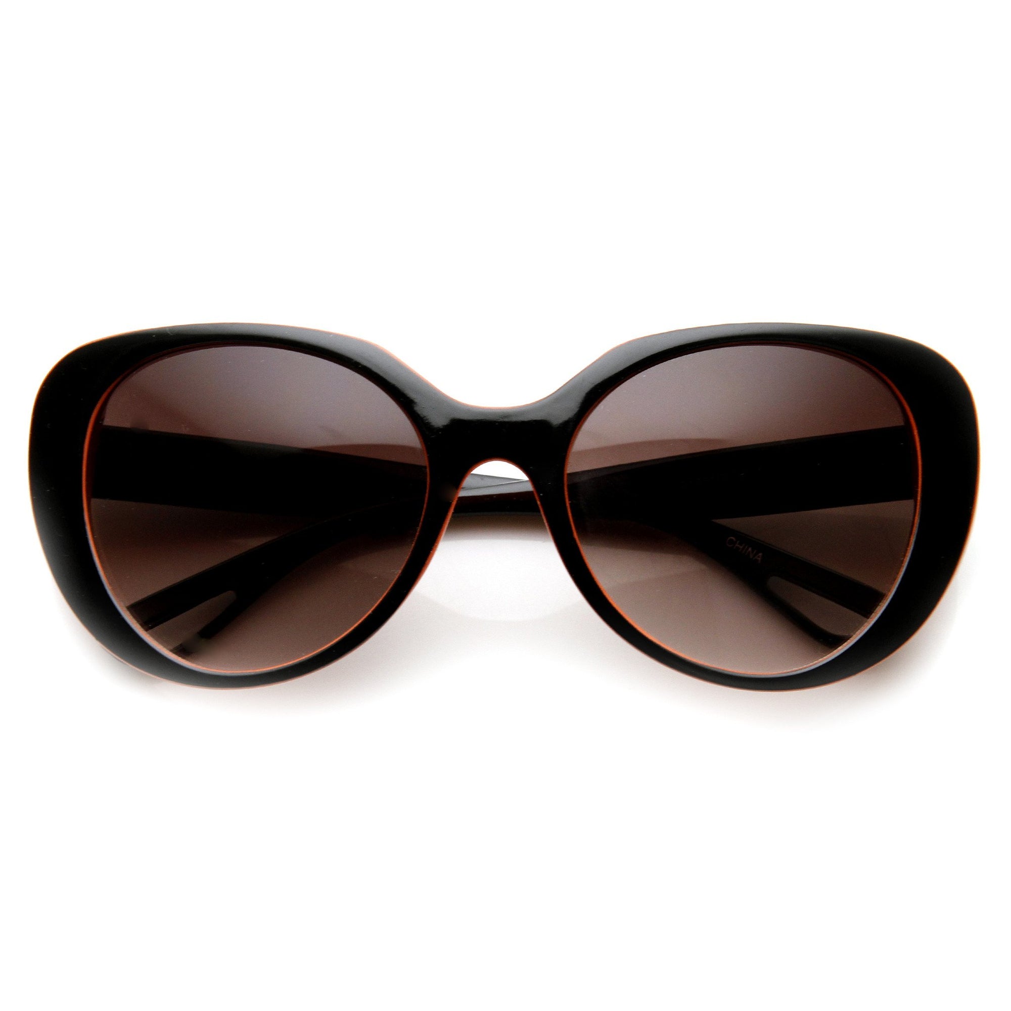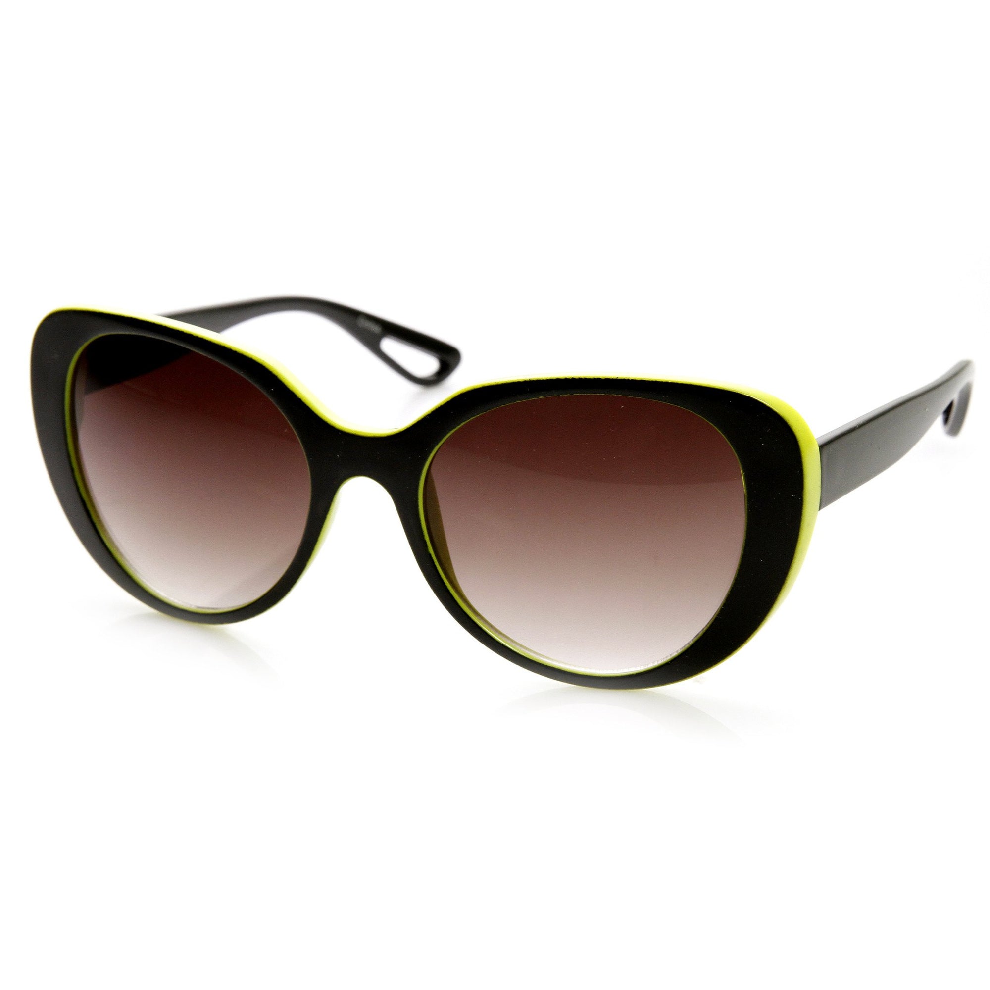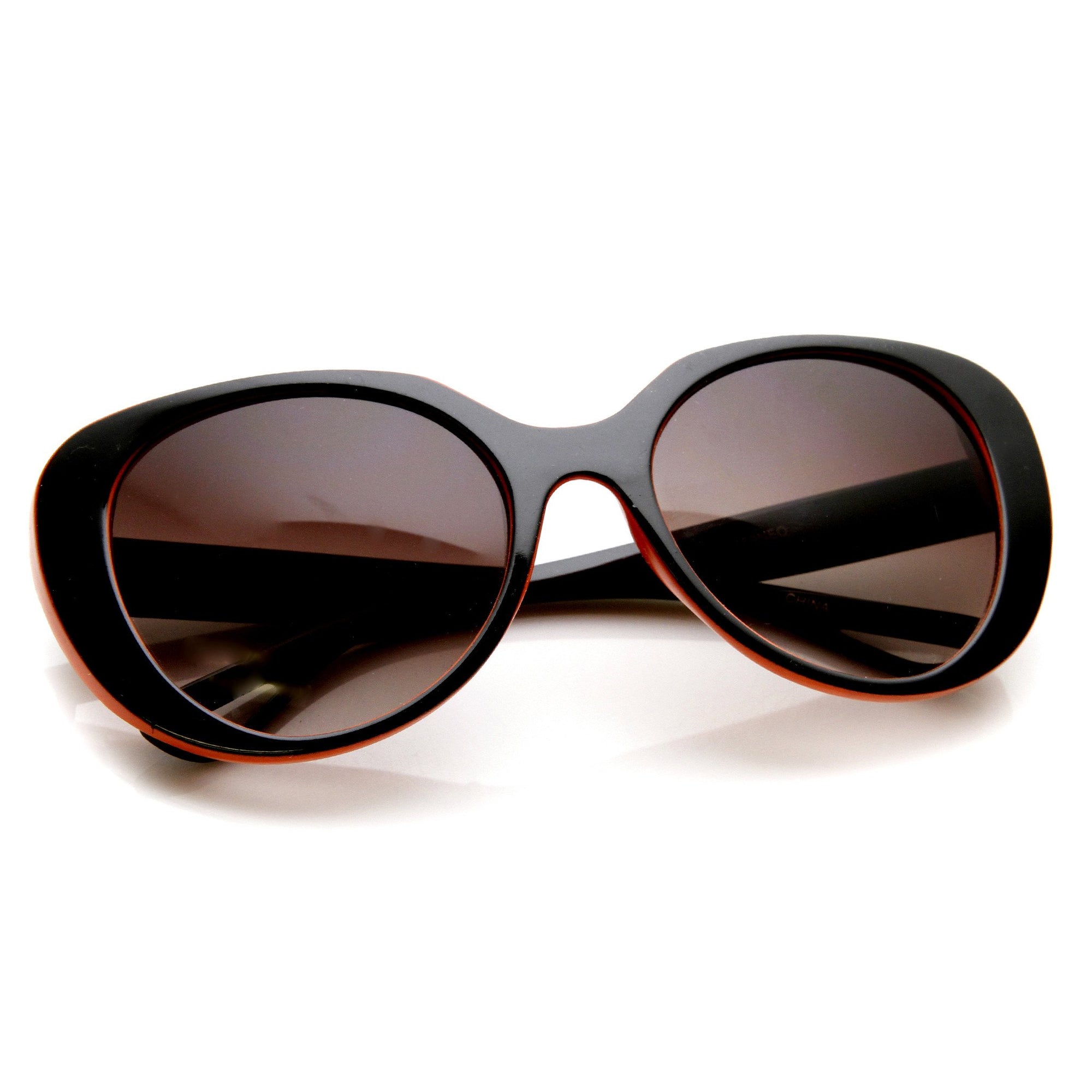 Womens oversized oval silhouette sunglasses that features a neon two-tone frame. A fun and stylish oversized frame that is perfect for the warm and sunny season! Made with plastic based frame, metal hinges and UV400 protected lenses.