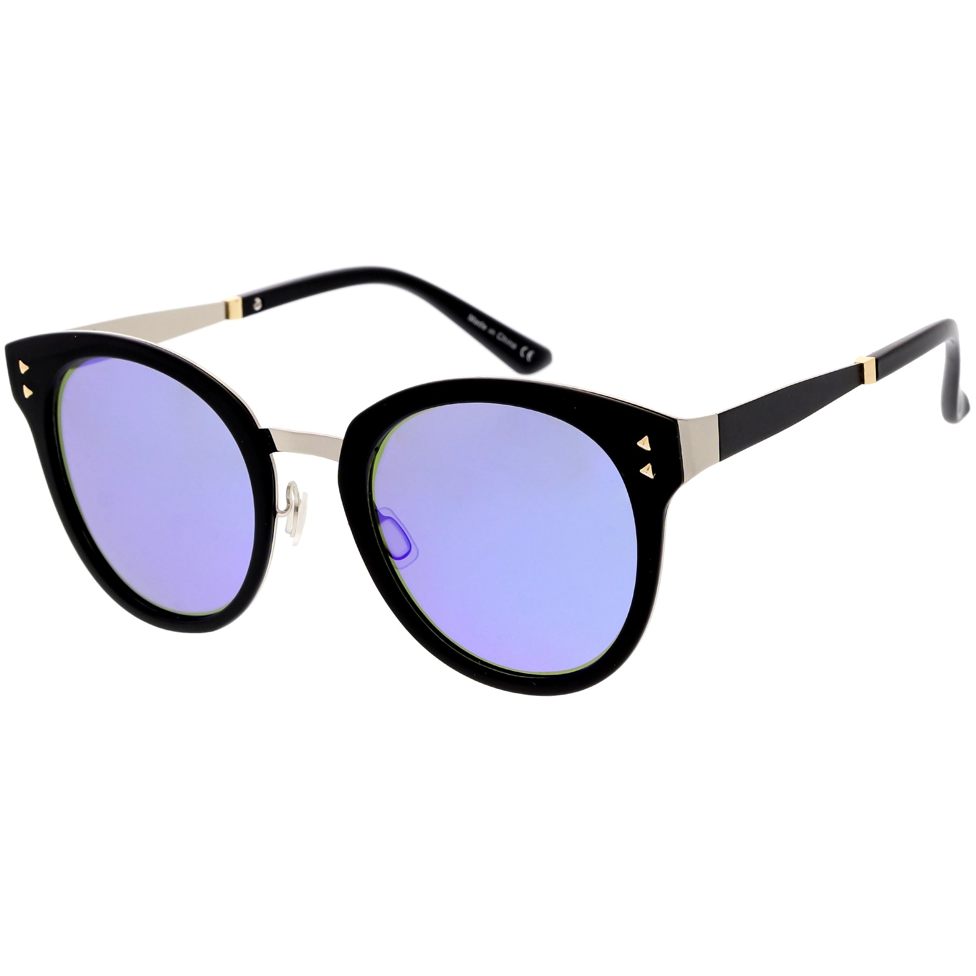 The perfect combination of style and function, these round sunglasses are designed with a subtle horn rimmed frame and metal arms and nose bridge for a luxurious feel. Equipped with polarized lenses that reduce glare and brightness, these round sunglasses are finished with soft adjustable nose pieces give you added comfort. Designed in a variety of colors, you'll have many to choose from to pair with any outfit. Made with a plastic and metal based frame, metal hinges, and 100% UV protective lenses.