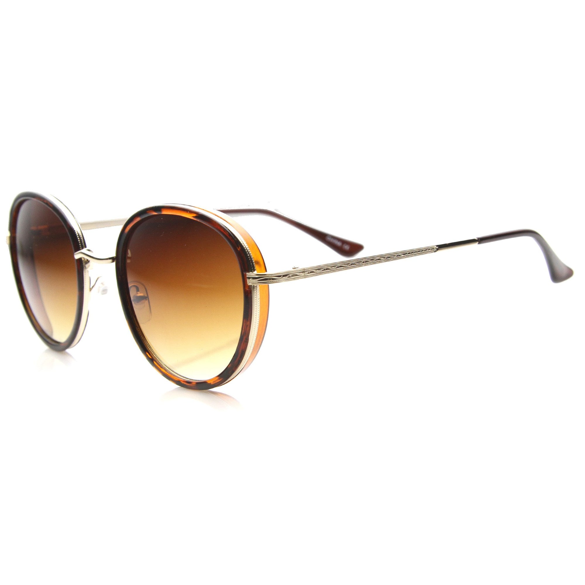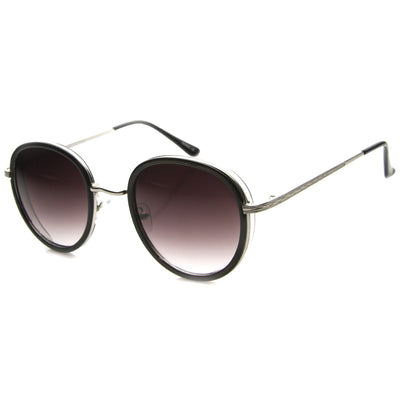 An arrow-shaped bridge and rounded frames further the vintage vibe of gradient-lens sunglasses furnished with adjustable nose pads for no-slip wear. Made with a plastic based frame, metal hinges, English style nose pieces and UV400 protected lenses.
