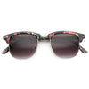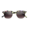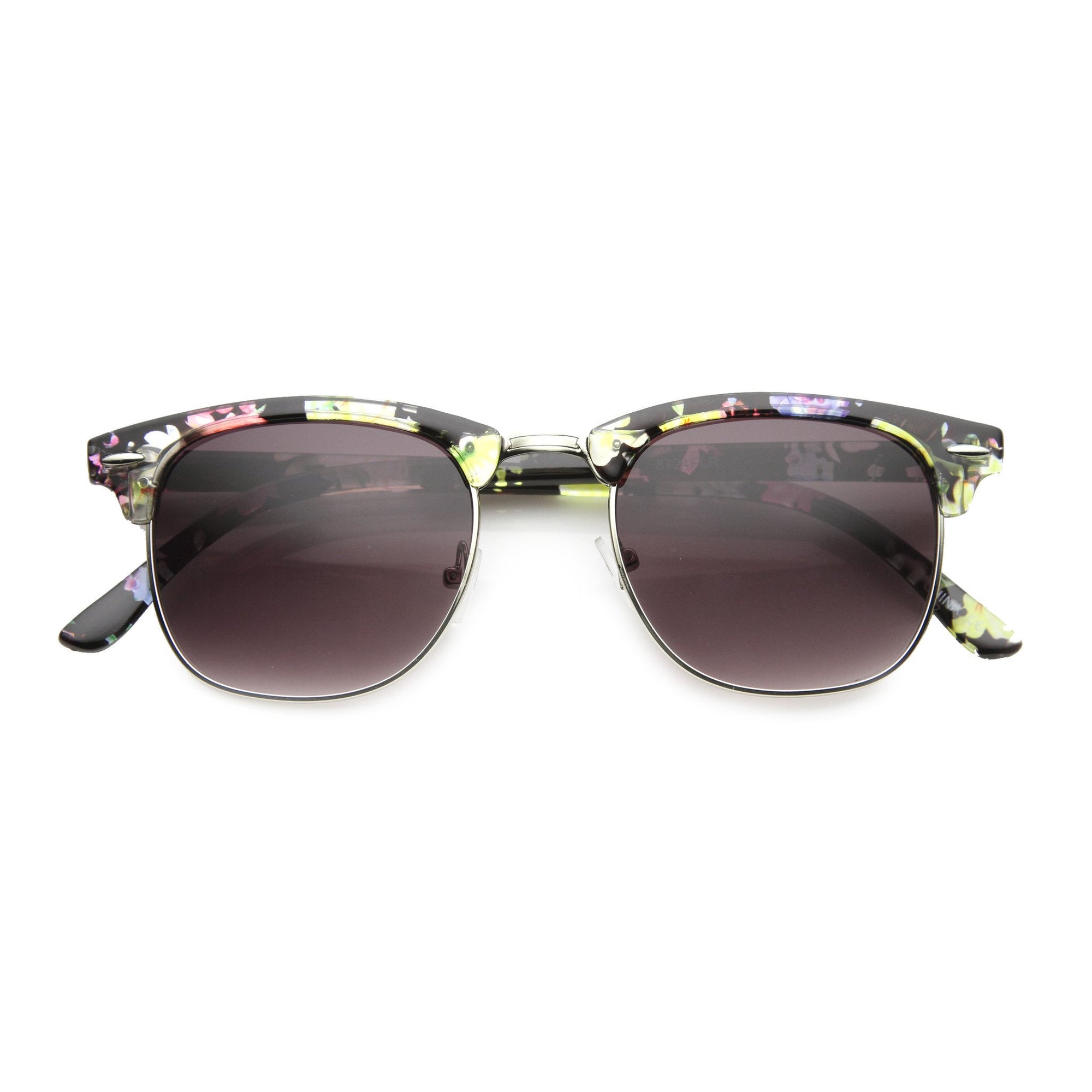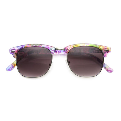 • Classic half frame horned rim sunglasses that features fun floral pattern frame, brow and arms, metal wire lens lining and metal nose bridge. The classic look with adorable floral prints make these fun and easy-to-wear style this sunny season! Made metal hinges, English style nose pieces, and polycarbonate UV protected lenses.