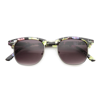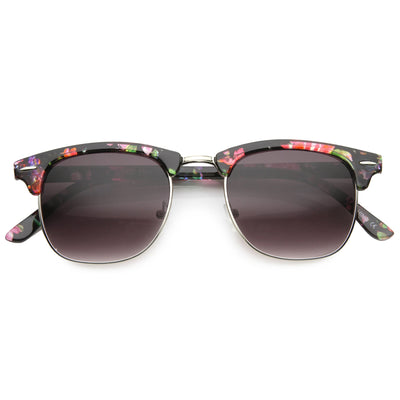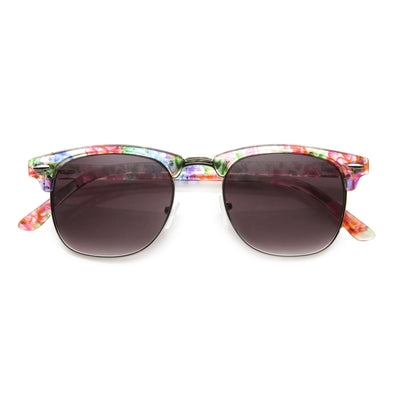Women's Retro Half Frame Floral Pattern Sunglasses 9775