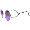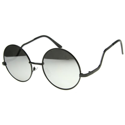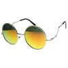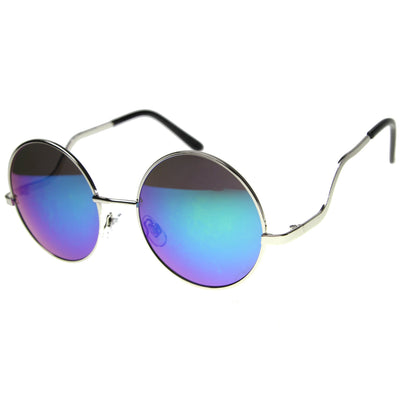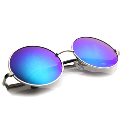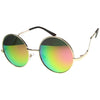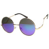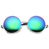 Retro remake of a timeless 1950's frame. These wonderfully retro inspired low temple round sunglasses with colorful flash mirror lenses! Designed with low sitting temple curve provides an almost floating frame effect. Produced with a full metal based frame, metal hinges and UV400 protected lenses.