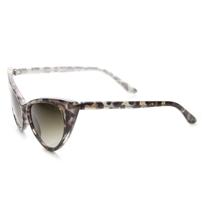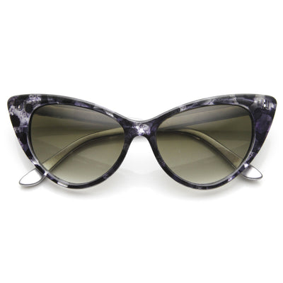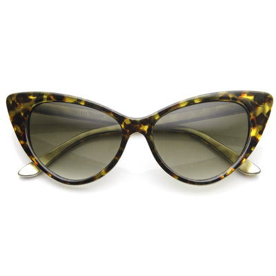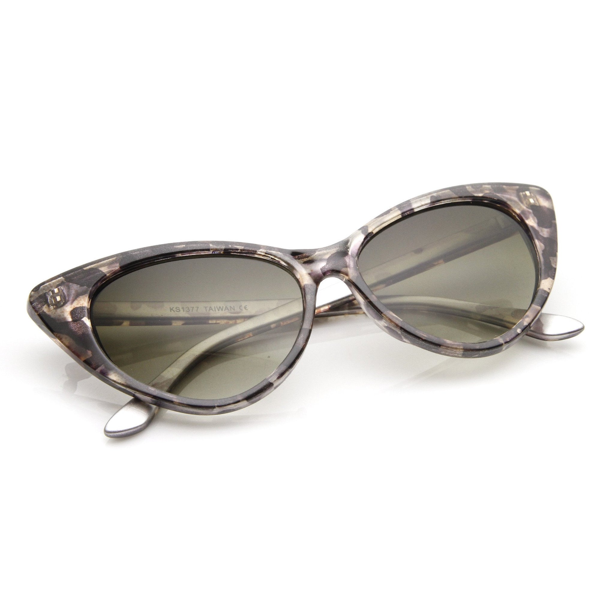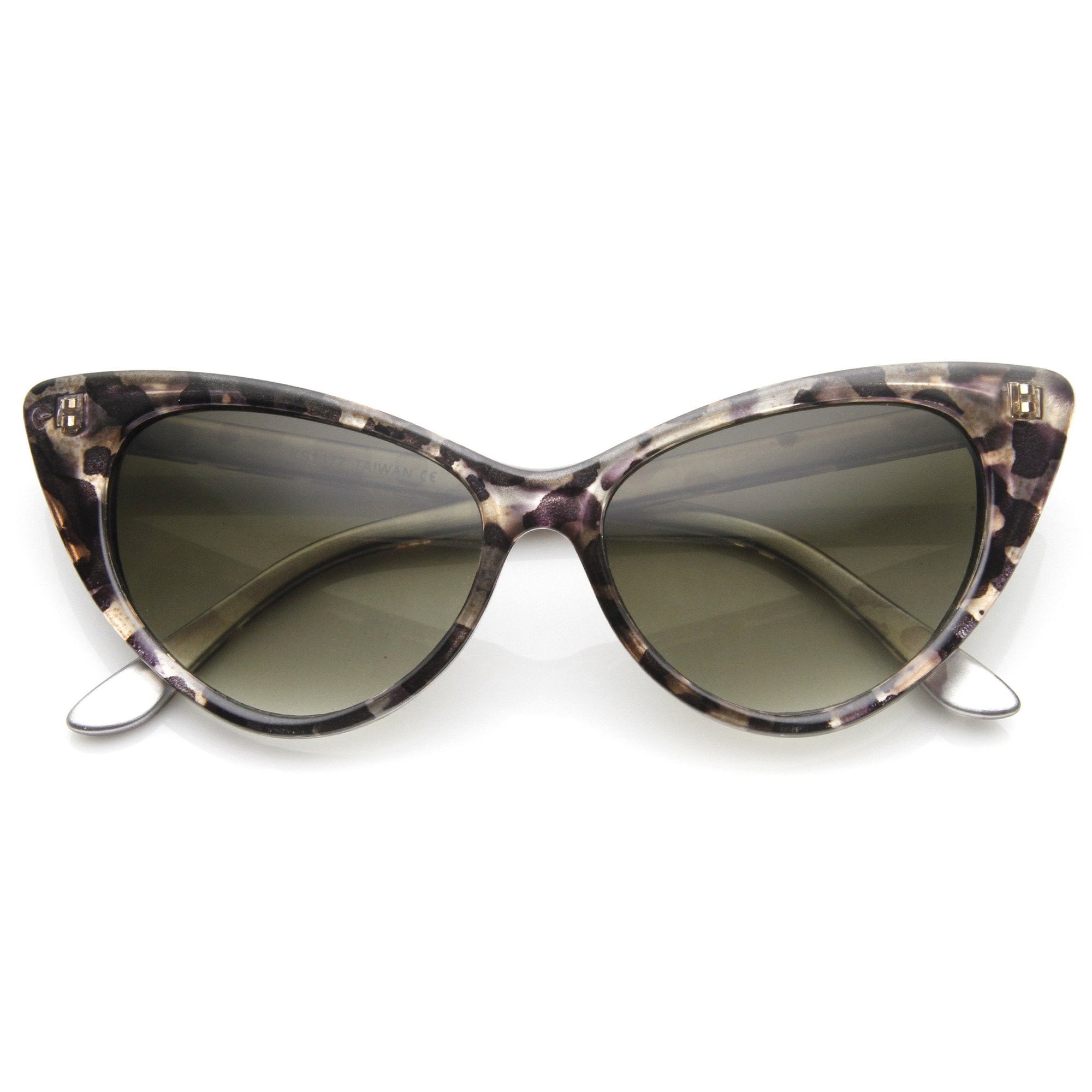A distinct mod version of 50s-inspired cat eye sunglasses with high pointed corners and beautiful demi colored frame. You'll find they can work with many outfits, from the very modern to the utterly vintage. Made with an acetate based frame, metal hinges and gradient polycarbonate UV protected lenses.