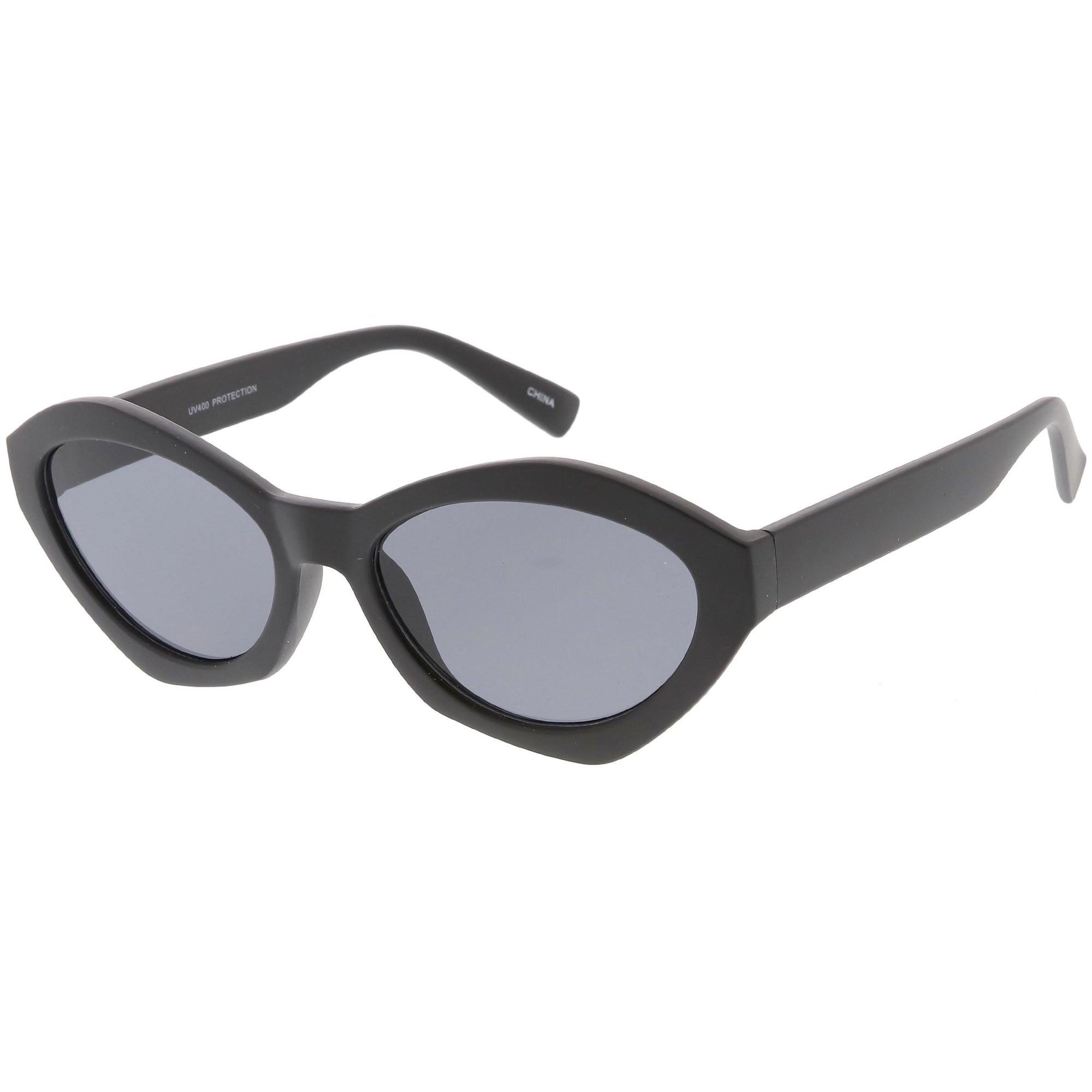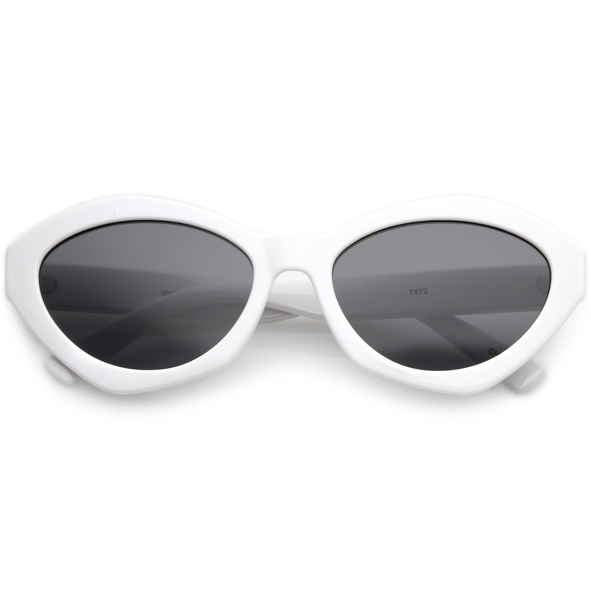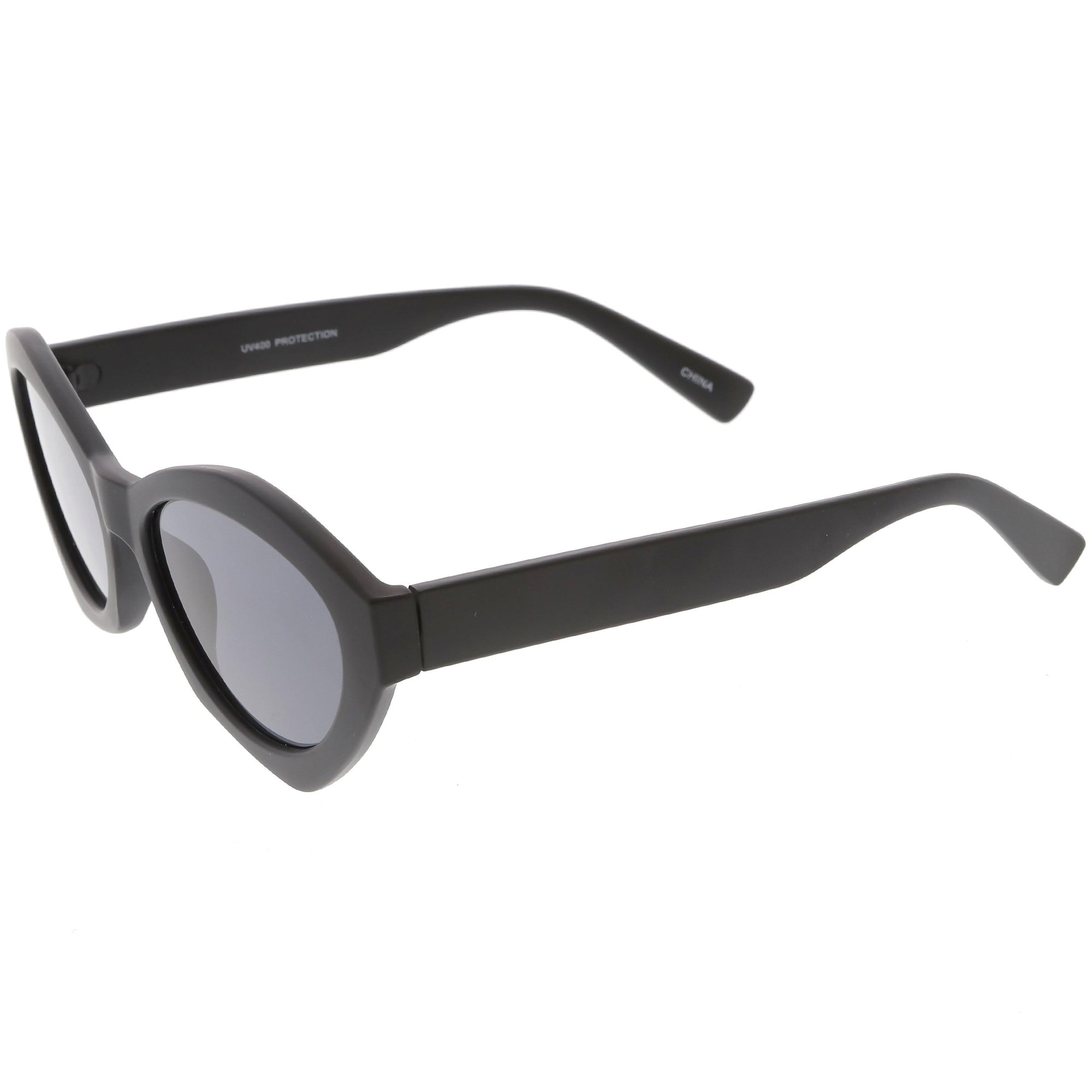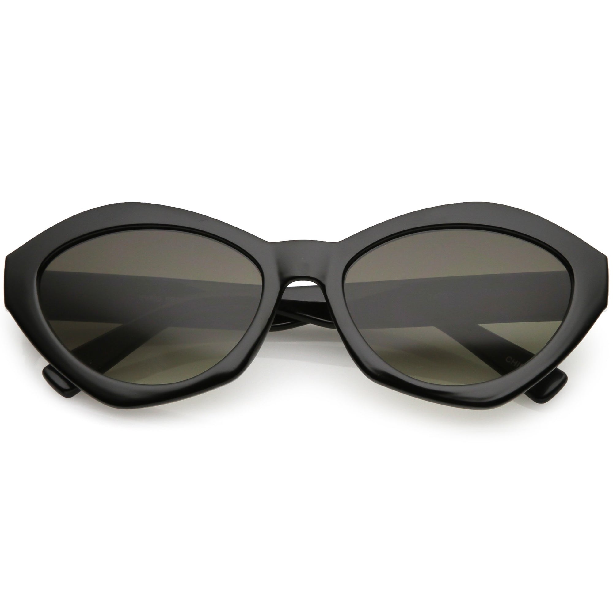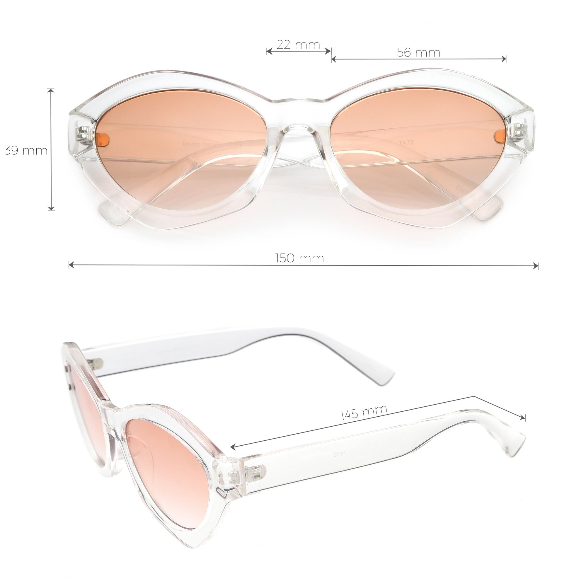 These bold cat eye sunglasses feature a chunky frame and oval flat lenses in neutral colored hues. Accented with high sitting arms for a unique accessory. The edgy frame design provides the perfect mix of modern and retro for a must-have style of this season. Finished with a plastic based frame, reinforced metal hinges, and 100% UV protected lenses.